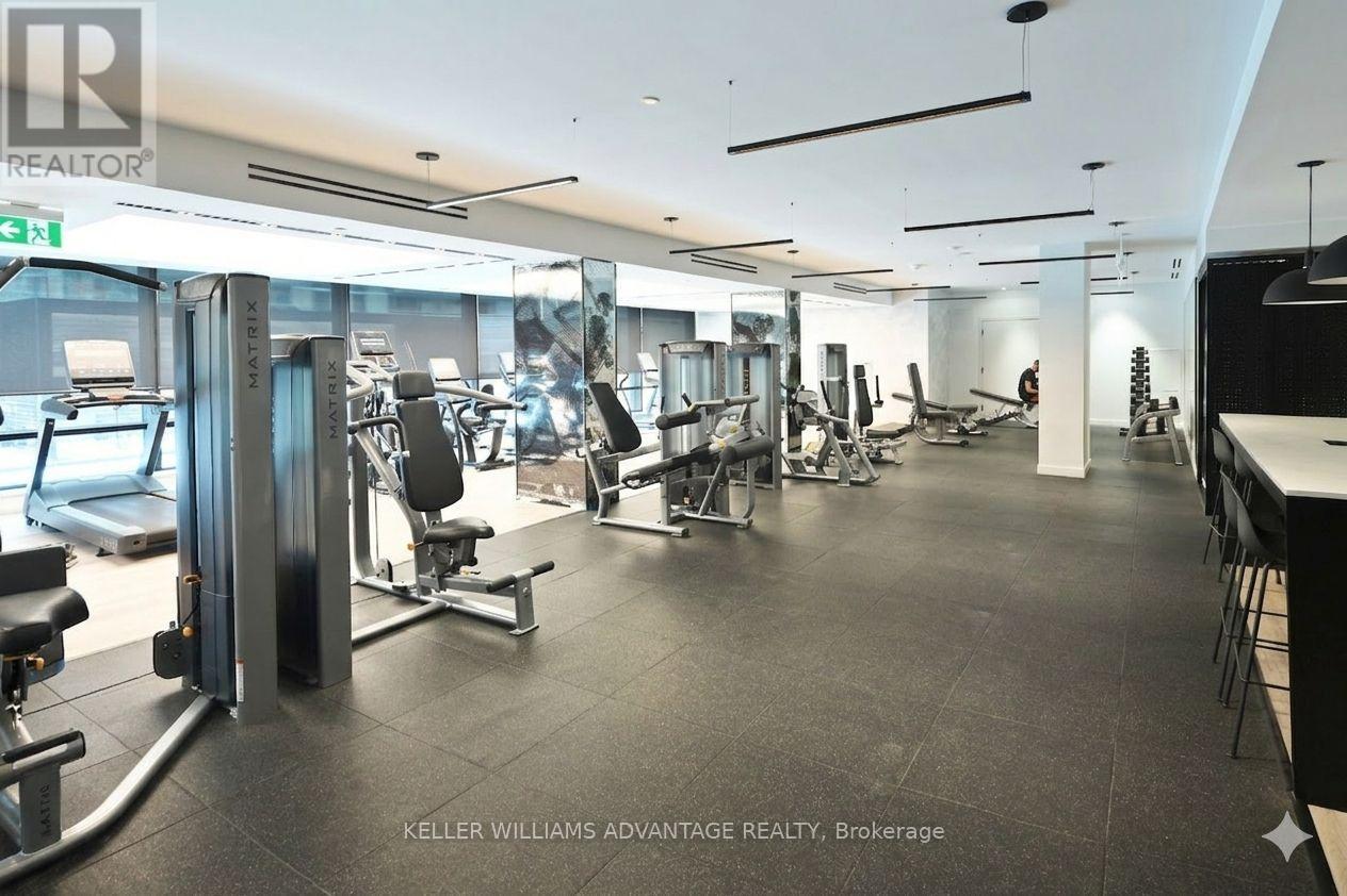 Experience life at Line 5! This two-bedroom, two-bathroom corner suite offers a great layout. The large north facing balcony spans the width of the condo & provides incredible views of midtown - it will take your breath away! You'll be impressed with the high end fixtures and finishes along with the sophisticated color pallette. Sleek euro-style kitchen with built in appliances & soft close cabinets. 2 Luxury bathrooms with custom cabinetry & built in storage. Huge windows that flood the unit with natural light. Steps from convenient transit, restaurants, offices, supermarket, parks, & the highly coveted walkable neighborhood. Residents enjoy top tier amenities including a party room, dining room, gym, yoga studio, pool, sauna, dog wash and 24/7 concierge service. This unit comes with one owned parking spot and one locker. (id:43681)
