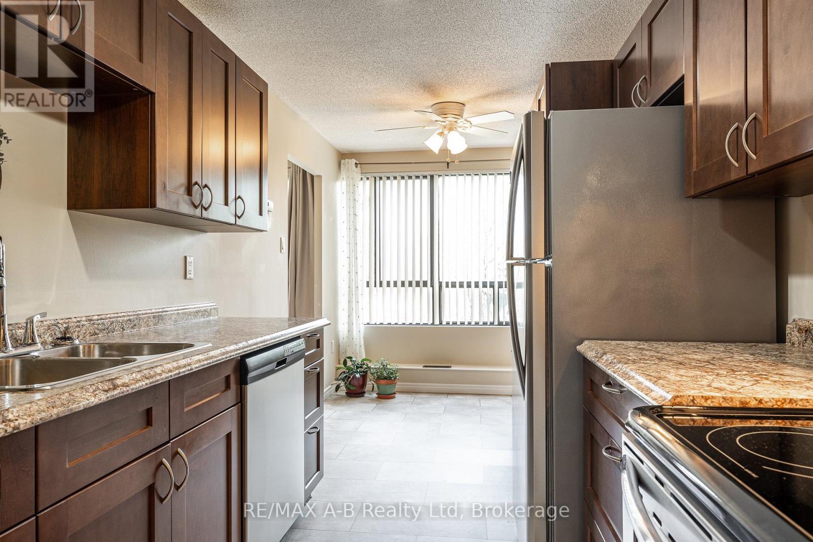 $440 每月This bright corner suite offers comfortable, low-maintenance living in a well-maintained building at Unit 301 at 1600 Adelaide Street North in London. This unit features two good-sized bedrooms, a 4-piece bathroom, in-suite laundry, and a functional layout ideal for a variety of buyers. Residents enjoy access to convenient building amenities including a fitness room, elevator service, common space lounge area and ample visitor parking. The building and grounds have been well-maintained, adding to the overall appeal which is a great opportunity for buyers seeking move-in ready convenience in a convenient location. Ideally located in North London, you are close to shopping, schools, restaurants, and everyday conveniences. Walking distance to the grocery store at Fanshawe Park Road and Adelaide Street, with easy access to bus routes serving Western University, Fanshawe College, and CF Masonville Place. Condo fees are a reasonable $440/month and include water and parking. Click on the virtual tour link, view the floor plans, and photos and then call your REALTOR to schedule your private viewing of this great property! (id:43681)