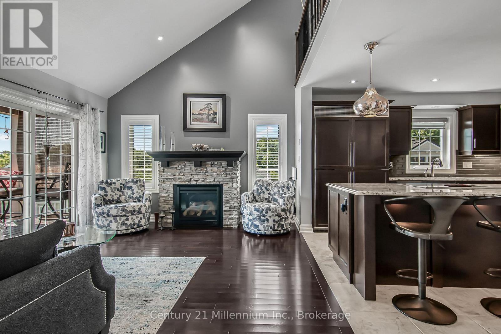Welcome To 301 Telford Trail, Located In The Prestigious Cobble Beach Golf Resort. This Beautifully Updated End Unit Bungaloft Townhouse Is Perfectly Positioned To Capture Breathtaking Views Of Georgian Bay & The Surrounding Ravine. Enjoy Outdoor Living On The Expansive Composite Terrace Featuring A Sleek Glass Railing & Convenient Stair Access To The Yard. Inside, Vaulted Ceilings In Both The Foyer & Living Room Create An Immediate Sense Of Light & Space. A Separate Dining Room W/Elegant French Doors Provides The Perfect Setting For Entertaining. The Gourmet Kitchen Boasts A Large Centre Island, Granite Countertops, High-End Stainless Steel Appliance & Abundant Storage - Ideal For Any Chef. Relax In The Light-Filled Living Room Complete W/A Cozy Gas Fireplace & Walk-Out To The Terrace. The Spacious Loft Area Features A Bright Family Room Overlooking The Foyer & Living Room, Perfect For A Work-From-Home Office Or Relaxing Retreat. A 2nd Bedroom & 4-Piece Bath Provide An Ideal Space For Guests. The Finished Lower Level Is Designed For Entertaining & Extended Family, Featuring A 3rd Bedroom, 3 Piece Bath, Games Room, Family Room With Electric Fireplace, Wet Bar & Wine Fridge & A Generous Storage Room W/Epoxy Floors. A Walk-Out Leads Directly To The Backyard Adding Convenience & Outdoor Enjoyment. Additional Highlights Include A 1.5 Car Garage, Fully Drywalled, Epoxy Floors, Workbench & Lots Of Storage Plus 2 Car Parking On The Private Driveway. All Four Bathrooms Have Been Stylishly Renovated, Offering Comfort & Luxury Throughout. With Two Family Rooms-One Upstairs & One Down & The Added Bonus Of Being An End Unit, This Home Is Filled W/Light, Space & Thoughtful Design. Cobble Beach Amenities Include: Golf Course*Golf Simulator*Driving Range*Private Beach Club W/Firepits & Watercraft Storage*Outdoor Pool & Hot Tub*Day Dock*US Open-Style Tennis Courts*Bocce Ball*Beach Volleyball*Fitness Facility*Trails*Cross Country Skiing*Snowshoeing*Restaurant*Patio*Spa. (id:43681)