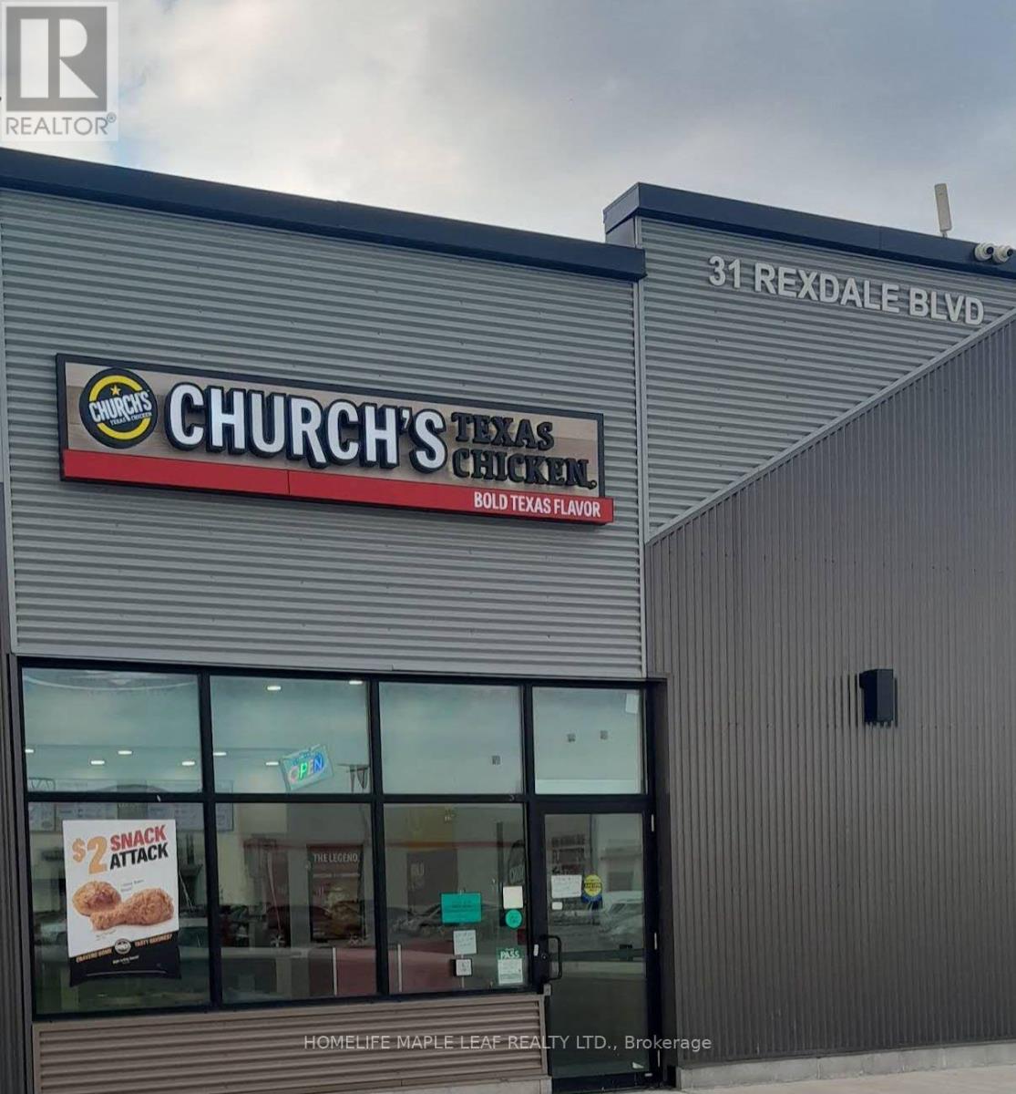 Take advantage of this unique opportunity to acquire a highly successful and well-established church's Texas chicken franchise located at 31 Rexdale Boulevard in Etobicoke. Positioned on a prominent corner with excellent visibility and steady traffic flow, this prime location is surrounded by buys commercial activity, residential neighborhoods, and major transit routes. This franchise is recognized as one of the highest-performing church's locations in Canada, with a strong history of impressive sales and solid profitability. The Etobicoke market continues to demonstrate exceptional growth and return on investment. (id:43681)