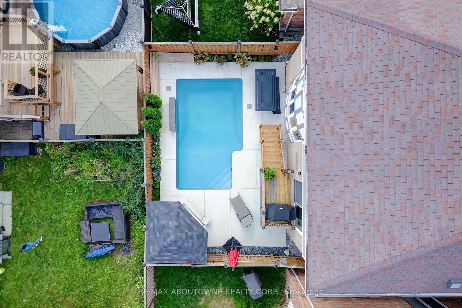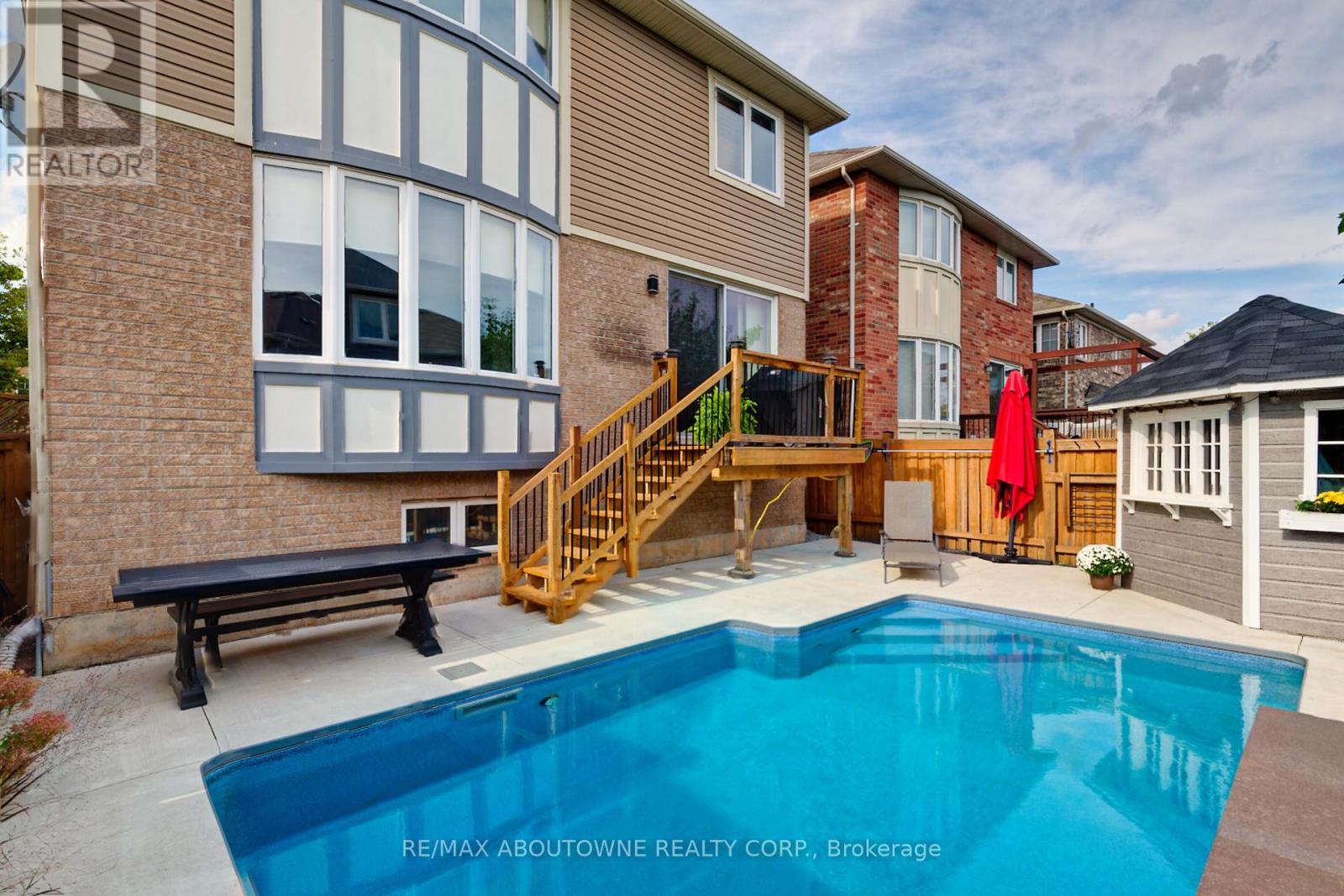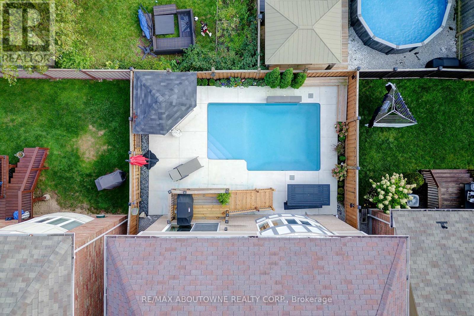 Hot summer days are coming - make a splash in your own private, sparkling pool. Step outside to your private backyard retreat featuring a Pioneer in-ground pool (2021), your own staycation destination for hot summer days, family fun, and refreshing swims.This beautiful 2,296 square foot brick and stone detached home in Milton's family-friendly Town, known for its parks, playgrounds, and walking trails.Inside, this well-designed Carpet-free home offers spacious principal rooms with maple hardwood flooring, approximately 52 upgraded pot lights, and a bright, open-concept layout. The kitchen features KitchenAid built-in cooktop and wall oven, and overlooks the backyard through the breakfast area. The living room impresses with a cathedral ceiling, two French doors to a large balcony, and views over the formal dining room.The upper level offers generously sized bedrooms, including a spacious primary suite with maple hardwood floors, walk-in closet, and a 5-piece ensuite.The finished basement adds valuable living space with a recreation room, bedroom, and 3-piece ensuite, along with ample storage space, making it ideal for guests, teens, or extended family.Additional features include central vacuum, for added everyday convenience.Enjoy the benefit of being within a short walk to excellent elementary schools including Escarpment View Public School and Queen of Heaven Catholic Elementary School, making this an ideal location for families.Located close to shopping, parks, and commuter routes, this home offers the perfect blend of comfort, space, and lifestyle in one of Milton's most sought-after communities. (id:43681)