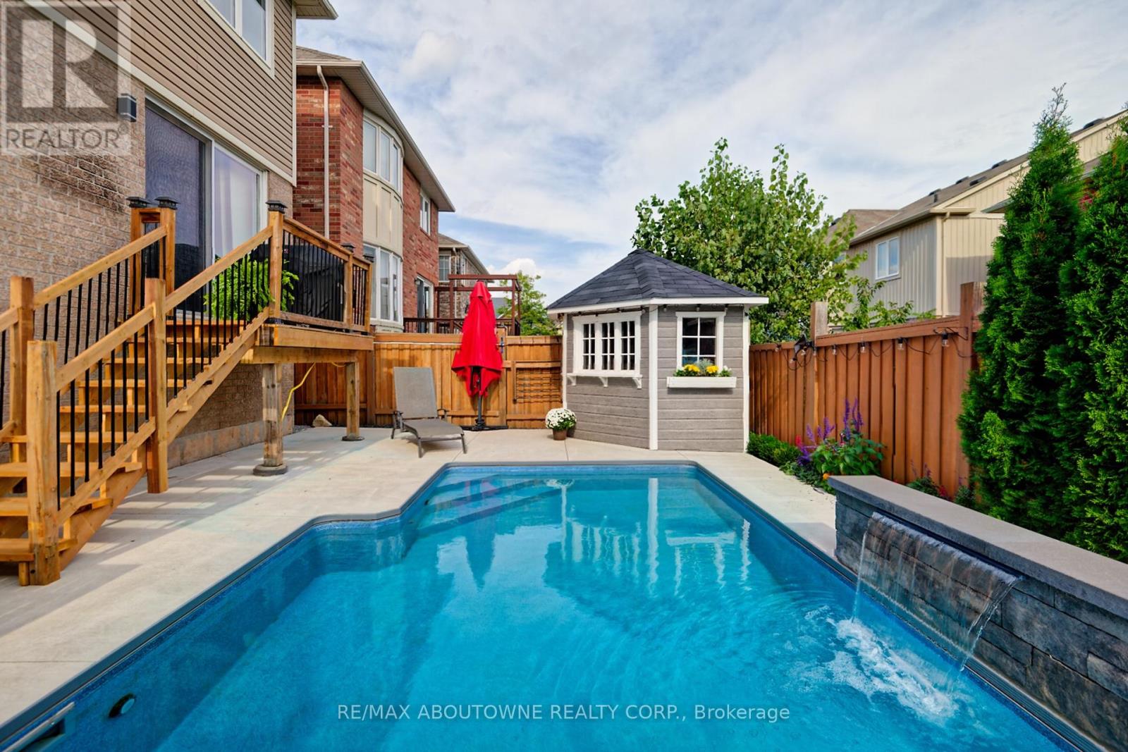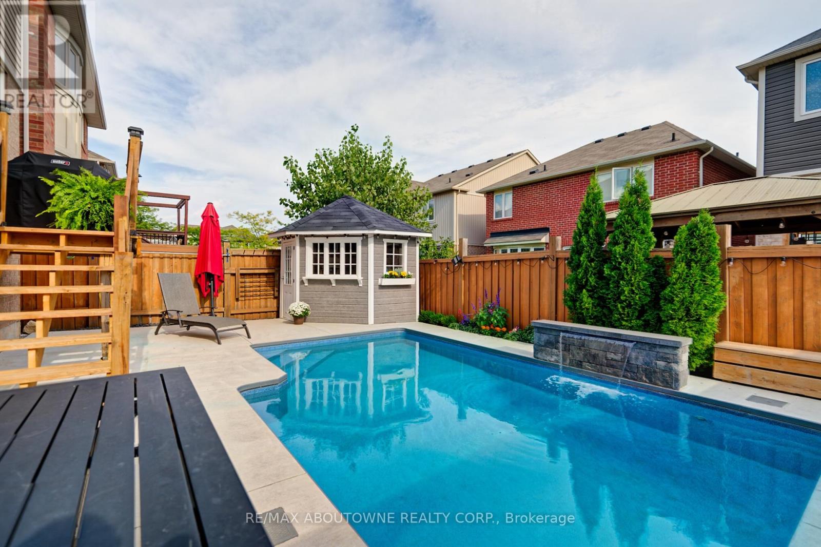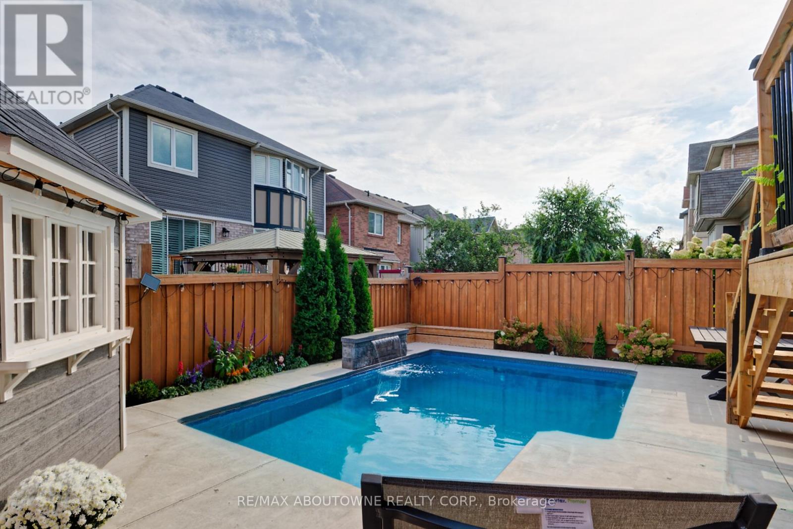 Hot summer days are coming - make a splash in your own private, sparkling pool. Step outside to your private backyard retreat featuring a Pioneer in-ground pool (2021), your own staycation destination for hot summer days, family fun, and refreshing swims.This beautiful 2,296 square foot brick and stone detached home in Milton's family-friendly Town, known for its parks, playgrounds, and walking trails.Inside, this well-designed Carpet-free home offers spacious principal rooms with maple hardwood flooring, approximately 52 upgraded pot lights, and a bright, open-concept layout. The kitchen features KitchenAid built-in cooktop and wall oven, and overlooks the backyard through the breakfast area. The living room impresses with a cathedral ceiling, two French doors to a large balcony, and views over the formal dining room.The upper level offers generously sized bedrooms, including a spacious primary suite with maple hardwood floors, walk-in closet, and a 5-piece ensuite.The finished basement adds valuable living space with a recreation room, bedroom, and 3-piece ensuite, along with ample storage space, making it ideal for guests, teens, or extended family.Additional features include central vacuum, for added everyday convenience.Enjoy the benefit of being within a short walk to excellent elementary schools including Escarpment View Public School and Queen of Heaven Catholic Elementary School, making this an ideal location for families.Located close to shopping, parks, and commuter routes, this home offers the perfect blend of comfort, space, and lifestyle in one of Milton's most sought-after communities. (id:43681)