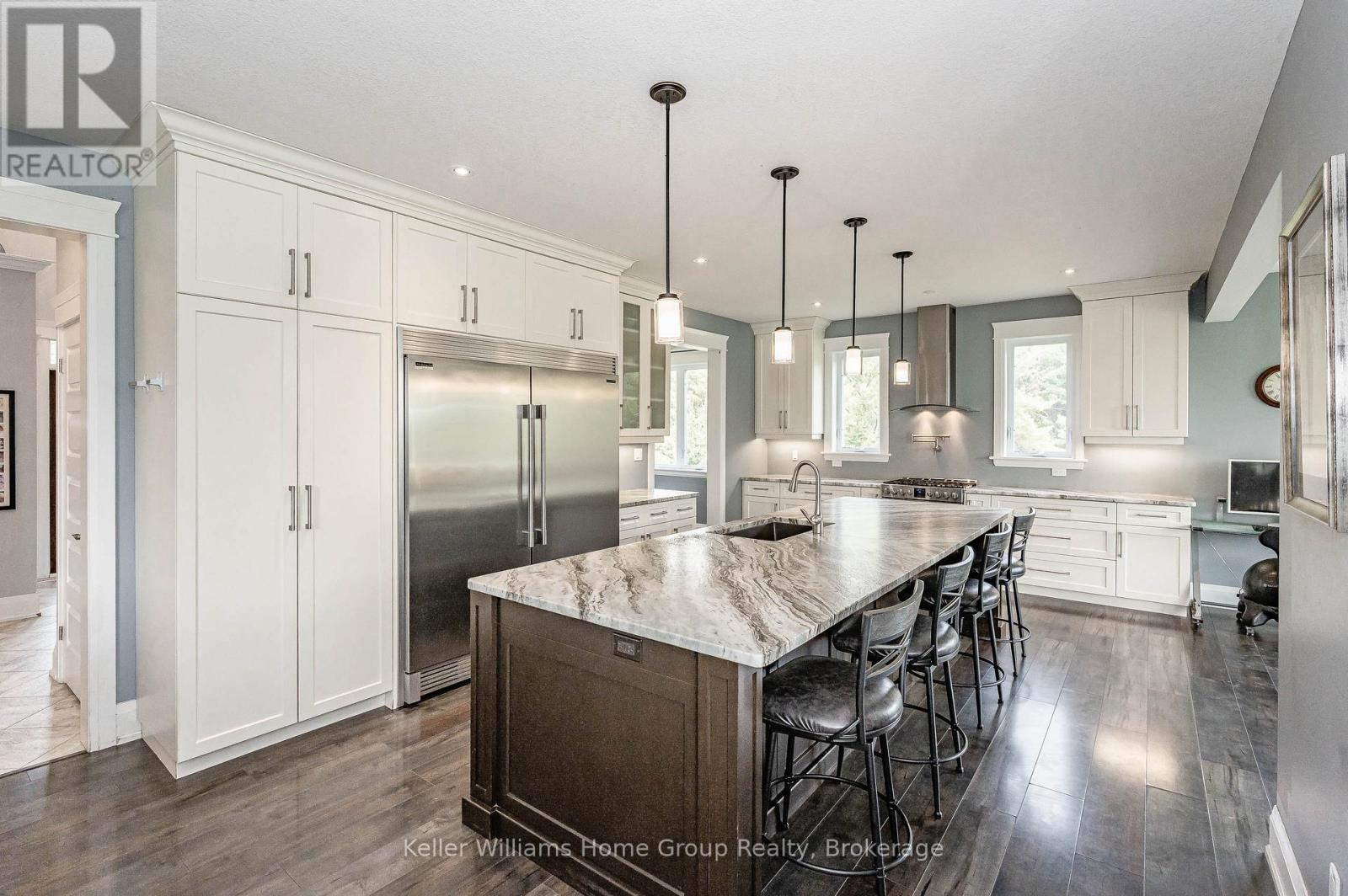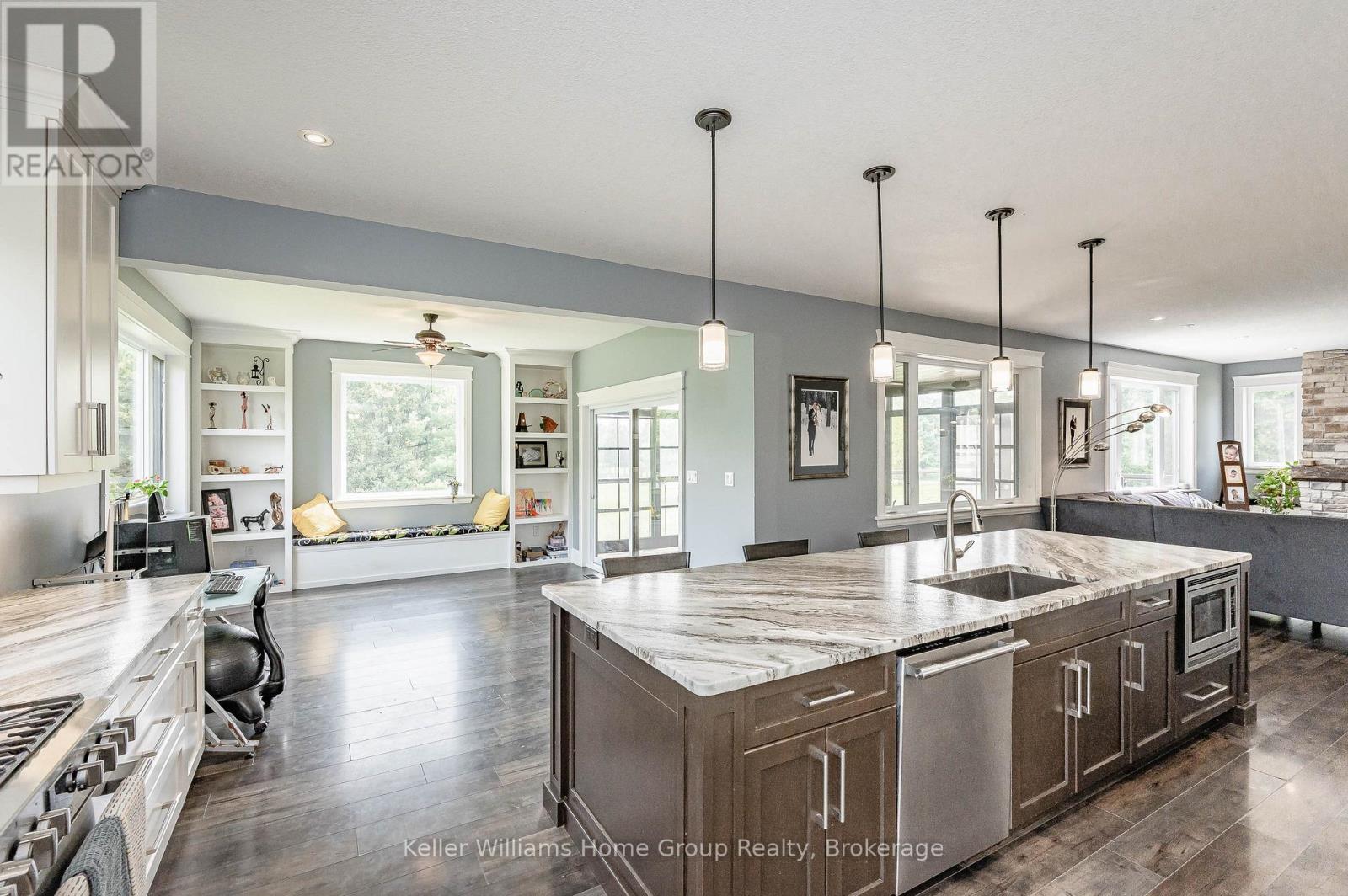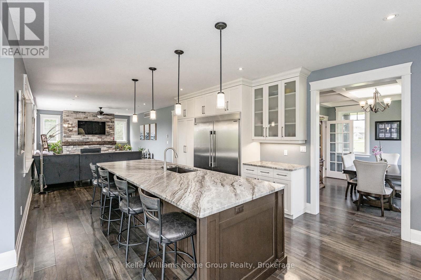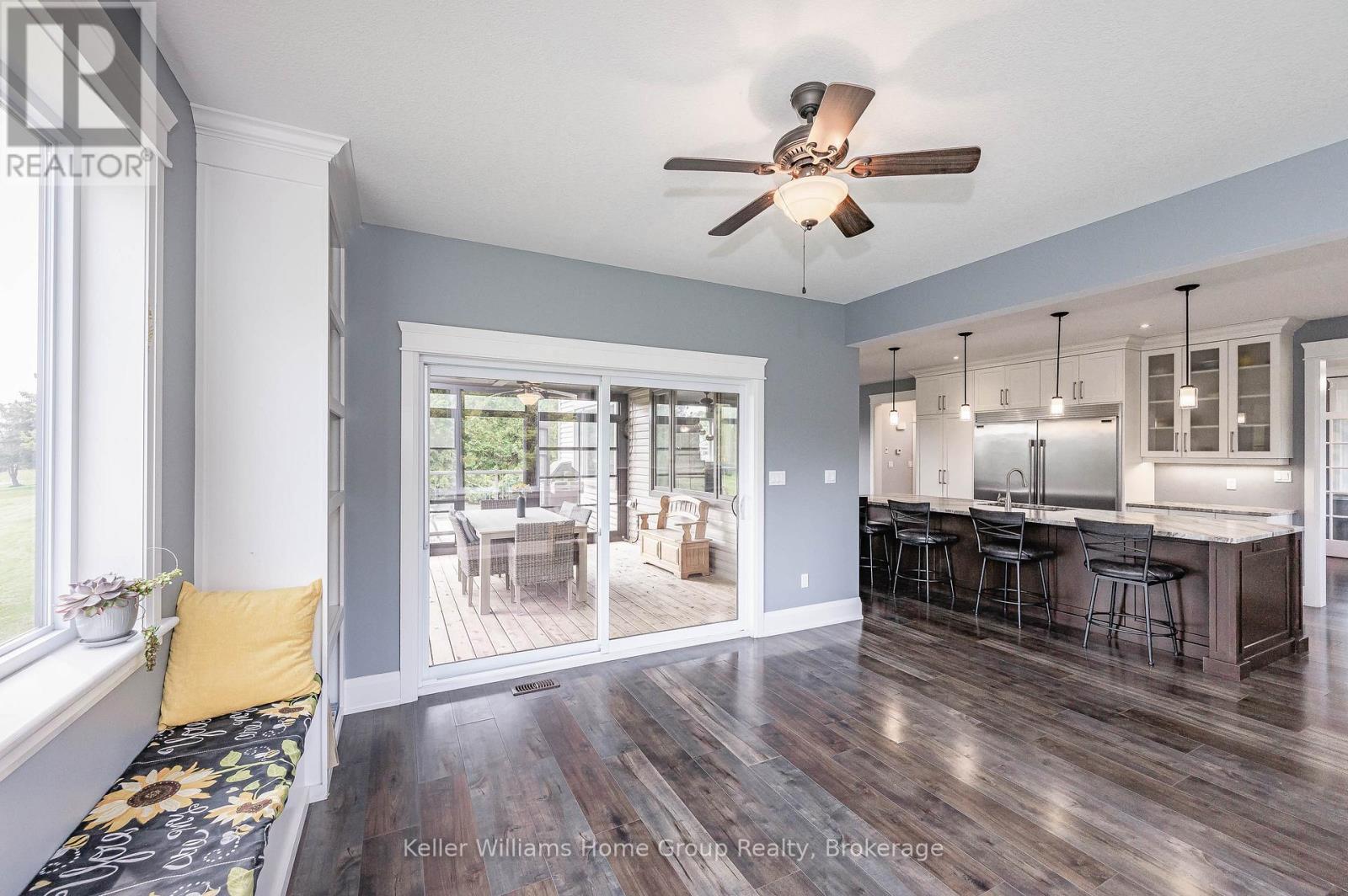 Ever dreamed of owning your own golf course? Now is your chance. This exceptional property offers a rare opportunity to enjoy luxurious country living while operating a thriving business-all in one remarkable location. Set on a 9-hole golf course, the property also features a fully serviced, year-round restaurant, making it an ideal live/work investment. The stunning 2,700 sq. ft. home is designed with both comfort and elegance in mind, complete with a fully finished walk-out basement that provides generous additional living space. Inside, you'll find bright, spacious principal rooms enhanced by upscale details, including a coffered ceiling in the dining room, a cozy gas fireplace in the great room, and a chef-inspired kitchen equipped with a Sub-Zero refrigerator and an oversized island perfect for entertaining. A screened-in porch overlooks the course, offering a peaceful retreat to relax and take in the views. Upstairs, the expansive primary suite features a private ensuite and walk-in closet, while three additional bedrooms-each with their own walk-in closet-ensure ample space for family or guests.The property also offers abundant parking, with a double attached garage and a large driveway capable of accommodating gatherings of any size. This is a truly unique opportunity to combine lifestyle and business in a picturesque setting. (id:43681)