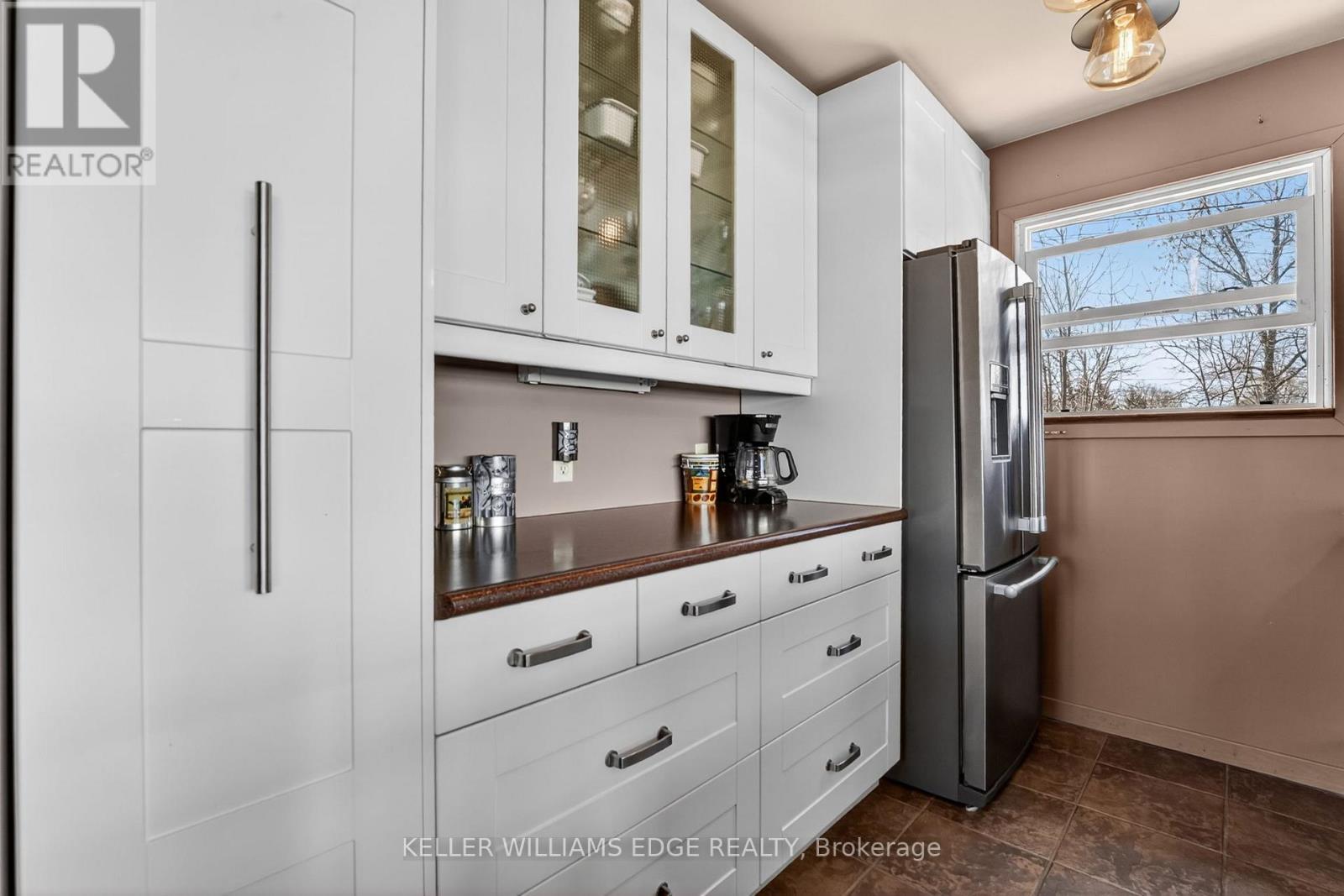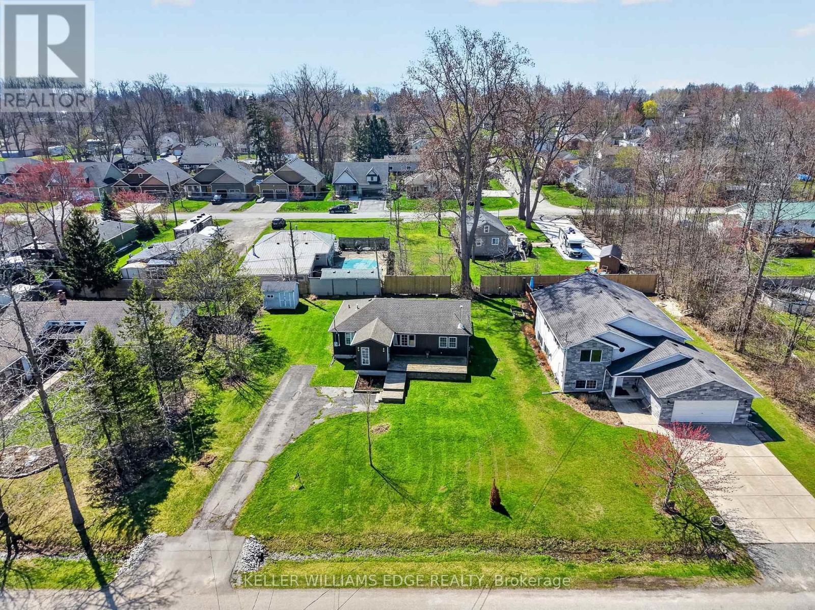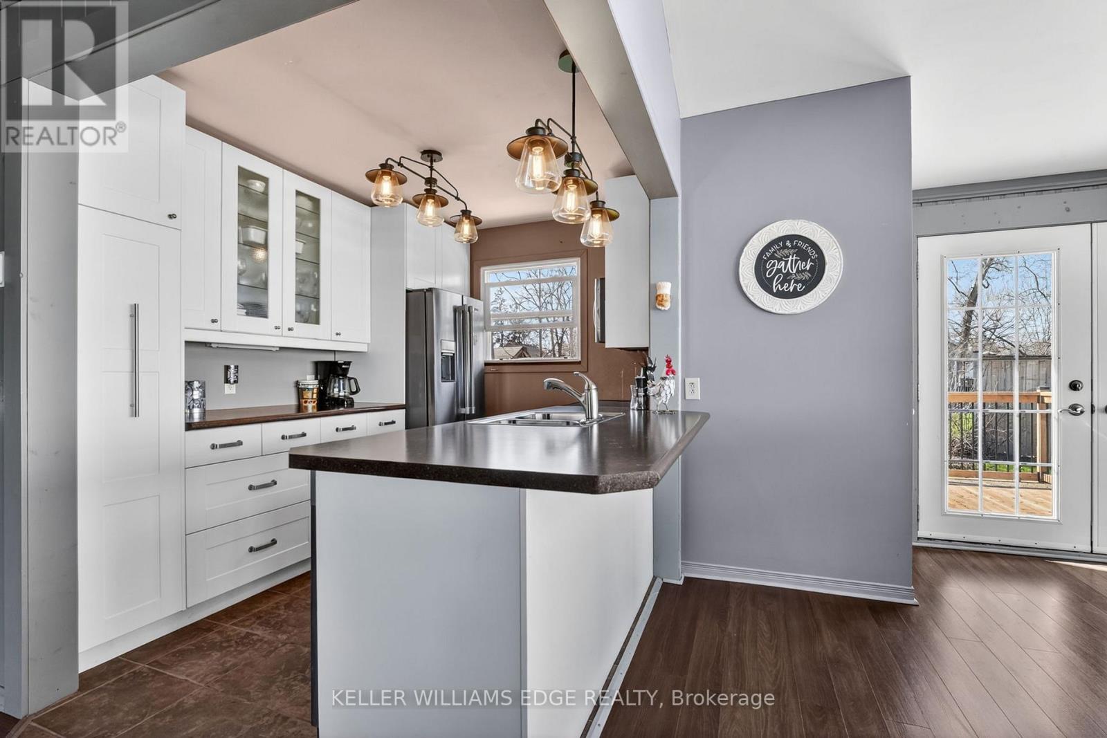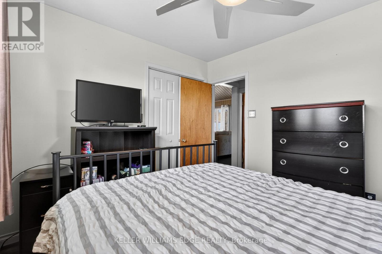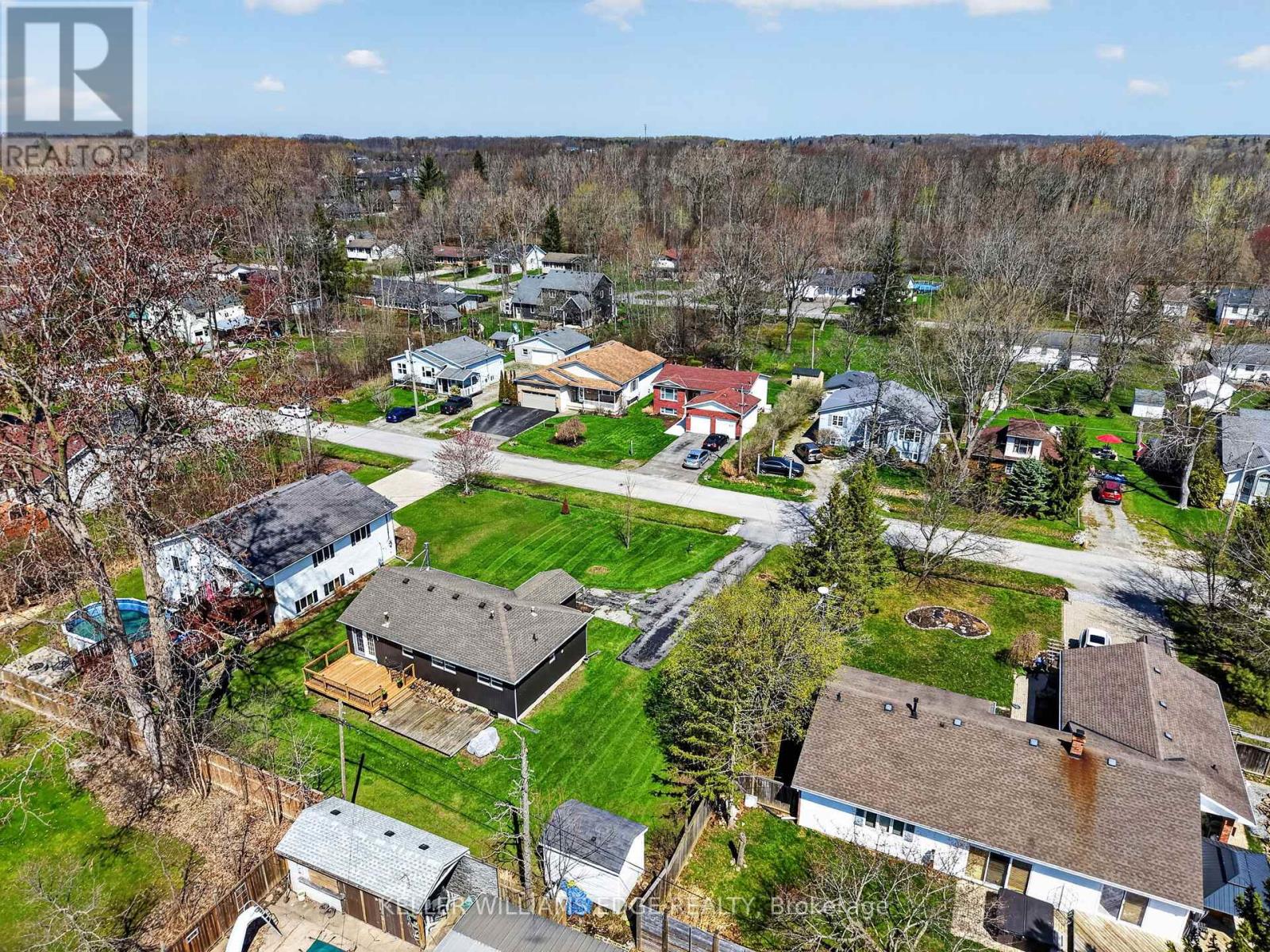 This gorgeous 1149 sq ft bungalow stands out with its modern dark exterior, a front deck lounging space, and an expansive multi-tiered deck spanning the entire back of the home, perfect for summer evenings, entertaining, or quiet mornings. Inside the front door, a spacious foyer/mudroom adds everyday function and storage, leading into the grand living area where a soaring vaulted ceiling and vertical wood slat walls create a warm, inviting space rich in texture and character. The open-concept layout flows seamlessly from the kitchen into the dining area and secondary sitting space, all filled with natural light from oversized windows. Just off the dining area, a cozy sitting room with a wood-burning fireplace (2024) creates a natural extension of the living space, offering the perfect spot to unwind and enjoy a true cottage-like feel year-round. With two comfortable sized bedrooms, this home is perfectly suited for those looking to simplify or downsize without compromise. The spacious 4-piece bathroom features a jetted tub and separate shower, offering a relaxing retreat. The dedicated utility room with laundry enhances the ease of one-floor living. Located within walking distance to the beach and just minutes from historic downtown Ridgeway, you'll enjoy easy access to charming boutique shops, local restaurants, everyday amenities, and the beloved Ridgeway Farmers' Market, making it easy to embrace a relaxed, community-focused lifestyle you won't need to vacation from. Set on a generous 0.25-acre lot, this home offers a peaceful setting while still being close to everything you need. A rare opportunity for buyers seeking a cozy, move-in-ready home with character, just move in and enjoy! (id:43681)