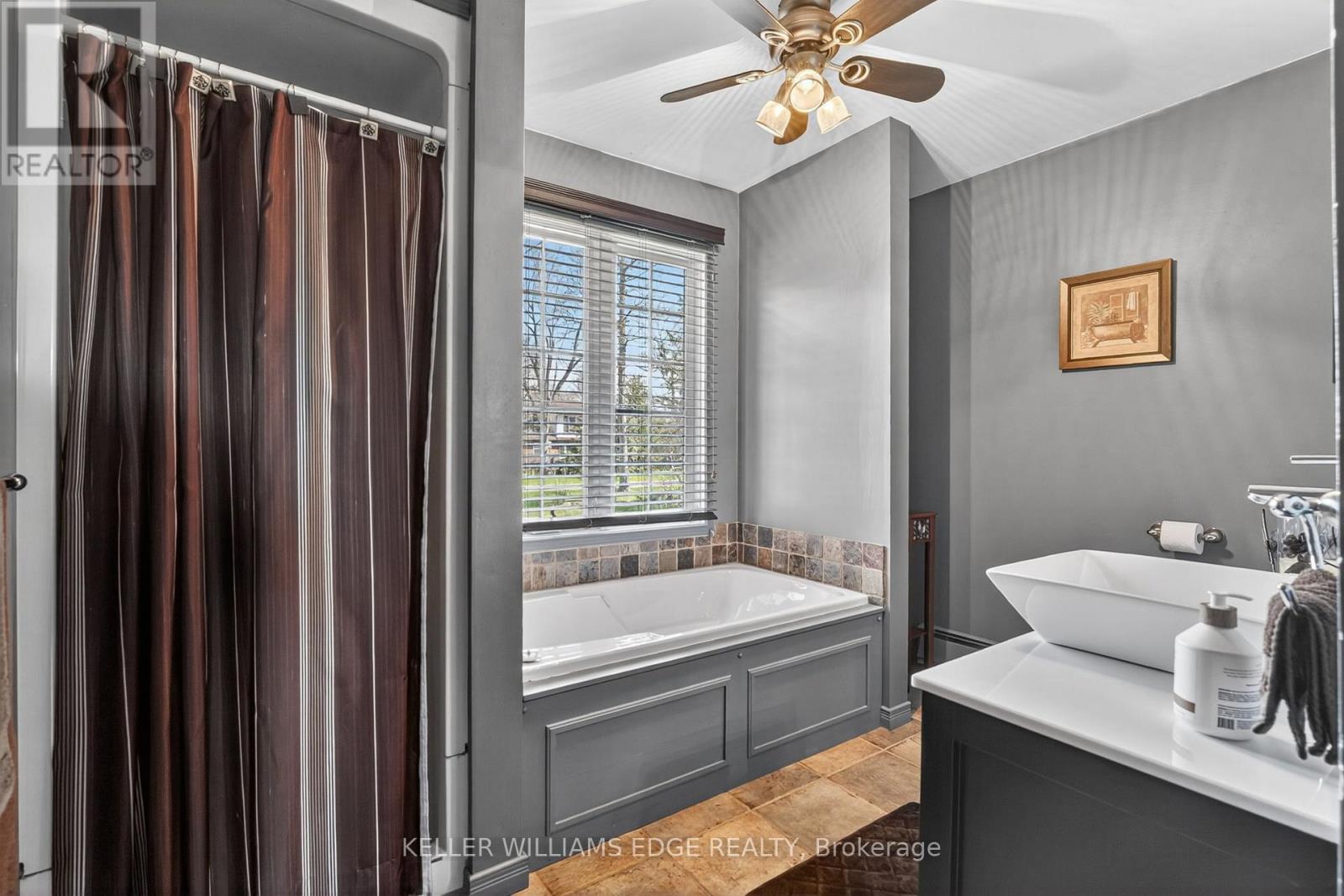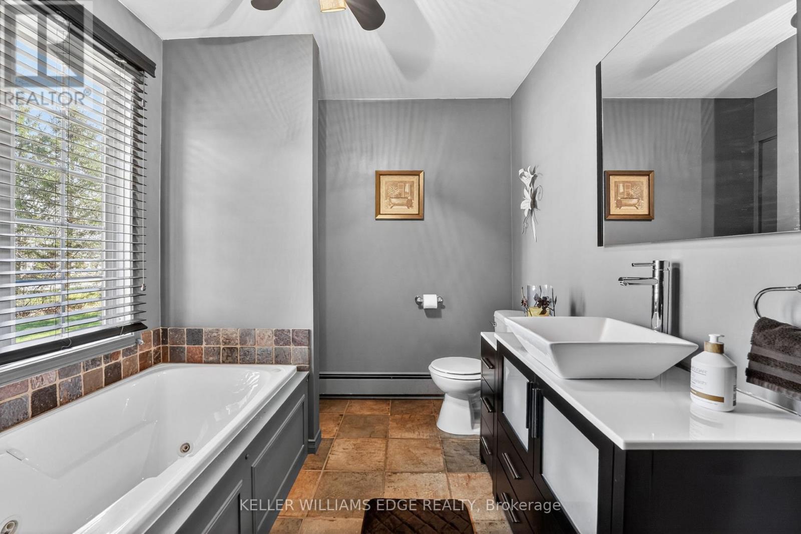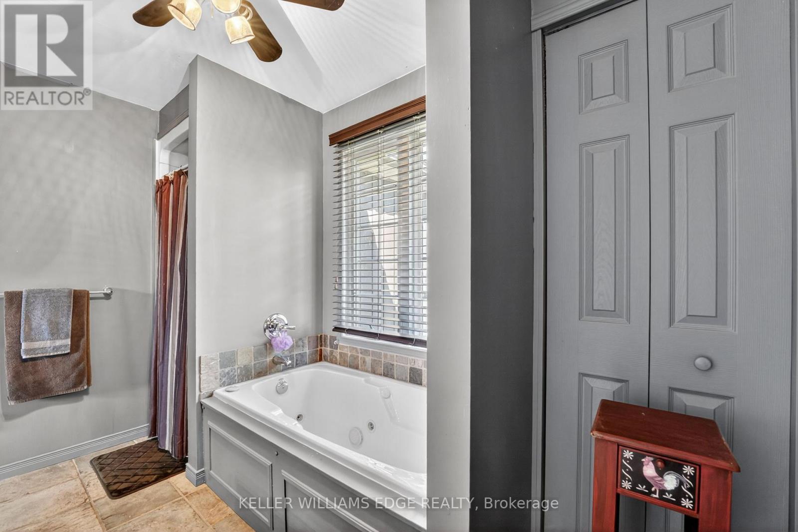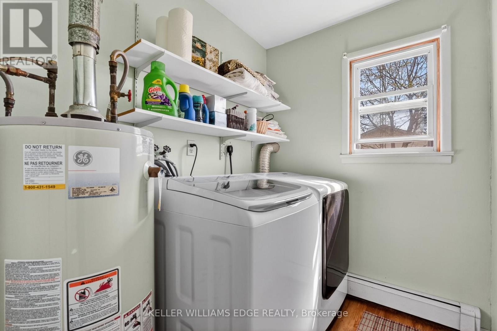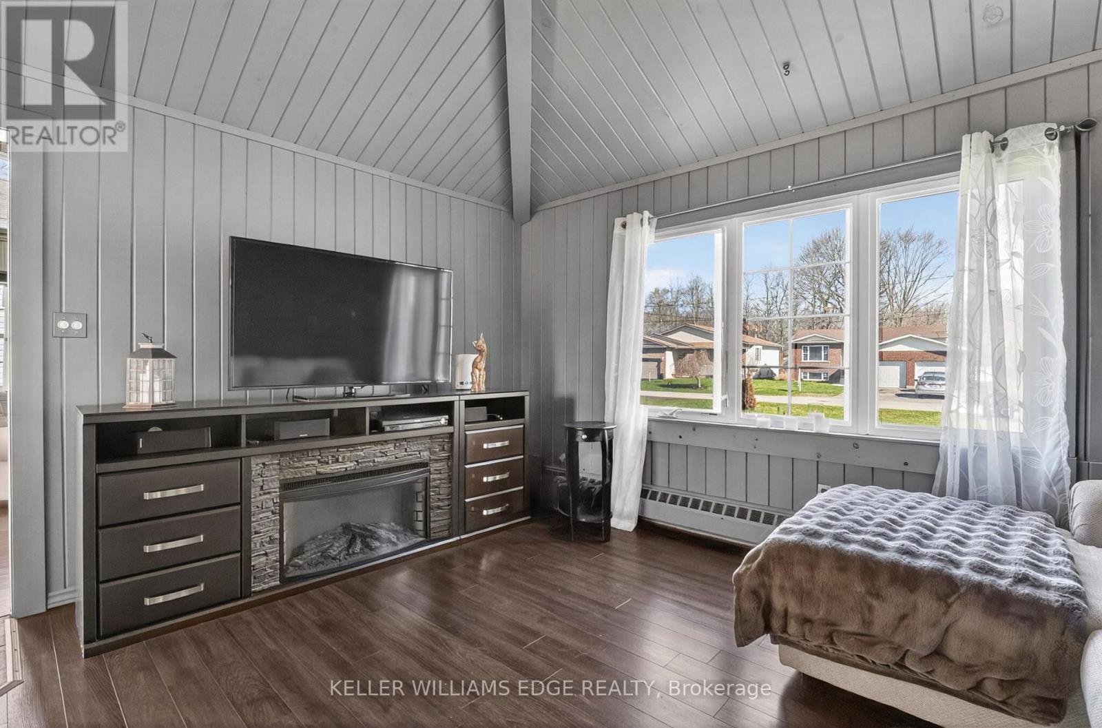 This gorgeous 1149 sq ft bungalow stands out with its modern dark exterior, a front deck lounging space, and an expansive multi-tiered deck spanning the entire back of the home, perfect for summer evenings, entertaining, or quiet mornings. Inside the front door, a spacious foyer/mudroom adds everyday function and storage, leading into the grand living area where a soaring vaulted ceiling and vertical wood slat walls create a warm, inviting space rich in texture and character. The open-concept layout flows seamlessly from the kitchen into the dining area and secondary sitting space, all filled with natural light from oversized windows. Just off the dining area, a cozy sitting room with a wood-burning fireplace (2024) creates a natural extension of the living space, offering the perfect spot to unwind and enjoy a true cottage-like feel year-round. With two comfortable sized bedrooms, this home is perfectly suited for those looking to simplify or downsize without compromise. The spacious 4-piece bathroom features a jetted tub and separate shower, offering a relaxing retreat. The dedicated utility room with laundry enhances the ease of one-floor living. Located within walking distance to the beach and just minutes from historic downtown Ridgeway, you'll enjoy easy access to charming boutique shops, local restaurants, everyday amenities, and the beloved Ridgeway Farmers' Market, making it easy to embrace a relaxed, community-focused lifestyle you won't need to vacation from. Set on a generous 0.25-acre lot, this home offers a peaceful setting while still being close to everything you need. A rare opportunity for buyers seeking a cozy, move-in-ready home with character, just move in and enjoy! (id:43681)