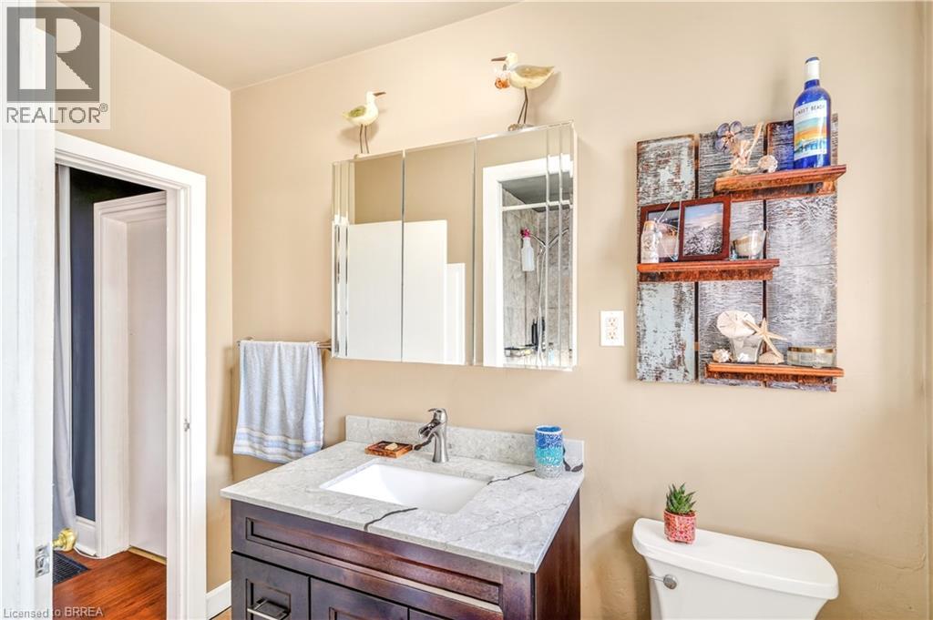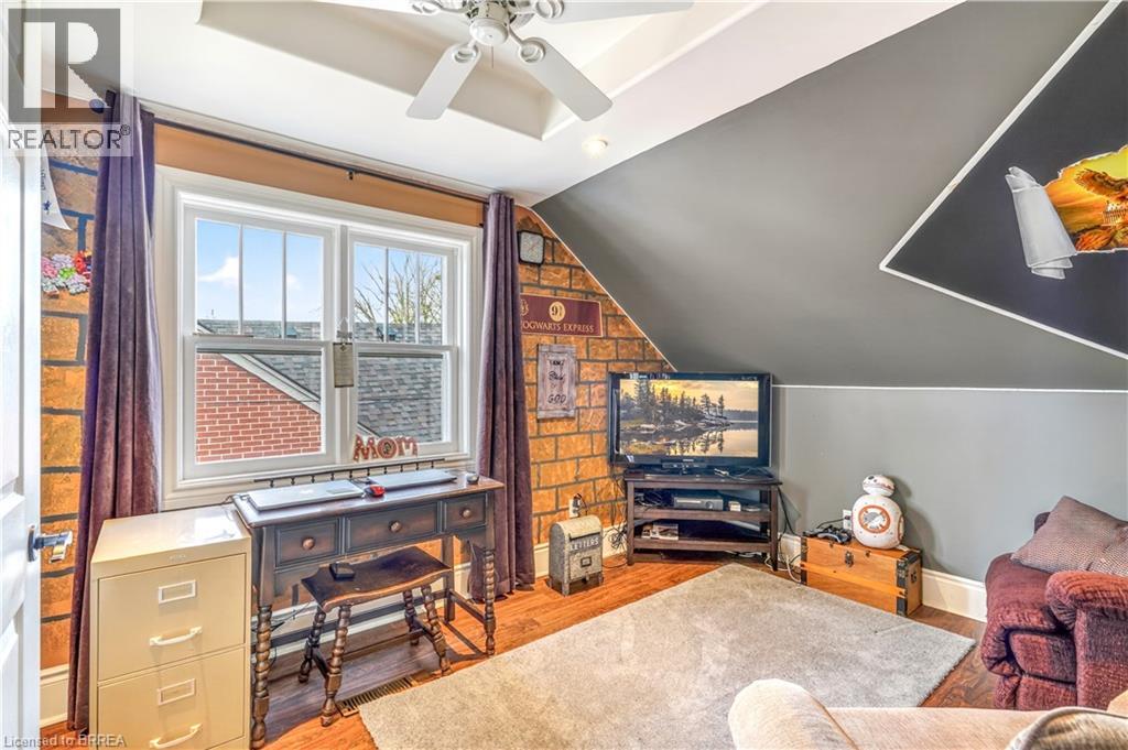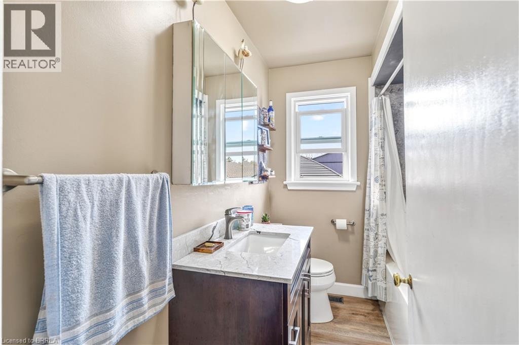 A Beautiful Family Home on a Quiet Dead-End Street! This lovely brick home is sitting on a deep lot in a desirable Terrace Hill neighbourhood with a detached garage, an inground swimming pool, great neighbours, and a big park at the end of the street. Pride of ownership is evident from the moment you walk through the front door and into the inviting living room with hardwood flooring and pot lighting where you can entertain with family and friends, a formal dining room for enjoying family meals, a bright kitchen with luxury vinyl plank flooring and a window that looks out to the backyard space, a main floor bedroom with laminate flooring, and an updated 4pc. bathroom that features a vanity with a quartz countertop and a modern tiled shower with a soaker tub. Upstairs you'll find 2 generous-sized bedrooms and a convenient 2pc. bathroom. There is a separate entrance from the backyard(and off the kitchen) with stairs leading down to the finished basement where you'll find a cozy recreation room with a feature wall, a den that is currently being used as a home gym, a pristine 3pc. bathroom, a 4th bedroom, and the laundry room. You can enjoy summer barbecues with family and friends in the backyard space where everyone can lounge around the pool and take a dip to cool off, or relax under the gazebo, and the detached garage will be perfect for the hobbyist. Updates include new 30-year roof shingles in 2012, new furnace in 2013, newly renovated bathroom in 2021, widened driveway in 2019, some newer windows in 2019, new fencing in 2018, new pool liner in 2025, new pool pump in 2021, new pool filter in 2019, and more. A wonderful home sitting on a quiet dead-end street with access to a huge park that has play equipment and lots of room for the kids to run around and play and located close to schools, parks, shopping, restaurants, and highway access. Book a private viewing for this beautiful home. Book a private viewing for this beautiful home! (id:43681)