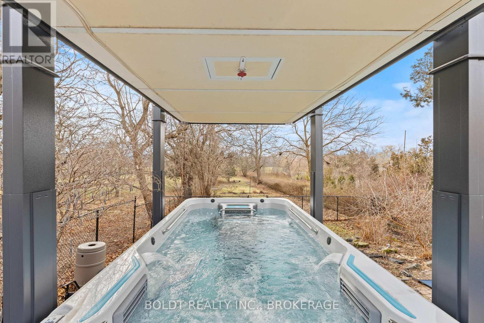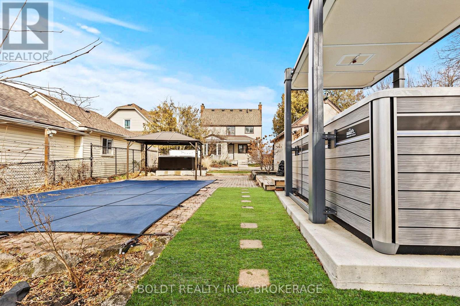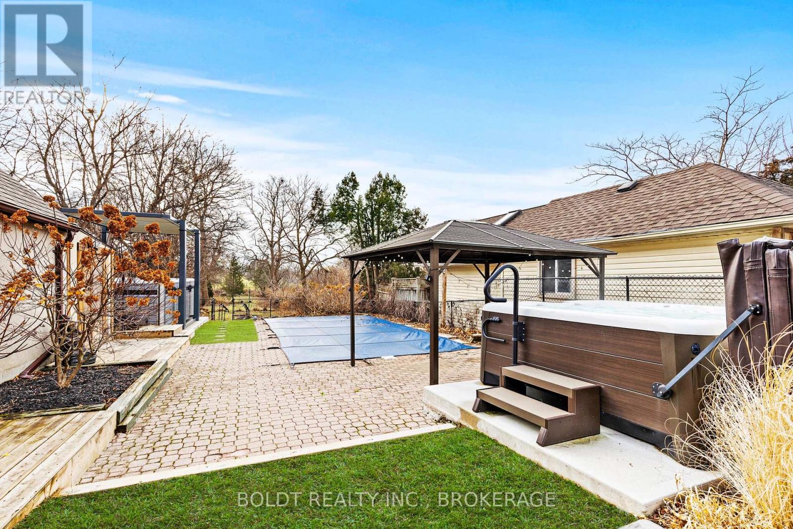 Welcome to 322 Queenston Street, where country living meets city convenience. Set on an expansive 42 x 425 ft lot and backing onto the Garden City Golf & Country Club, this exceptional property offers spectacular rear views that truly capture a peaceful, country-like atmosphere, private and serene while remaining close to amenities.Inside, you're welcomed by a cozy living room with fireplace, a convenient 2-piece bathroom, and main-floor laundry. A spacious formal dining room flows seamlessly into the kitchen, creating a functional and inviting layout ideal for everyday living and entertaining. The kitchen is beautifully appointed and thoughtfully designed as the heart of the home.Upstairs, the generous primary bedroom features walk-in closets and a well-designed 5-piece bathroom. A second beautifully finished bedroom completes the upper level.The fully finished basement adds tremendous versatility and features an impressive theatre room, perfect for movie nights, entertaining guests, or watching the big game.Step outside to your own private backyard retreat with no rear neighbours. Enjoy an inground saltwater pool with a newer liner approximately 2 years old, offering peace of mind while enhancing the outdoor lifestyle. The yard also presents a special opportunity to incorporate a luxury swim spa, elevating the space into a true resort-style setting. Additional highlights include a roof from 2013, furnace and air conditioning from 2016, and many new high-efficiency windows. Ideally located in close proximity to public transit, highways, parks, shopping, and all amenities, this home offers the perfect balance of privacy, lifestyle, and convenience. (id:43681)