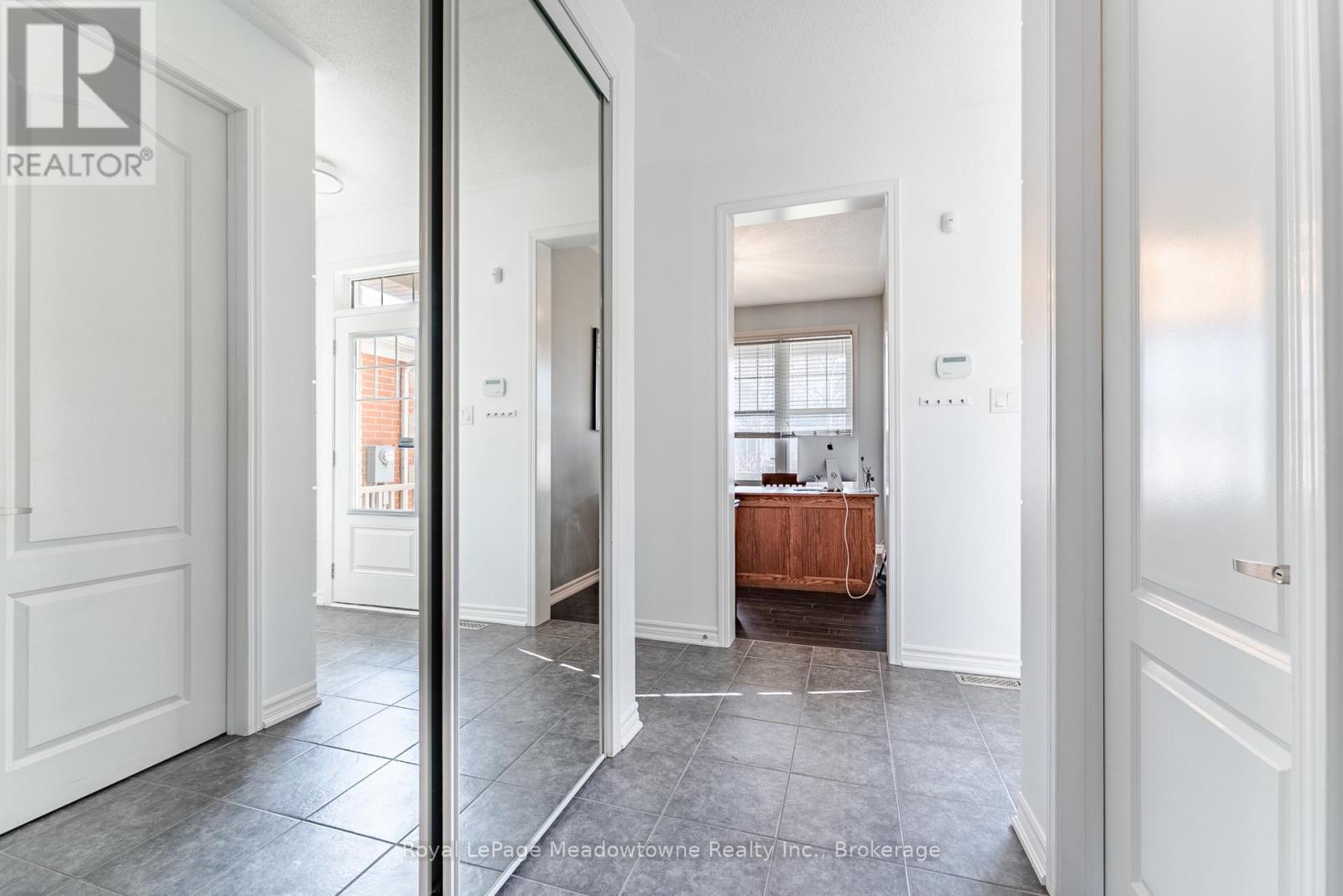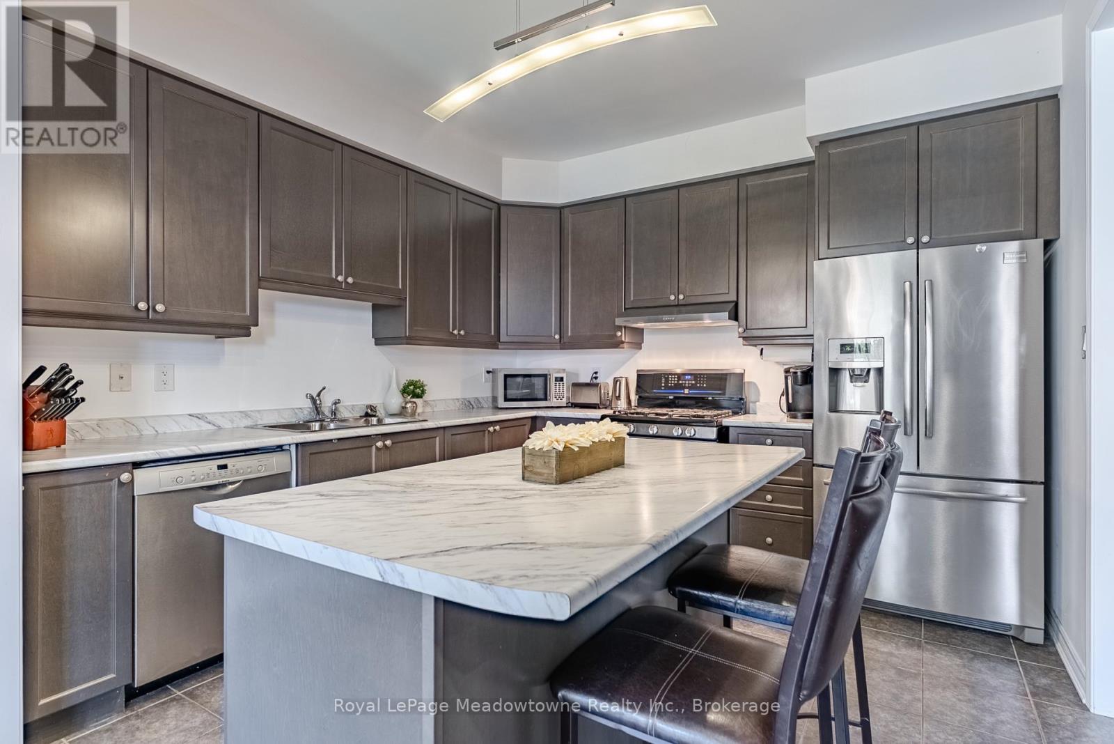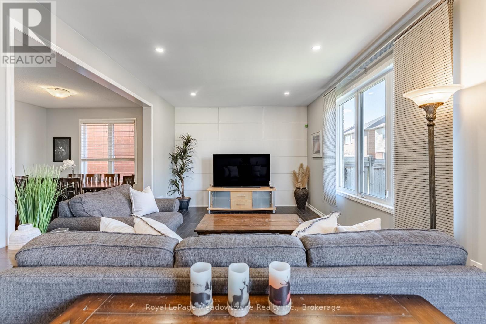 Welcome to this beautifully laid out 1,877 sq. ft. detached home in Milton's sought after Harrison neighbourhood. What truly stands out here is how well the layout supports everyday family living, offering the right balance of open shared spaces and quieter areas so everyone can spread out without feeling on top of each other.The main floor is anchored by a bright, open concept kitchen, breakfast area, and great room at the back of the home - the natural hub for busy mornings, family time, and relaxed evenings. The kitchen features a gas stove and large island, making it as functional as it is welcoming, while the separate dining area offers added flexibility for hosting, holiday dinners, or everyday use. Hardwood flooring runs throughout the home, creating a clean, cohesive feel from room to room.At the front of the home, a dedicated office or additional living space provides valuable versatility. Whether you're working from home, helping with homework, setting up a play area, or simply looking for a quieter retreat away from the main living area, this layout gives you options that are not always easy to find in a home of this size.Upstairs, you'll find three generously sized bedrooms, including a spacious primary suite with his and hers closets and a 4-piece ensuite. The second floor laundry room adds everyday convenience exactly where it's needed most.The unfinished basement offers room to grow over time, whether you need additional storage, a home gym, or future living space tailored to your needs. Complete with a single car garage and located close to schools, parks, transit, and everyday amenities, this is a home that delivers both comfort and convenience in one of Milton's most established family-friendly communities. (id:43681)