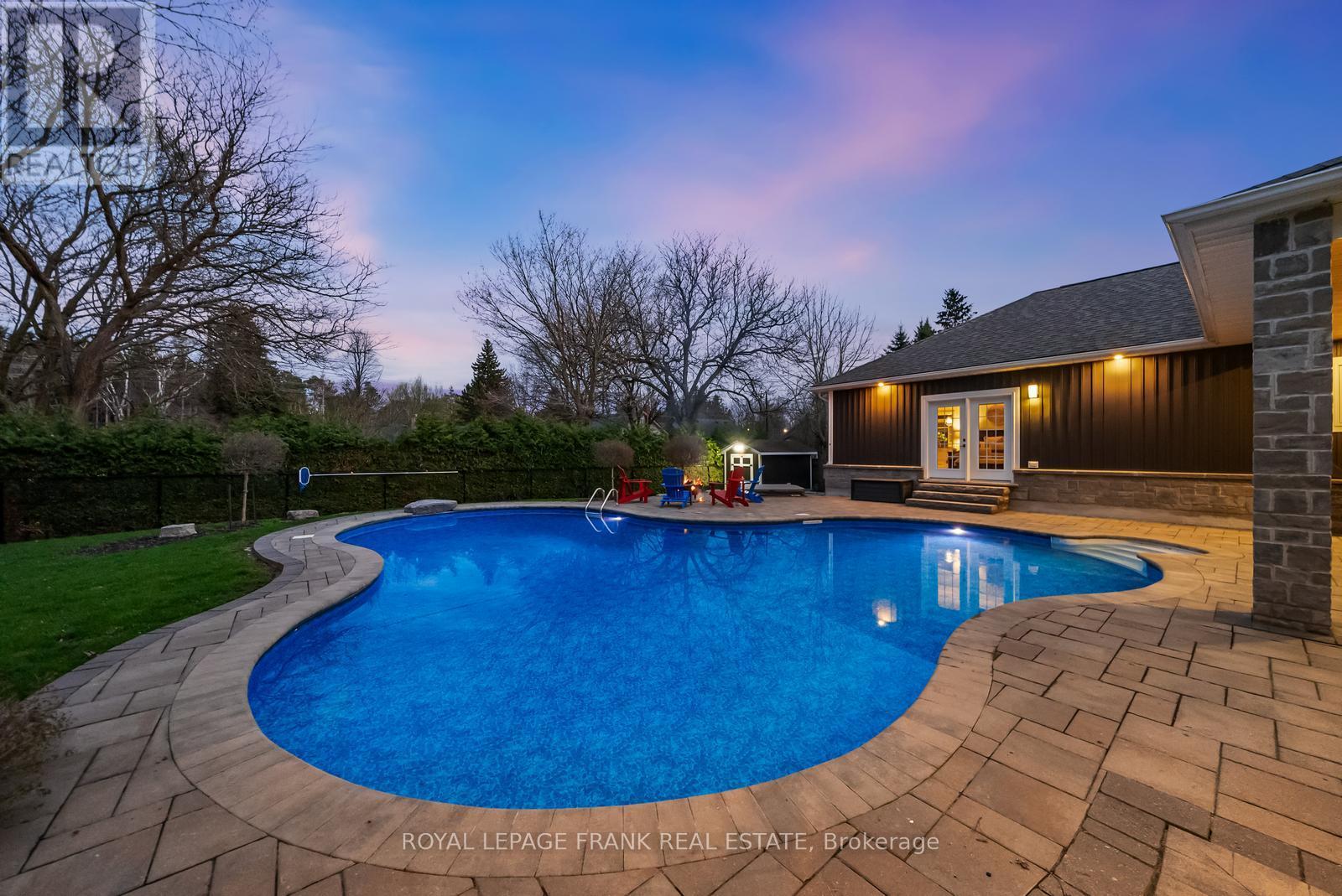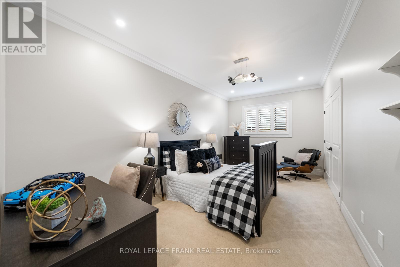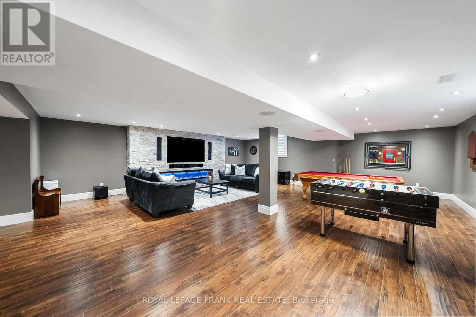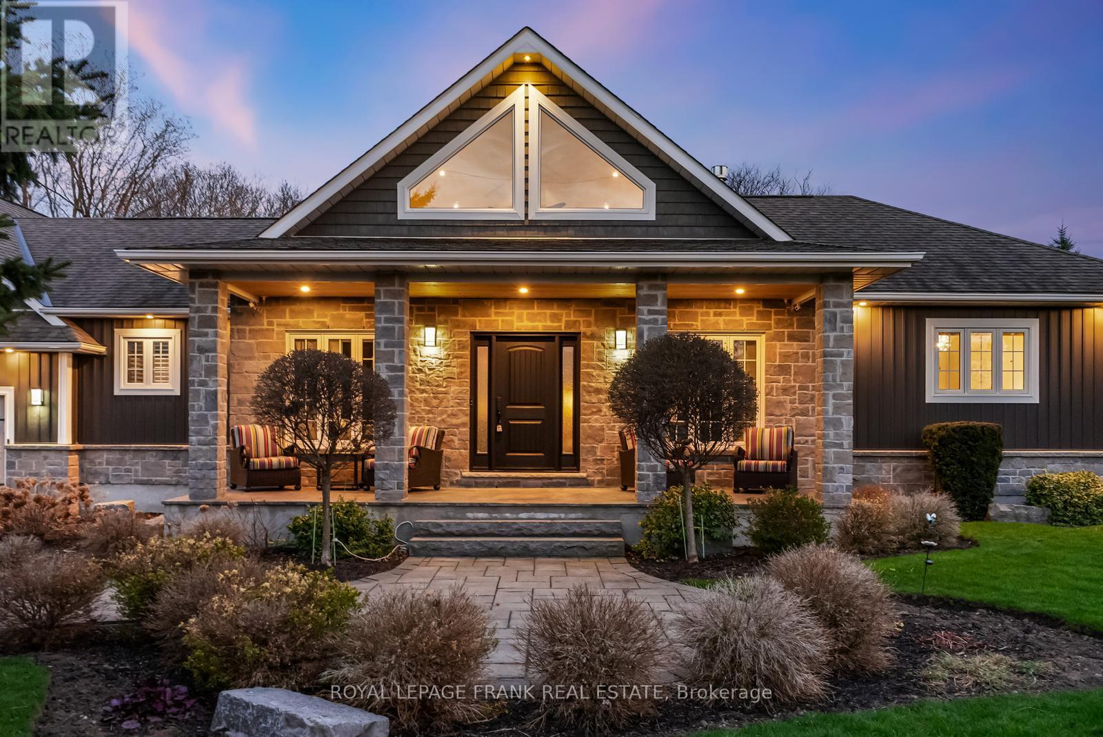 Welcome to an extraordinary, masterfully crafted bungalow offering over 5,300 square feet of impeccably refined living space. Set on an expansive 100' x 150' private estate lot, the residence is complemented by a resort-inspired backyard oasis, showcasing a lagoon-style heated saltwater pool and hot tub enveloped by professionally curated landscaping. A triple-wide, extended driveway accommodates up to 12 vehicles, in addition to a heated four-car garage featuring a convenient drive-through bay. Inside, a breathtaking great room unfolds beneath soaring 20-foot cathedral ceilings, framed by dramatic gable-end windows that bathe the space in natural light. The main level is defined by 9-foot ceilings, exquisite hardwood flooring, and expansive four-foot-wide hallways enhanced with elegant wainscoting. At the heart of the home lies a chef's kitchen of exceptional quality, appointed with fine solid wood cabinetry, soft-close detailing, and pristine quartz countertops anchored by a grand centre island. The primary suite serves as a serene private sanctuary, complete with dual walk-in closets and a spa-inspired ensuite featuring a granite walk-in shower, freestanding tub, heated floors, and a discreet, soundproof in-suite laundry. Three additional main-level bedrooms offer flexible accommodation for family and guests. The finished lower level extends the home's luxurious living space, presenting two generously sized bedrooms, a dedicated fitness studio, and an expansive family room centered around a striking 100" Napoleon fireplace. Above the garage, a spacious loft provides an ideal setting for a private office or creative studio. The professionally landscaped grounds, complete with a comprehensive irrigation system, ensures an effortlessly maintained outdoor environment. This exceptional estate is perfectly tailored for discerning homeowners who value both luxury, versatility and comfort. (id:43681)