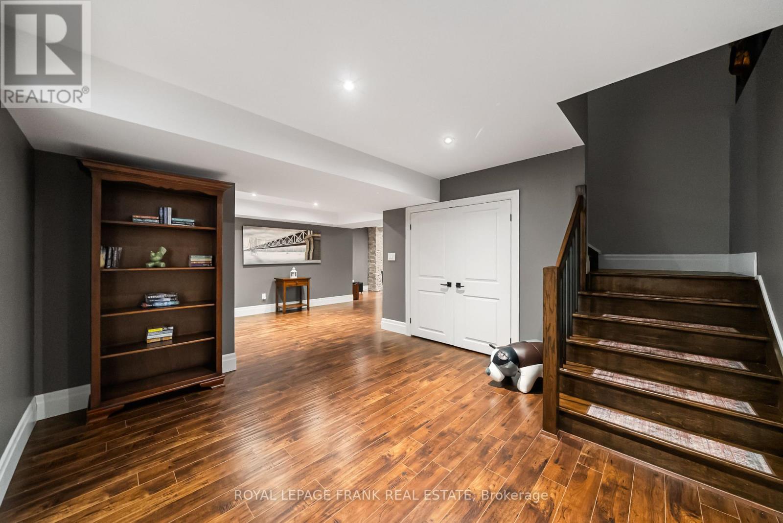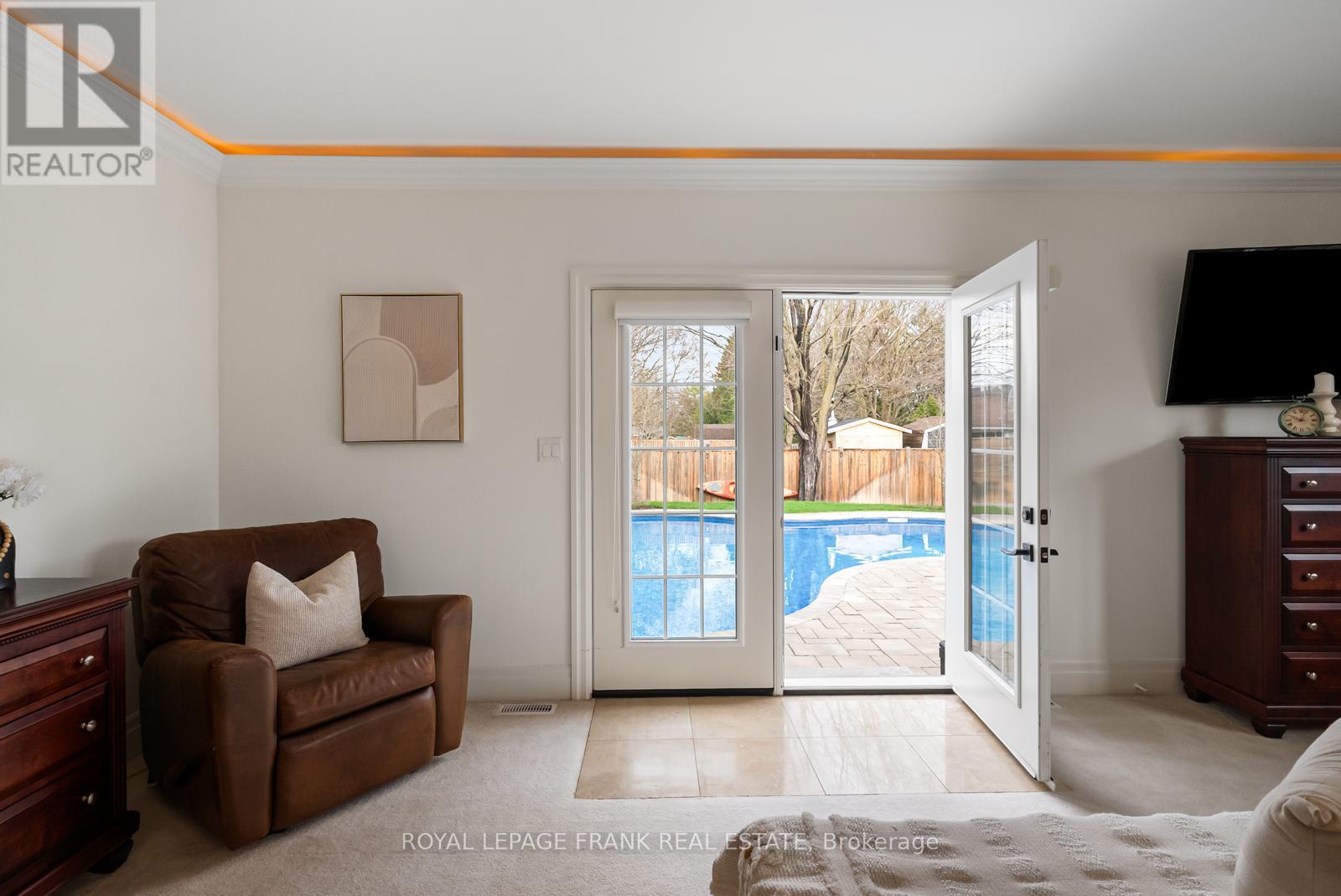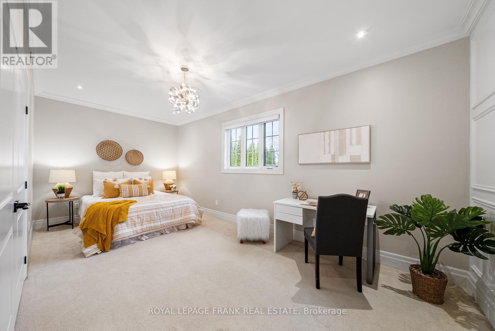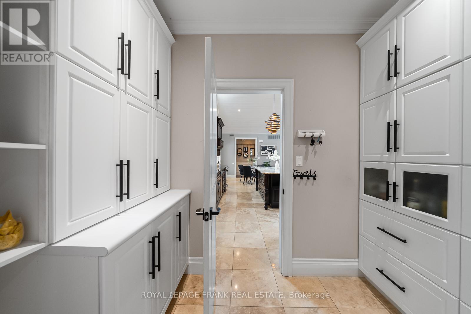 Welcome to an extraordinary, masterfully crafted bungalow offering over 5,300 square feet of impeccably refined living space. Set on an expansive 100' x 150' private estate lot, the residence is complemented by a resort-inspired backyard oasis, showcasing a lagoon-style heated saltwater pool and hot tub enveloped by professionally curated landscaping. A triple-wide, extended driveway accommodates up to 12 vehicles, in addition to a heated four-car garage featuring a convenient drive-through bay. Inside, a breathtaking great room unfolds beneath soaring 20-foot cathedral ceilings, framed by dramatic gable-end windows that bathe the space in natural light. The main level is defined by 9-foot ceilings, exquisite hardwood flooring, and expansive four-foot-wide hallways enhanced with elegant wainscoting. At the heart of the home lies a chef's kitchen of exceptional quality, appointed with fine solid wood cabinetry, soft-close detailing, and pristine quartz countertops anchored by a grand centre island. The primary suite serves as a serene private sanctuary, complete with dual walk-in closets and a spa-inspired ensuite featuring a granite walk-in shower, freestanding tub, heated floors, and a discreet, soundproof in-suite laundry. Three additional main-level bedrooms offer flexible accommodation for family and guests. The finished lower level extends the home's luxurious living space, presenting two generously sized bedrooms, a dedicated fitness studio, and an expansive family room centered around a striking 100" Napoleon fireplace. Above the garage, a spacious loft provides an ideal setting for a private office or creative studio. The professionally landscaped grounds, complete with a comprehensive irrigation system, ensures an effortlessly maintained outdoor environment. This exceptional estate is perfectly tailored for discerning homeowners who value both luxury, versatility and comfort. (id:43681)