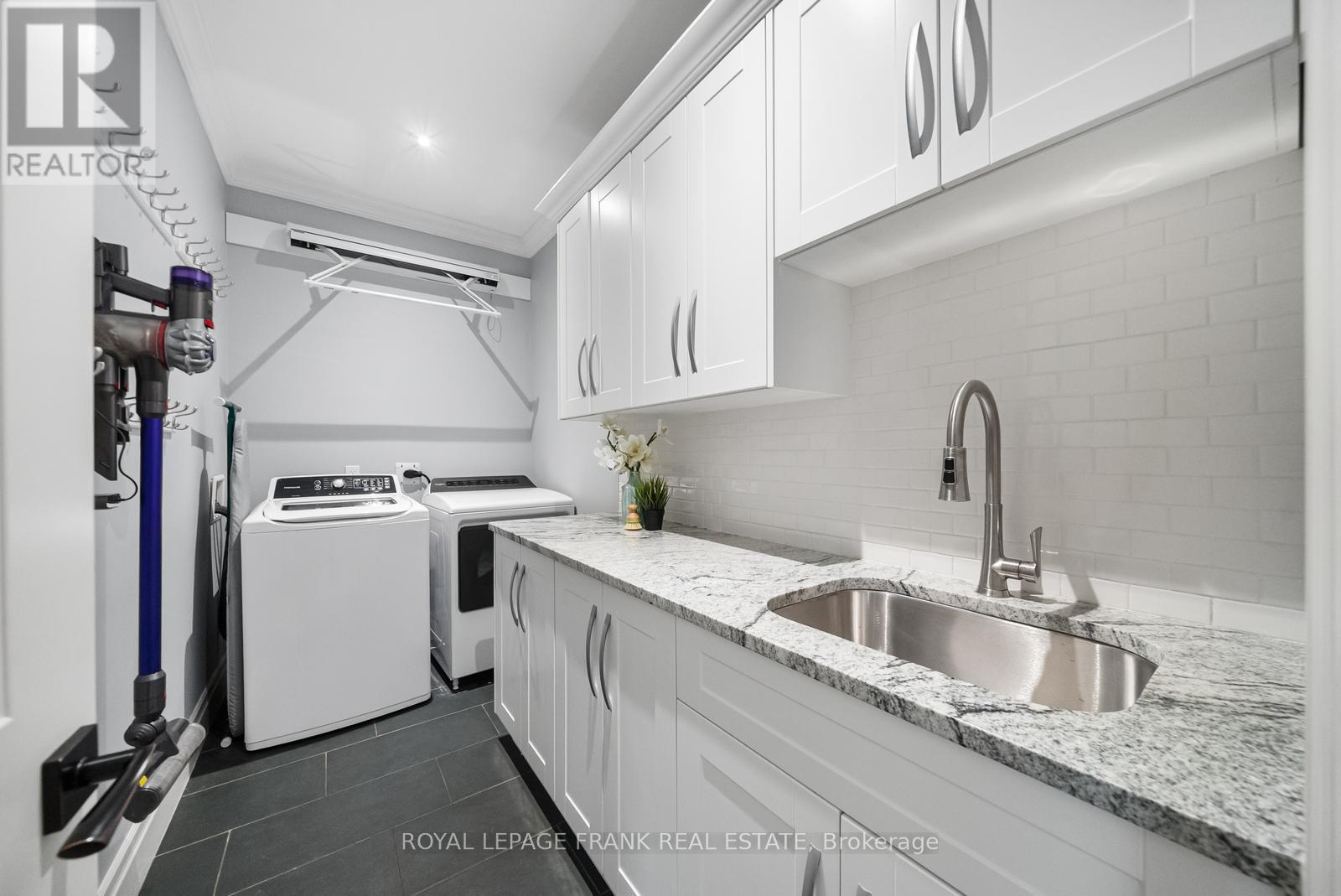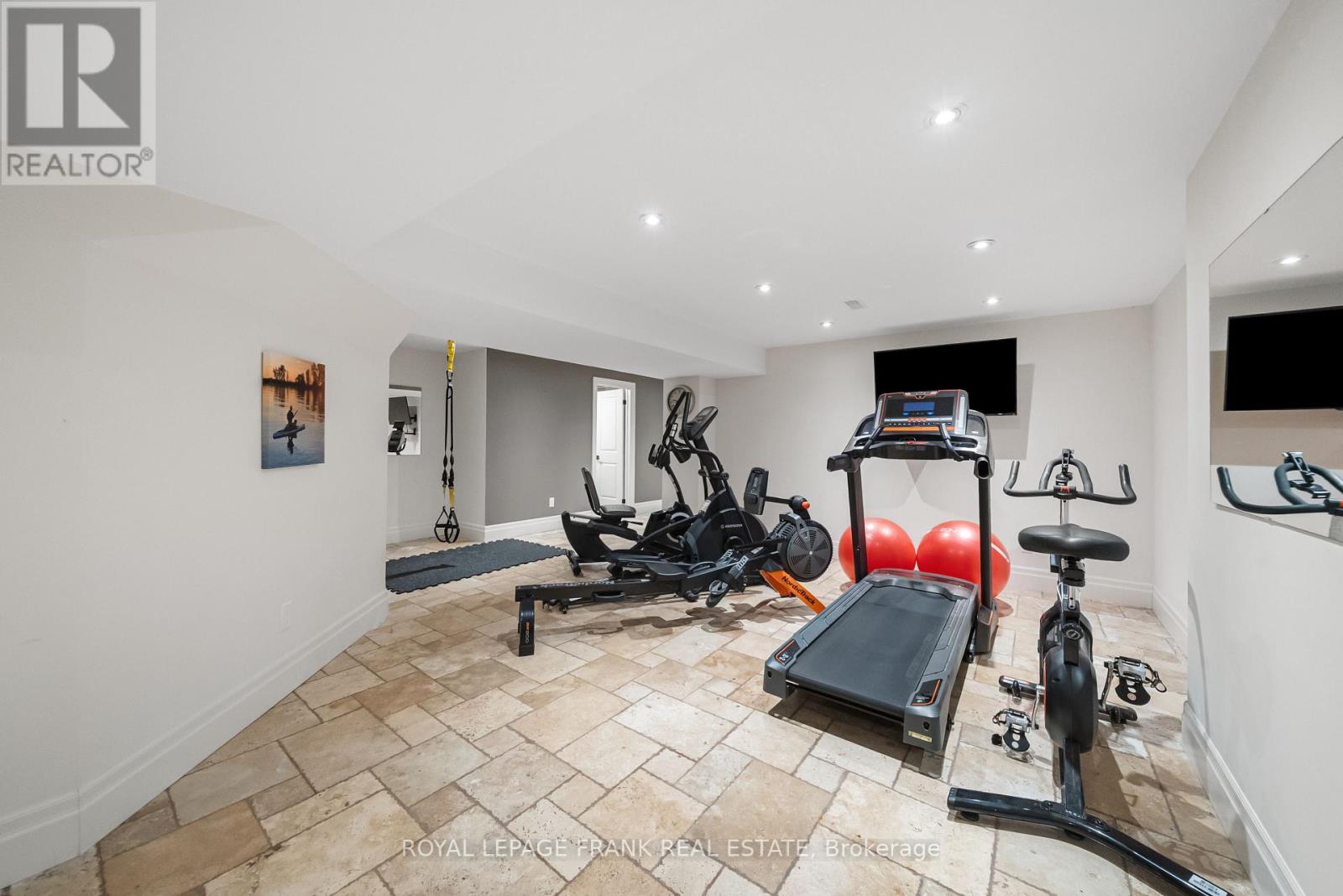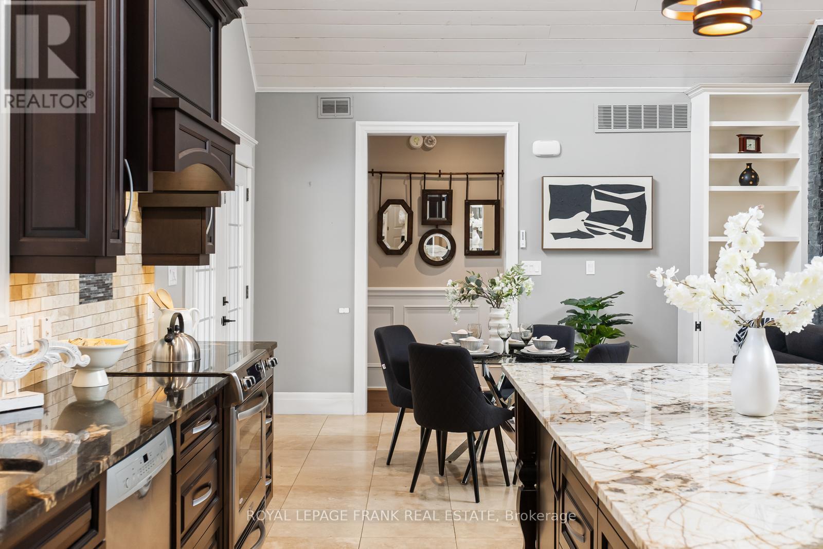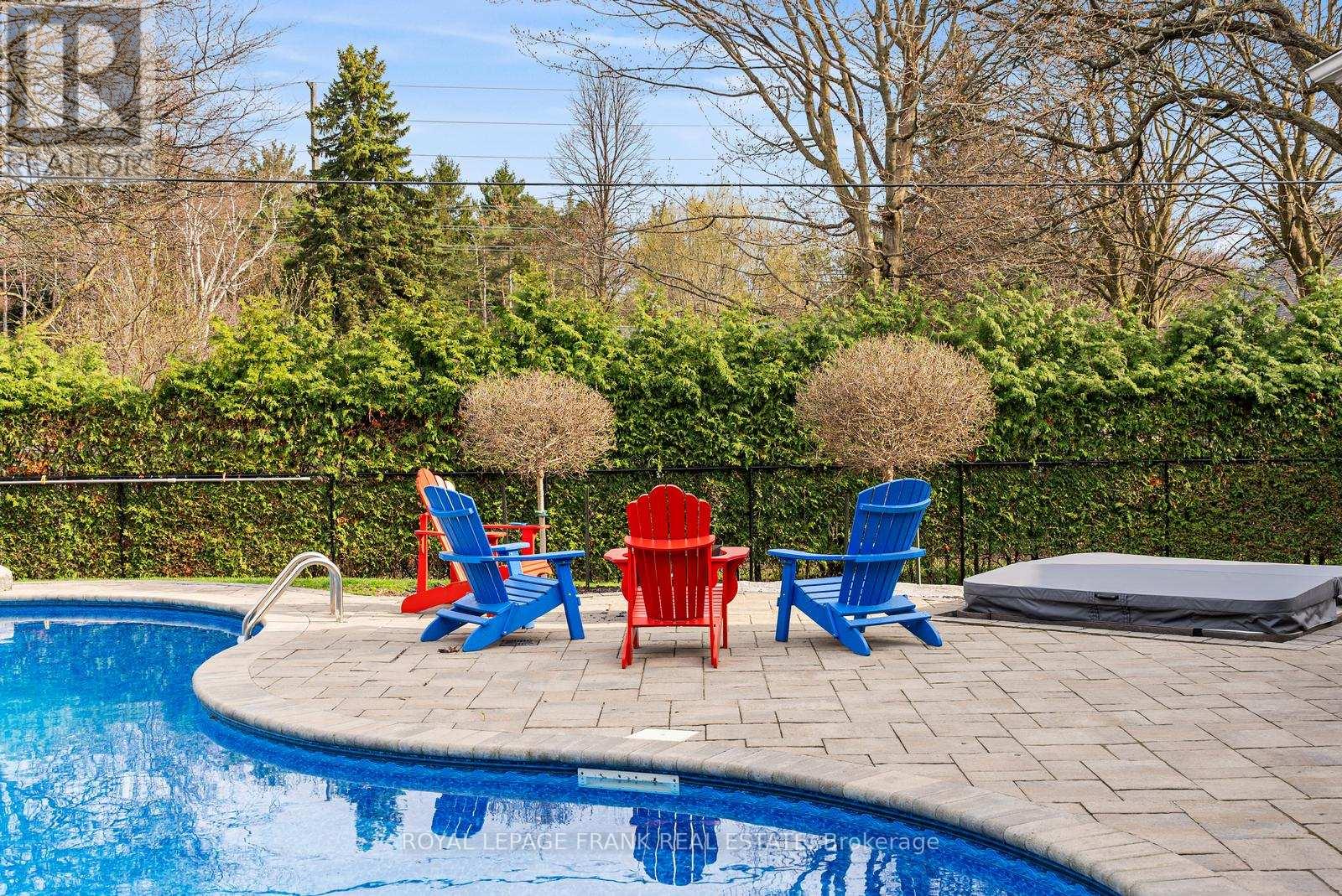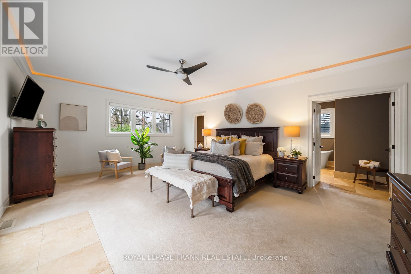 Welcome to an extraordinary, masterfully crafted bungalow offering over 5,300 square feet of impeccably refined living space. Set on an expansive 100' x 150' private estate lot, the residence is complemented by a resort-inspired backyard oasis, showcasing a lagoon-style heated saltwater pool and hot tub enveloped by professionally curated landscaping. A triple-wide, extended driveway accommodates up to 12 vehicles, in addition to a heated four-car garage featuring a convenient drive-through bay. Inside, a breathtaking great room unfolds beneath soaring 20-foot cathedral ceilings, framed by dramatic gable-end windows that bathe the space in natural light. The main level is defined by 9-foot ceilings, exquisite hardwood flooring, and expansive four-foot-wide hallways enhanced with elegant wainscoting. At the heart of the home lies a chef's kitchen of exceptional quality, appointed with fine solid wood cabinetry, soft-close detailing, and pristine quartz countertops anchored by a grand centre island. The primary suite serves as a serene private sanctuary, complete with dual walk-in closets and a spa-inspired ensuite featuring a granite walk-in shower, freestanding tub, heated floors, and a discreet, soundproof in-suite laundry. Three additional main-level bedrooms offer flexible accommodation for family and guests. The finished lower level extends the home's luxurious living space, presenting two generously sized bedrooms, a dedicated fitness studio, and an expansive family room centered around a striking 100" Napoleon fireplace. Above the garage, a spacious loft provides an ideal setting for a private office or creative studio. The professionally landscaped grounds, complete with a comprehensive irrigation system, ensures an effortlessly maintained outdoor environment. This exceptional estate is perfectly tailored for discerning homeowners who value both luxury, versatility and comfort. (id:43681)