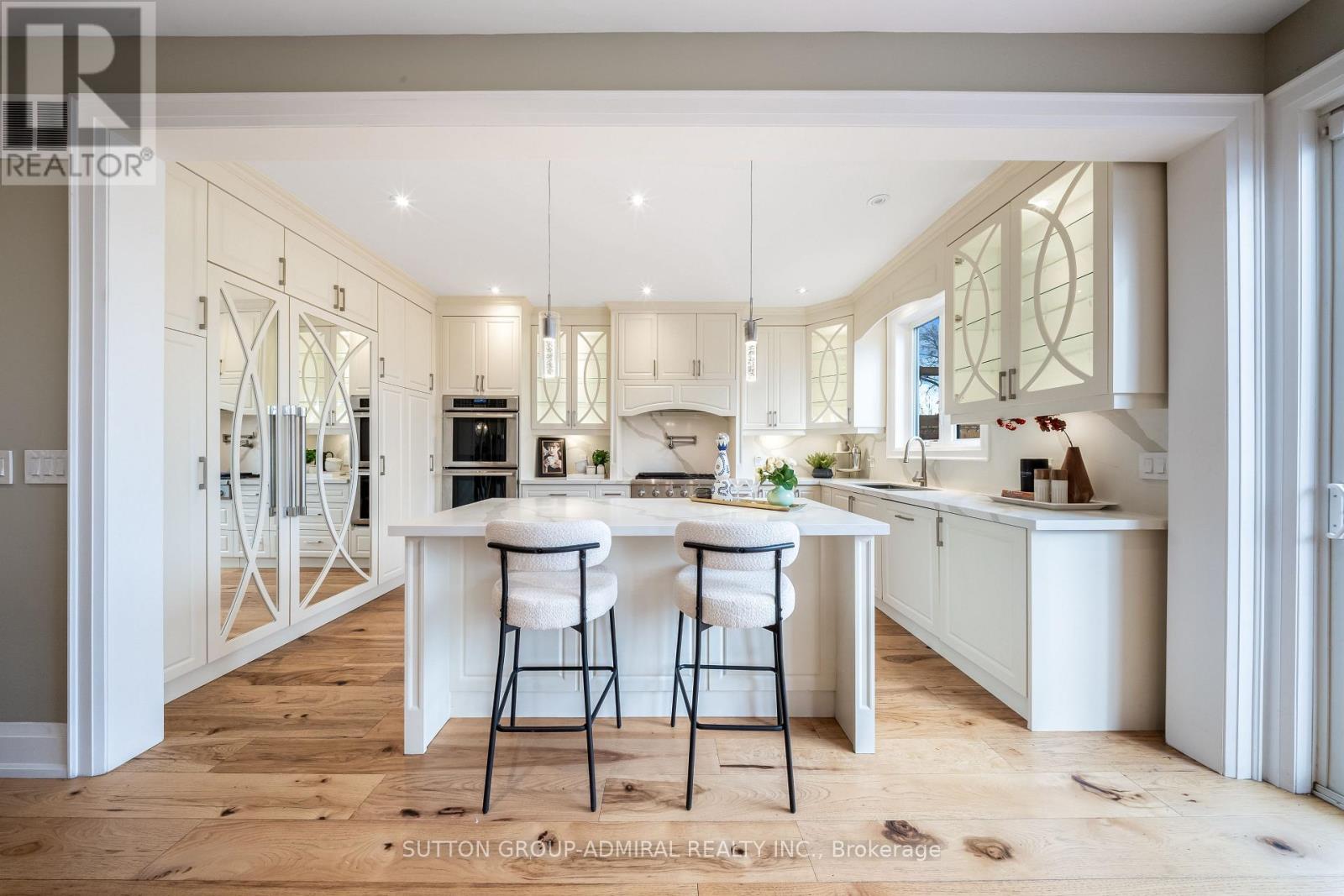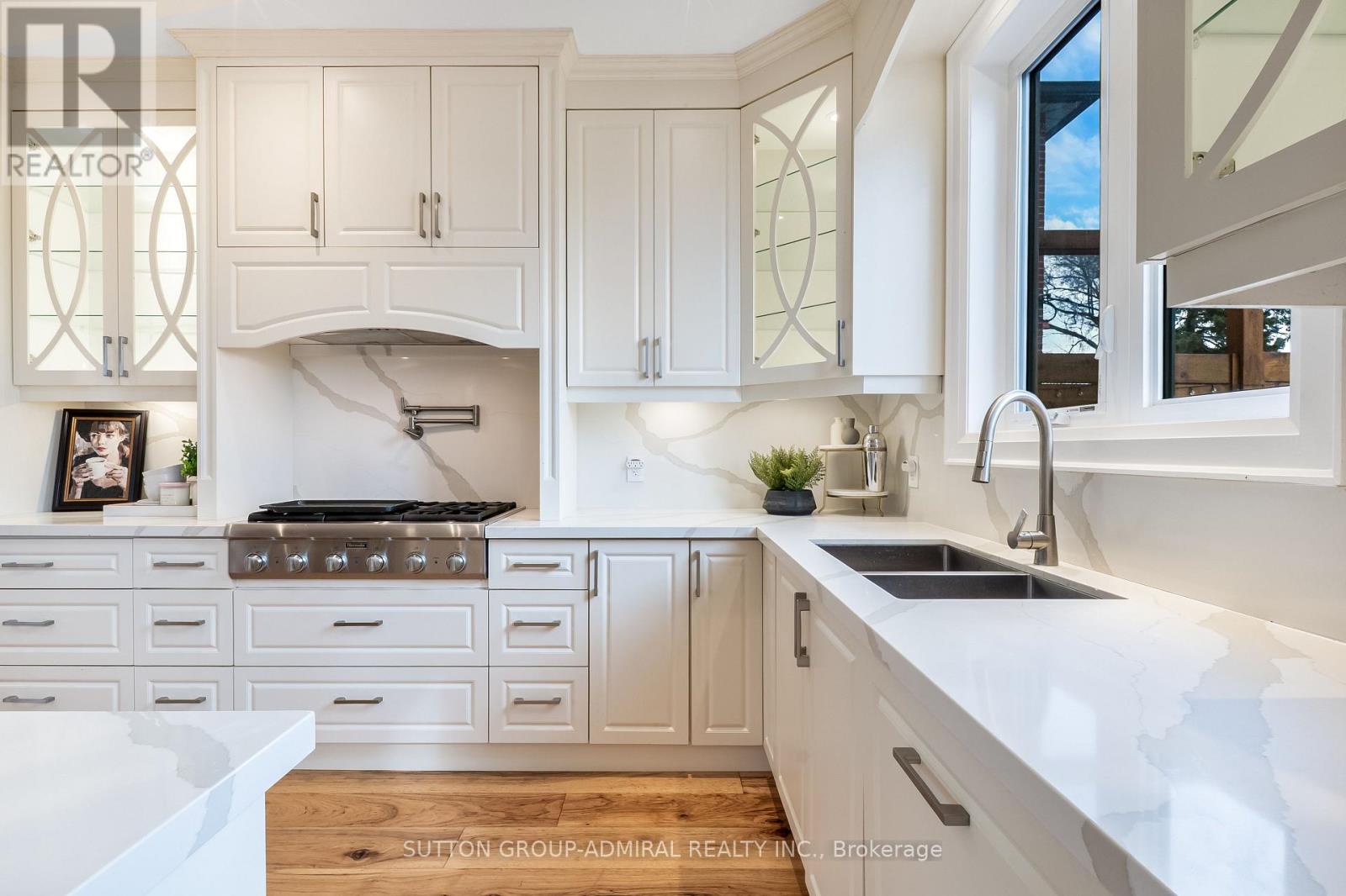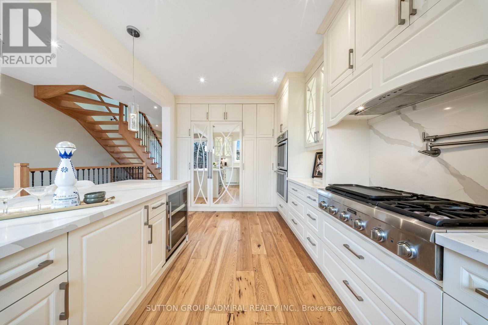 Nestled on a premium 35-foot lot siding onto green space, this newer custom-built home in South Etobicoke offers refined living in a family-friendly community close to all amenities. Boasting over 2,500 sq. ft. above grade, the bright open-concept layout features generous principal rooms, plentiful windows and skylights, a main floor office perfect for working from home (easily convertible to a 4th bedroom), a walk-out to an expansive deck overlooking the backyard, and a sprawling chef's kitchen showcasing a large centre island, top-of-the-line Thermador appliances, and designer cabinetry. Upstairs are three spacious bedrooms, each with its own ensuite, along with two large skylights. The primary suite includes a dressing room with built-closets and a 6-piece spa-like ensuite with dual rain showers, freestanding tub, heated floors, and large-format tiles. Second bedroom is large enough to function as a second primary. The walk-out basement features a self-contained in-law/nanny suite with separate entrance, kitchen, laundry, oversized windows, and radiant heating. Backyard is perfect for year-round entertaining and features a cabana (roughed-in for kitchen & bath), hot tub (included), and covered BBQ gazebo w/ gas hookup. Upgraded from top to bottom with luxurious finishes including wide-plank hardwood flooring, solid-core interior doors, built-in speakers, European fixtures, real wood trim, and 8" baseboards. A 10 kWh generator provides peace of mind during power outages. Parking for 4 cars. Amazing location just minutes from top-ranked schools, scenic parks and trails, Lake Ontario, recreation centres, shops, restaurants, and vibrant Long Branch Village. Commuting is easy via nearby streetcars, GO station, Gardiner Expressway, and Highway 427. Don't miss your chance to own a beautifully crafted home that checks every box in one of Etobicoke's most desirable neighbourhoods. (id:43681)