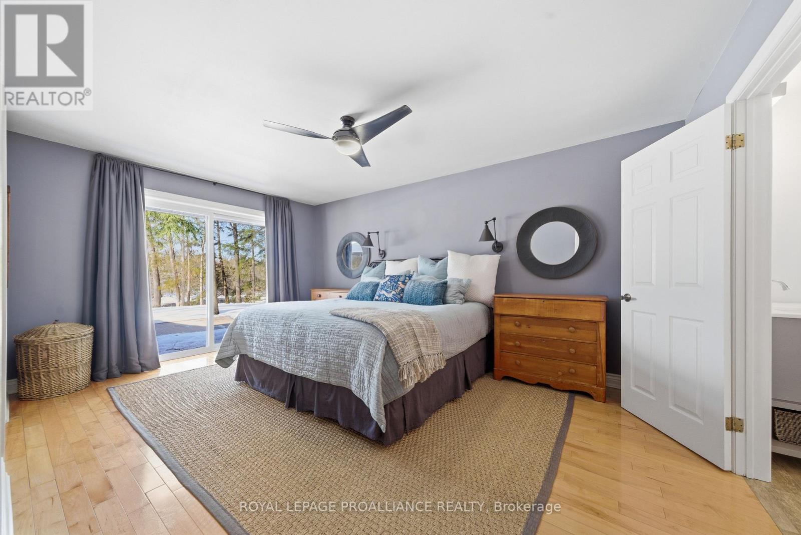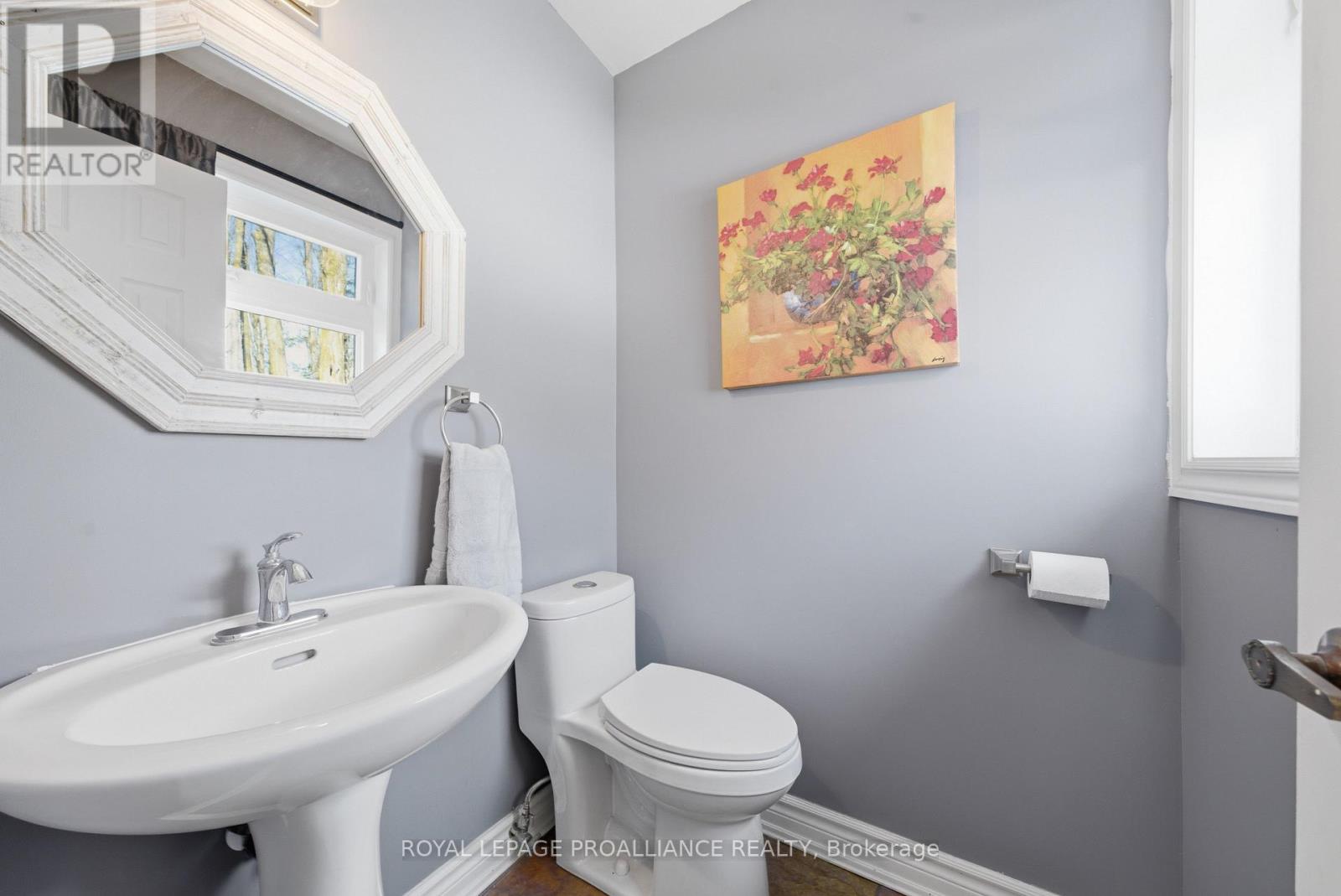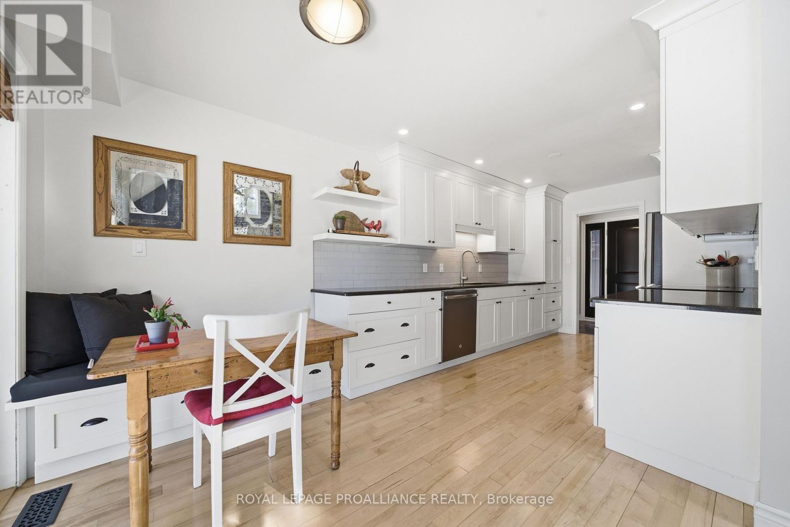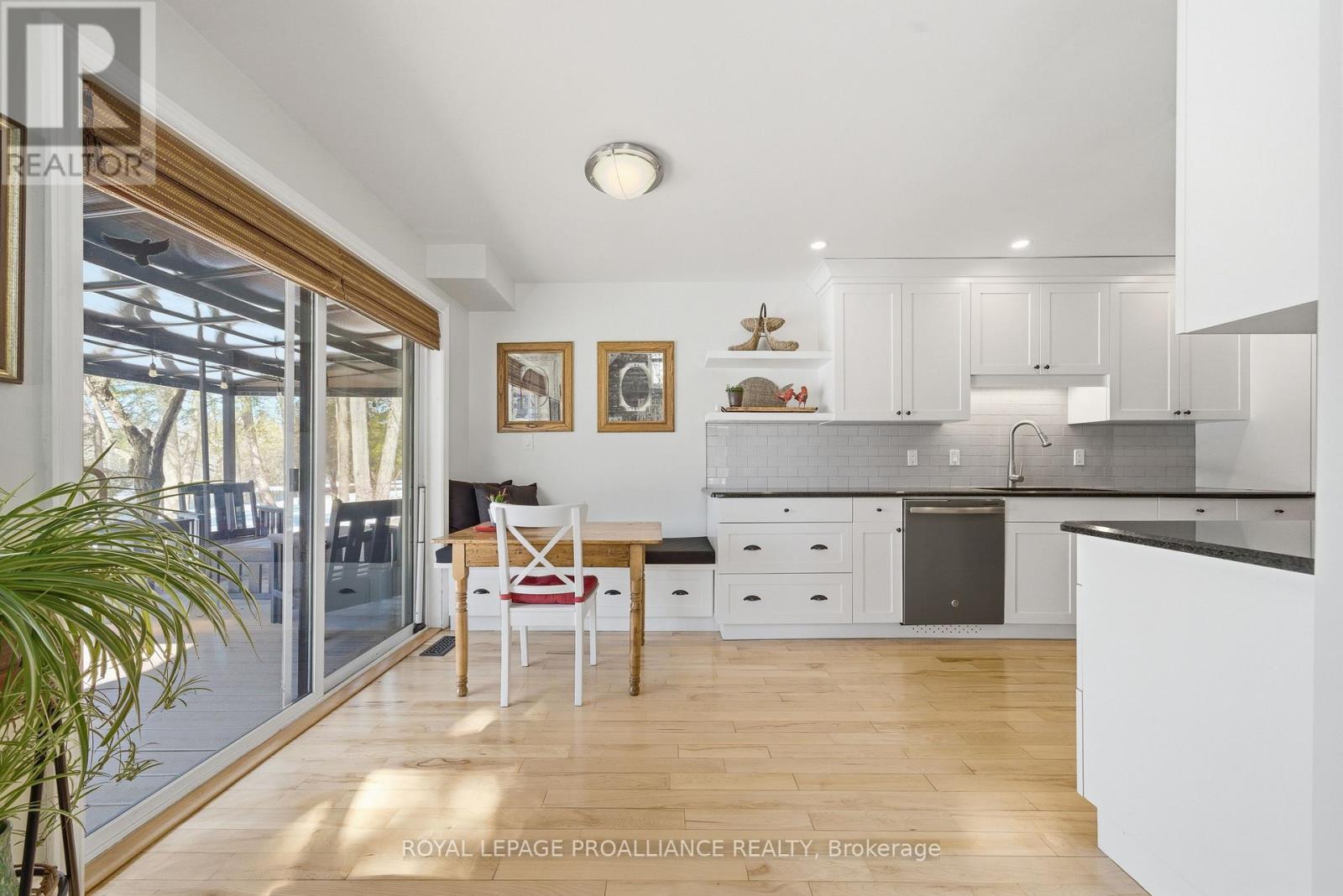 This unique and beautifully updated home offers stunning views of the Moira River and is filled with natural light from large windows throughout. Featuring an attached two-car garage, this property combines comfort and functionality in an exceptional waterfront setting. The main floor boasts a stunning living room with vaulted ceilings and a striking floor-to-ceiling brick fireplace that creates a warm and inviting focal point, flowing seamlessly into the dining area. The well-appointed kitchen offers ample storage, a large double sink, stainless steel appliances, granite countertops, and convenient walk-out access to the rear deck-perfect for entertaining with a river front backdrop. The primary bedroom is conveniently located on the main level and includes a walk-in closet, a luxurious 4-piece en-suite with soaker tub and tiled stand-up shower, and it's own walk-out to the rear deck. Main floor laundry and a 2-piece bathroom add to the convenience. Upstairs, a generous sitting room overlooks the living space below and features a private balcony with river views, along with an additional bedroom and a 5-piece bathroom. The fully finished basement provides incredible flexibility with a recreation room complete with a stove fireplace, a 2-piece bathroom, three additional flex spaces ideal for a home office, gym, hobbies or guest bedroom, walk-up access to the garage, and abundant storage throughout. (id:43681)
