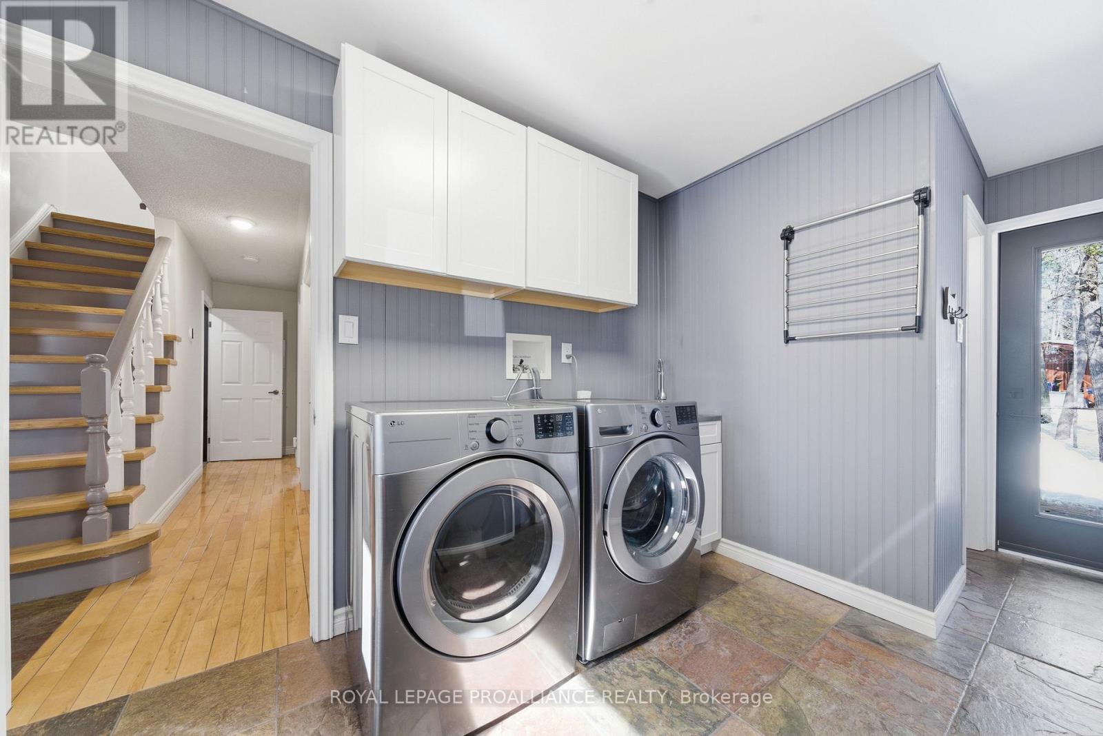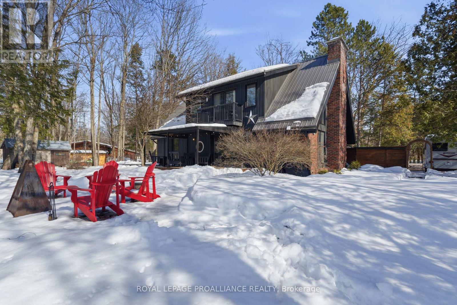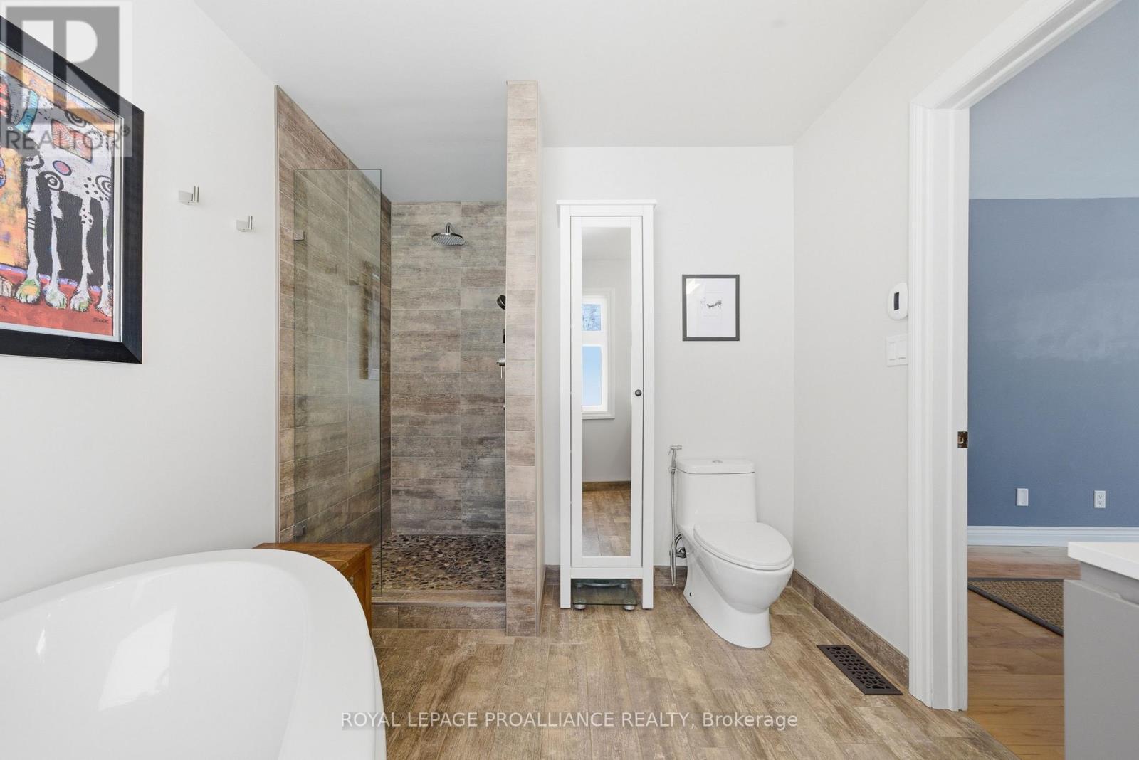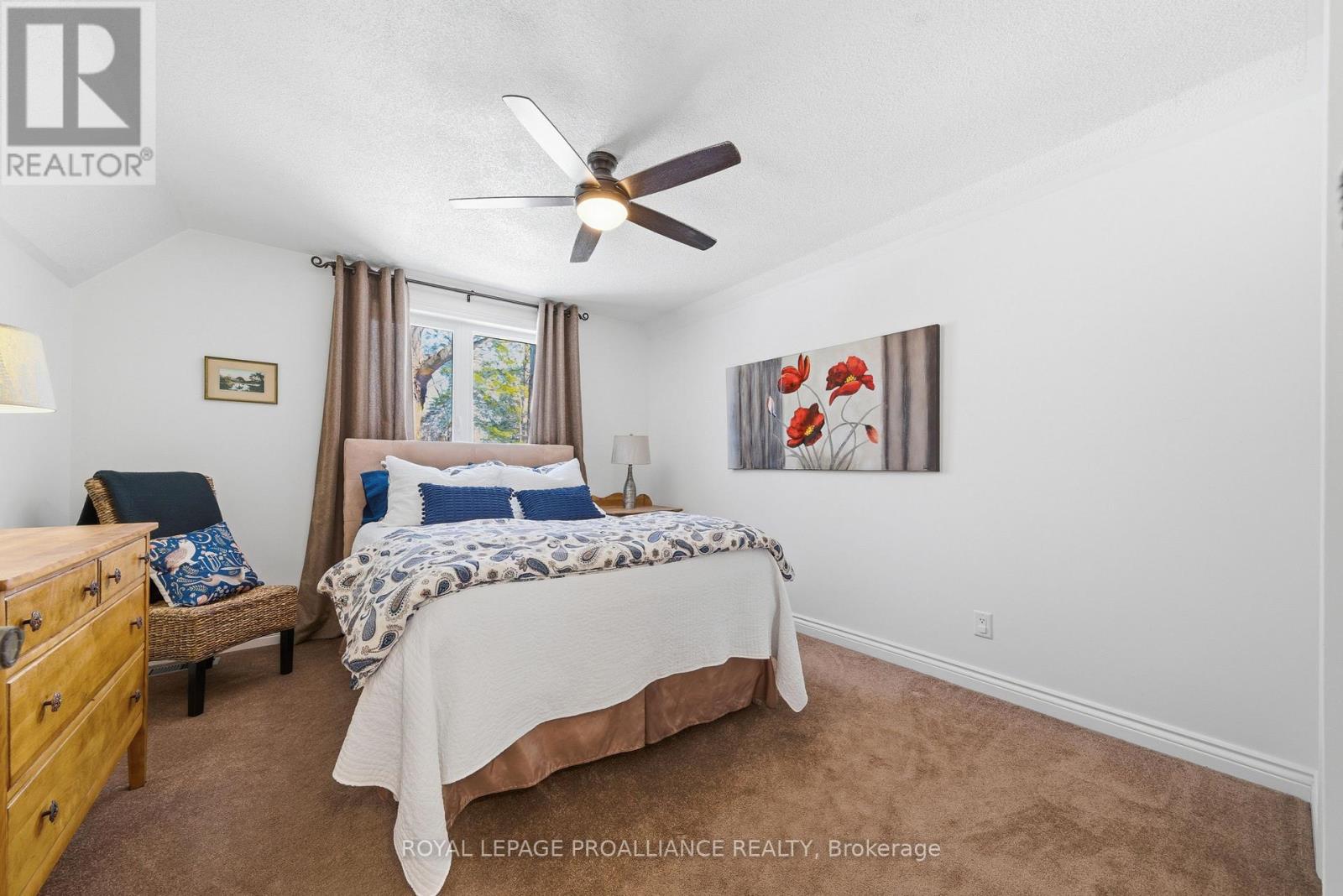 This unique and beautifully updated home offers stunning views of the Moira River and is filled with natural light from large windows throughout. Featuring an attached two-car garage, this property combines comfort and functionality in an exceptional waterfront setting. The main floor boasts a stunning living room with vaulted ceilings and a striking floor-to-ceiling brick fireplace that creates a warm and inviting focal point, flowing seamlessly into the dining area. The well-appointed kitchen offers ample storage, a large double sink, stainless steel appliances, granite countertops, and convenient walk-out access to the rear deck-perfect for entertaining with a river front backdrop. The primary bedroom is conveniently located on the main level and includes a walk-in closet, a luxurious 4-piece en-suite with soaker tub and tiled stand-up shower, and it's own walk-out to the rear deck. Main floor laundry and a 2-piece bathroom add to the convenience. Upstairs, a generous sitting room overlooks the living space below and features a private balcony with river views, along with an additional bedroom and a 5-piece bathroom. The fully finished basement provides incredible flexibility with a recreation room complete with a stove fireplace, a 2-piece bathroom, three additional flex spaces ideal for a home office, gym, hobbies or guest bedroom, walk-up access to the garage, and abundant storage throughout. (id:43681)