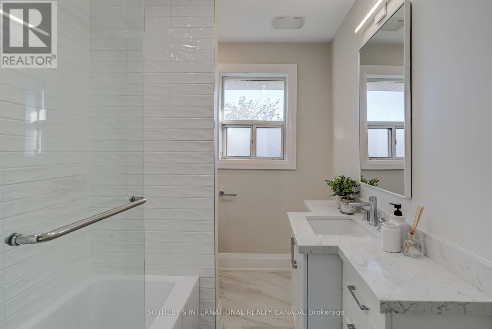 This home has been happily owned by the same family since 1956. Now experience the perfect blend of modern elegance and functional design in this fully renovated 3+1 bedroom home, complete with a self-contained lower-level suite and a rare double car garage. Every inch of this home has been thoughtfully reimagined to deliver comfort, style, and versatility for today's discerning buyer. Step inside and be greeted by a bright, open-concept layout adorned with wide-plank hardwood flooring, custom trim and doors, and designer lighting throughout. The stunning renovated kitchen showcases Caesarstone countertops, updated cabinetry, and new stainless-steel appliances - an ideal space for cooking, entertaining, and gathering with family. The lower level, accessible through a separate side entrance, features a fully equipped second kitchen, a spacious living area, and a versatile layout that provides for private bedroom or office - perfect for in-laws, a nanny suite, or an income generating apartment. The home's thoughtful updates extend to every detail, from the modernized bathrooms with Caesarstone vanities to the beautifully finished exterior and double driveway. Simply move in and enjoy peace of mind knowing all the hard work has been done. Nestled on a quiet, family-friendly street with convenient access to top-rated schools, shopping, parks, and transit, this exceptional home offers the best of both worlds - a peaceful setting with every urban convenience just minutes away. Prime Toronto location close to all amenities. This is an opportunity to own a beautifully finished home with incredible versatility and investment potential. (id:43681)