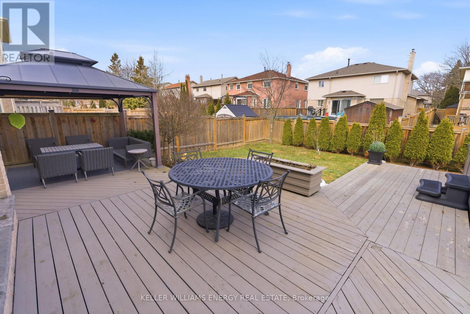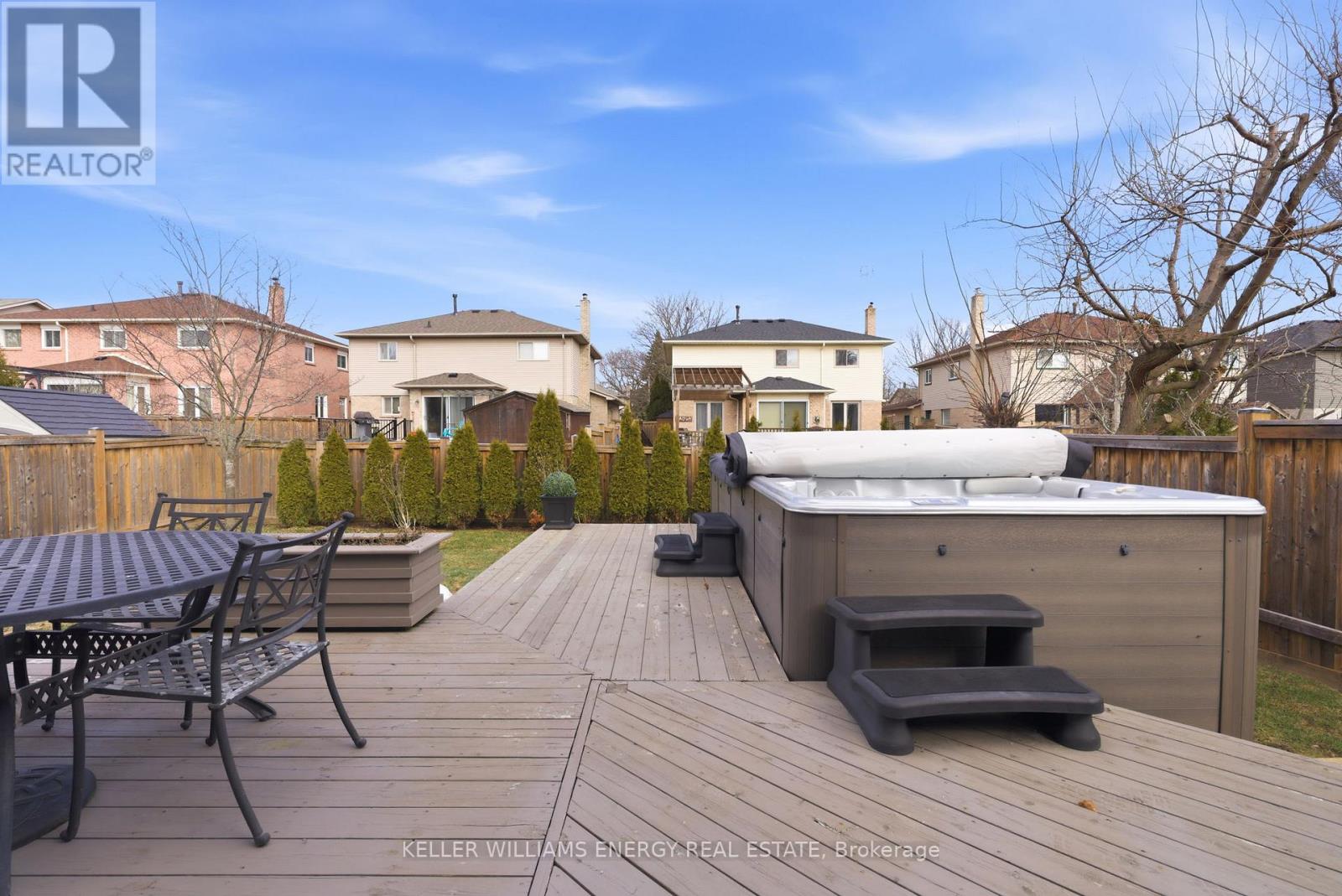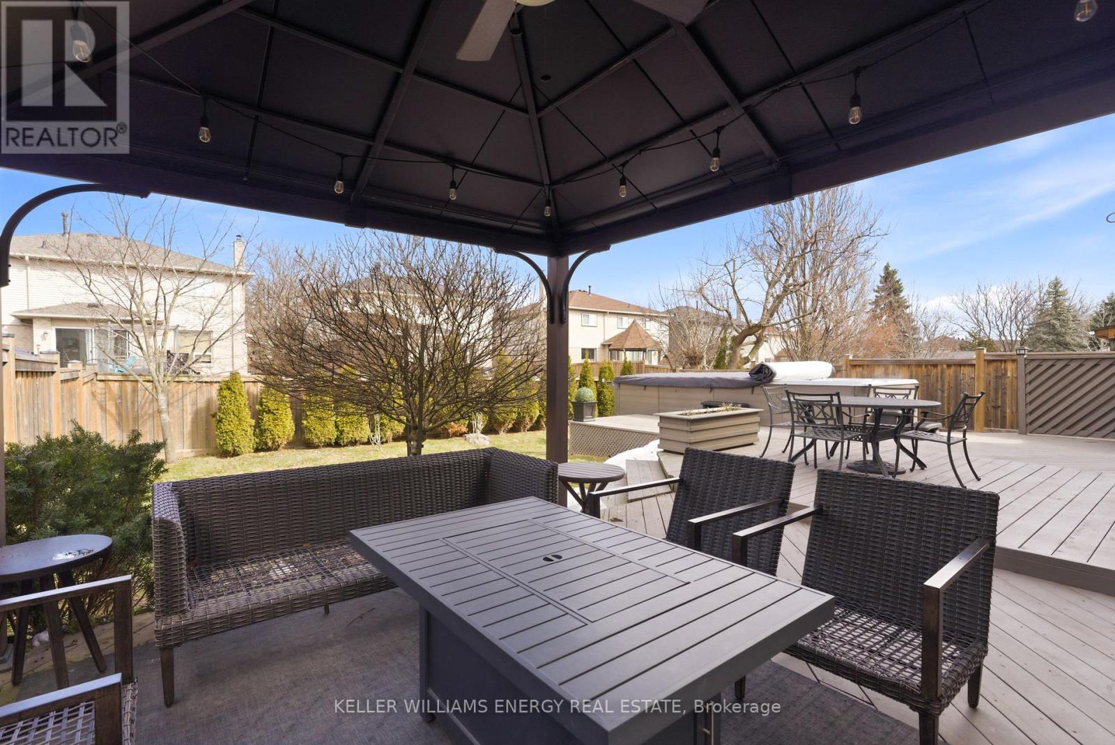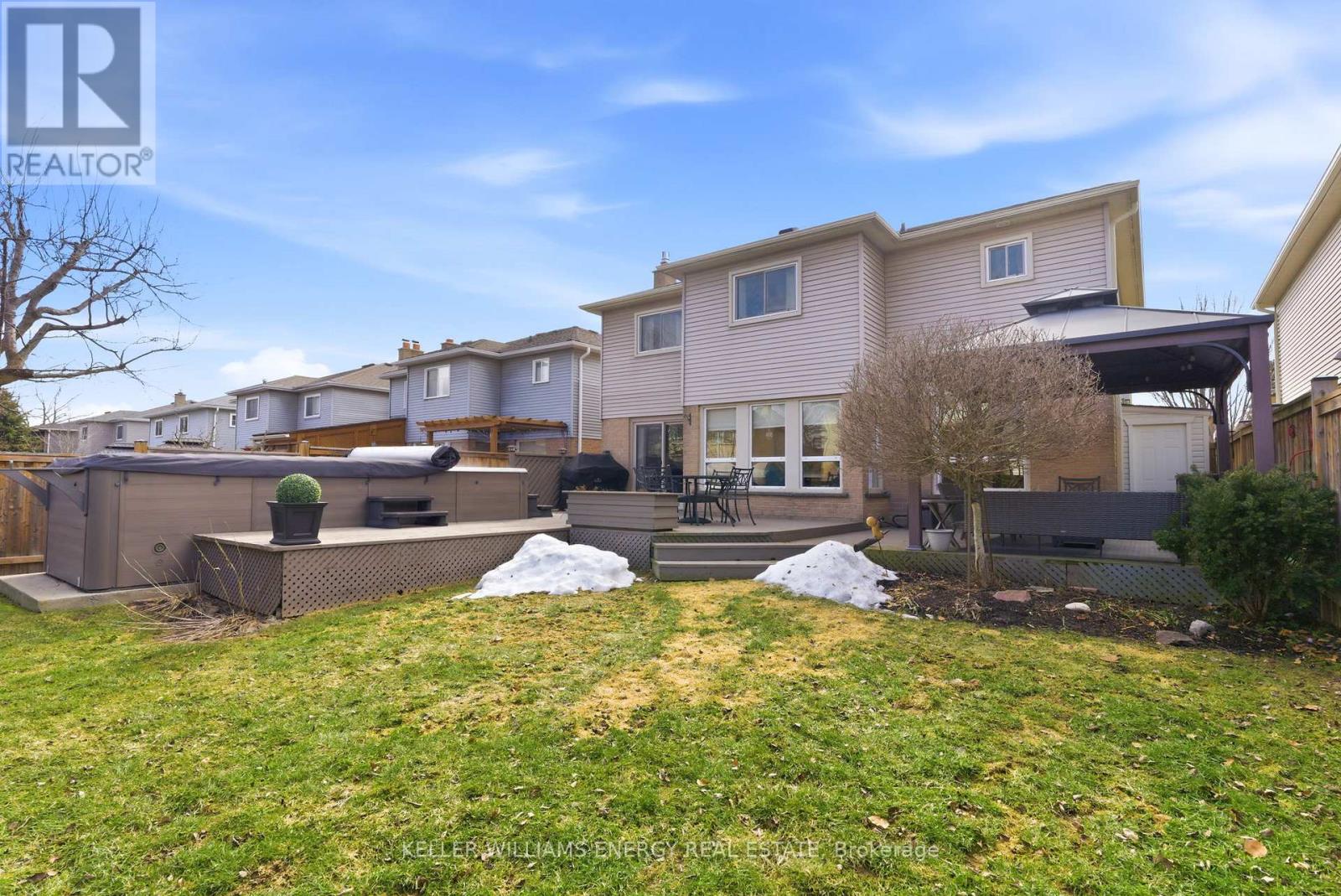 Welcome to this modern 4-bedroom, 4-bathroom detached home in the highly sought-after Fallingbrook community of Whitby, with over 3000 sq. ft. of living space. Boasting true pride of ownership, this residence has been extensively upgraded to offer a perfect blend of luxury and comfort. The main floor features full renovations, including new LED pot lights and stunning engineered hardwood flooring backed by a 50-year warranty. At the heart of the home is a renovated chef's kitchen equipped with new cabinets, a wine fridge, and high-end Kitchen Aid Pro appliances. The living and dining rooms offer formal entertaining spaces, while the family room features a new fireplace with a marble mantle and a walk-out to a beautiful deck. Upstairs, you will find four spacious bedrooms. The primary retreat is a true standout, featuring his and hers closets and a fully renovated ensuite bathroom complete with a glass walk-in shower, dual sinks, and a soaker tub. Step outside to your private outdoor oasis, which includes a 19-foot Jacuzzi swim spa with deck access, a backyard gazebo, and fresh landscaping in both the front & backyards. This home is perfectly positioned near a variety of local amenities, including excellent schools, the public library, and premium shopping centers. Enjoy the convenience of nearby parks and recreation facilities, all within a welcoming and established neighborhood. This home is truly turn-key. Book your showing today! (id:43681)