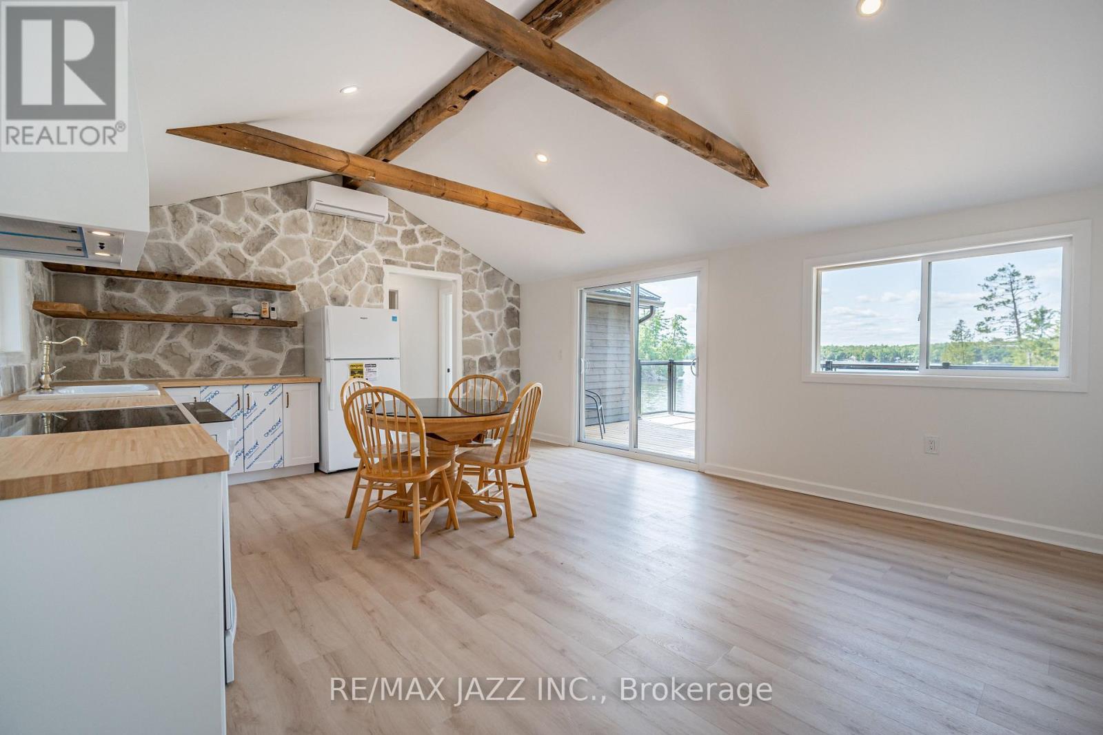 Newly renovated within last 12 months; never used or slept in since, floor to ceiling. Situated in protected sandy bottom, bay unobstructed view of the lake, beautiful western exposure is located on the east side of beautiful Cordova Lake on 4 season private road. The building is definitely worth taking a look at! All new wiring and electrical panel, all new plumbing and fixtures, all new windows, doors, and siding. Metal roof, kitchen and 4 pc bath, super efficient split heat and cool unit, new 12 and 19 ft deck, extensive rock work front and rear... Entire building has high density foam insulation under the floors in the walls and the ceiling, it's just like a thermos to heat. The waterfront has a firm sand base. Newer shore dock 12 by 12 ft. plus 5 by 25 ft aluminum dock. The lake is almost 18 inches lower than normal. You will be able to see that when you look at the neighboring dock setup. The dock is not in, but everything is there. Check out the cool video of the lake. All renovations approved and final inspection by the municipality on file. (id:43681)