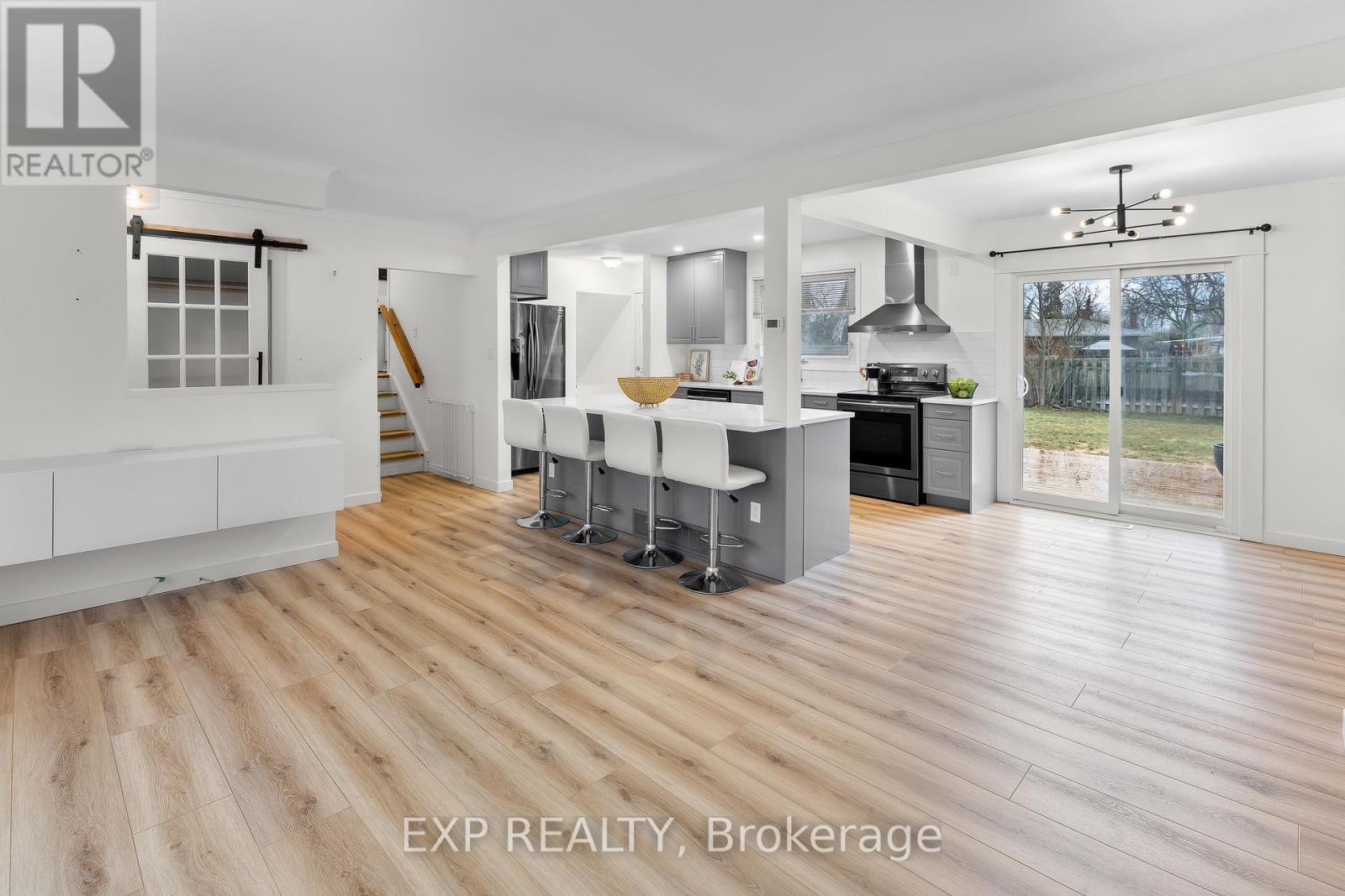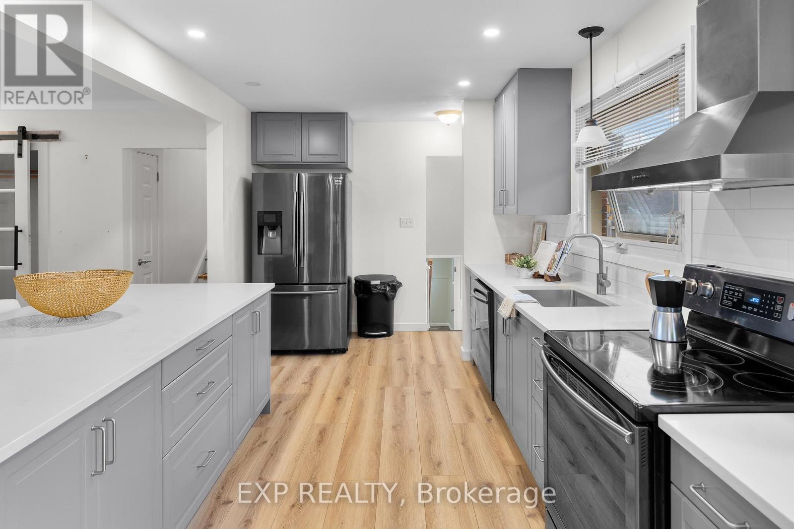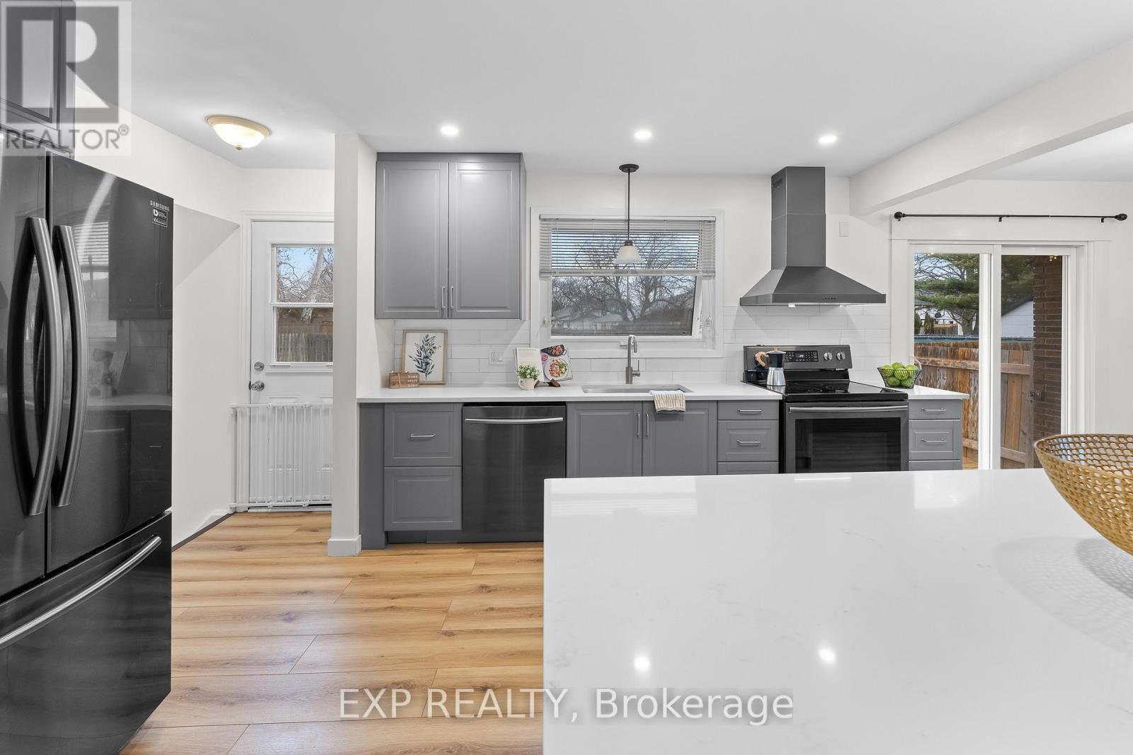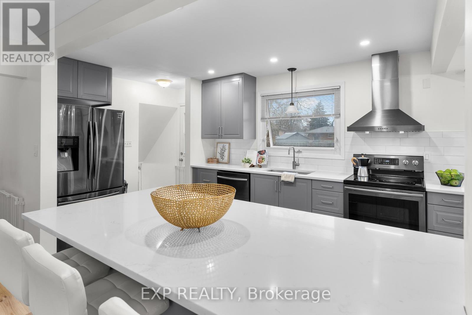 Located in north St. Catharines, this detached side split offers three bedrooms, 1.5 bathrooms, a finished basement, additional office or potential fourth bedroom, and parking for four vehicles on a private driveway. The home sits on a 65 x 110 ft lot in a quiet residential neighbourhood close to parks, schools, shopping and everyday amenities. The main floor features an open concept kitchen and living area renovated approximately two years ago. The kitchen includes quartz countertops, grey cabinetry, subway tile backsplash, stainless steel appliances and a centre island with seating. Large front windows provide natural light and sliding doors off the kitchen lead to the backyard. The upper level includes three bedrooms and a full bathroom. The lower level provides a finished recreation or family room, while the sub basement includes an office that may also function as a fourth bedroom depending on use. The backyard includes a deck completed in 2025 and a lawn and garden sprinkler system installed approximately six years ago. The property provides space for outdoor use along with a private driveway that accommodates up to four vehicles. Recent updates include furnace replacement approximately seven years ago, insulation upgraded at the same time, finished basement completed approximately five years ago, kitchen renovation completed approximately two years ago and kitchen appliances replaced within the past three to four years. Convenient access to parks, schools, shopping, Lake Ontario areas and major routes including the QEW. (id:43681)