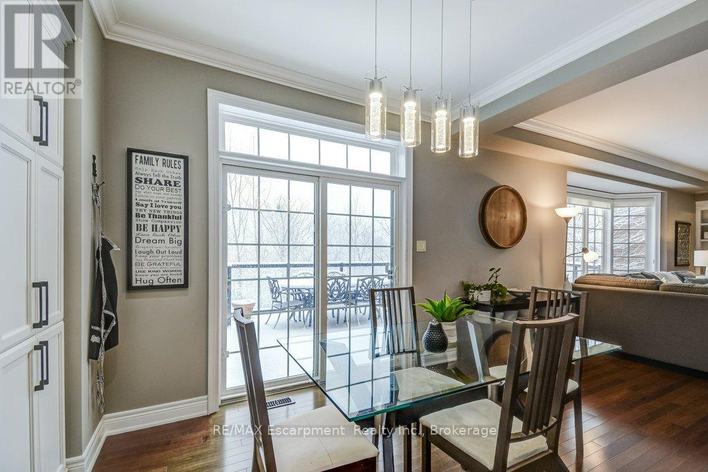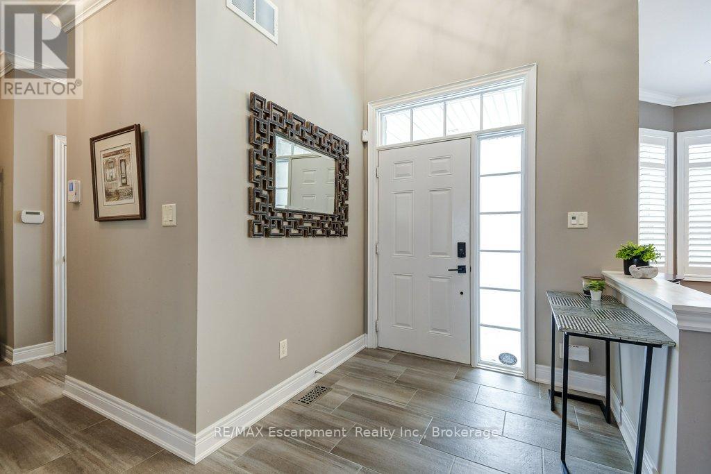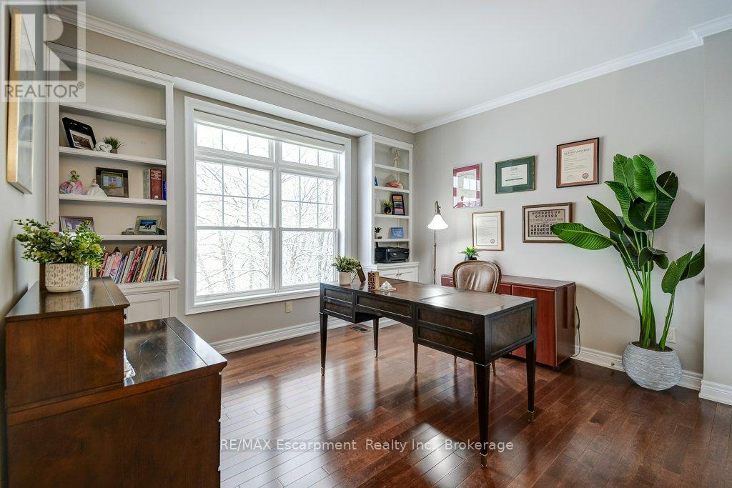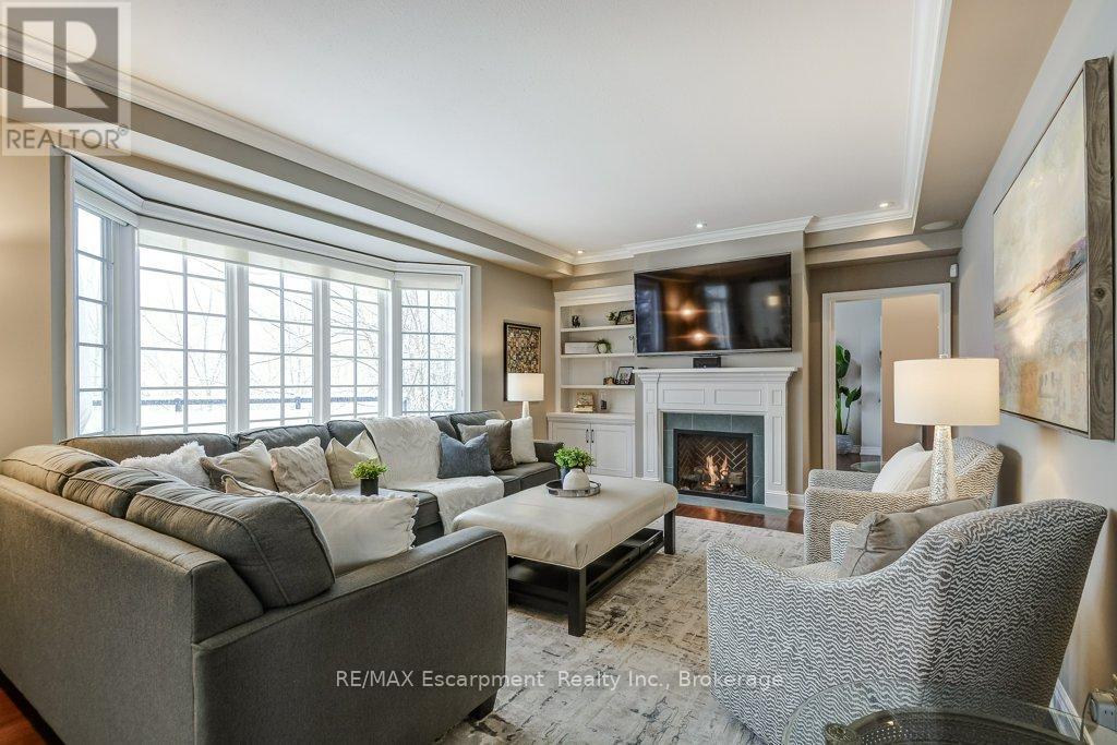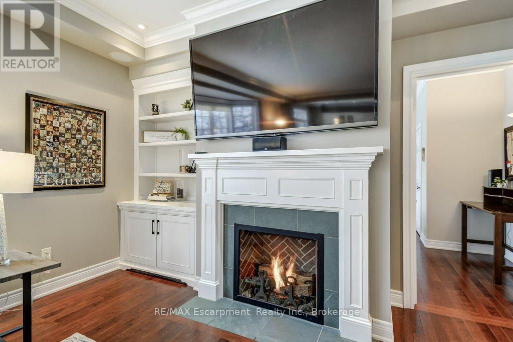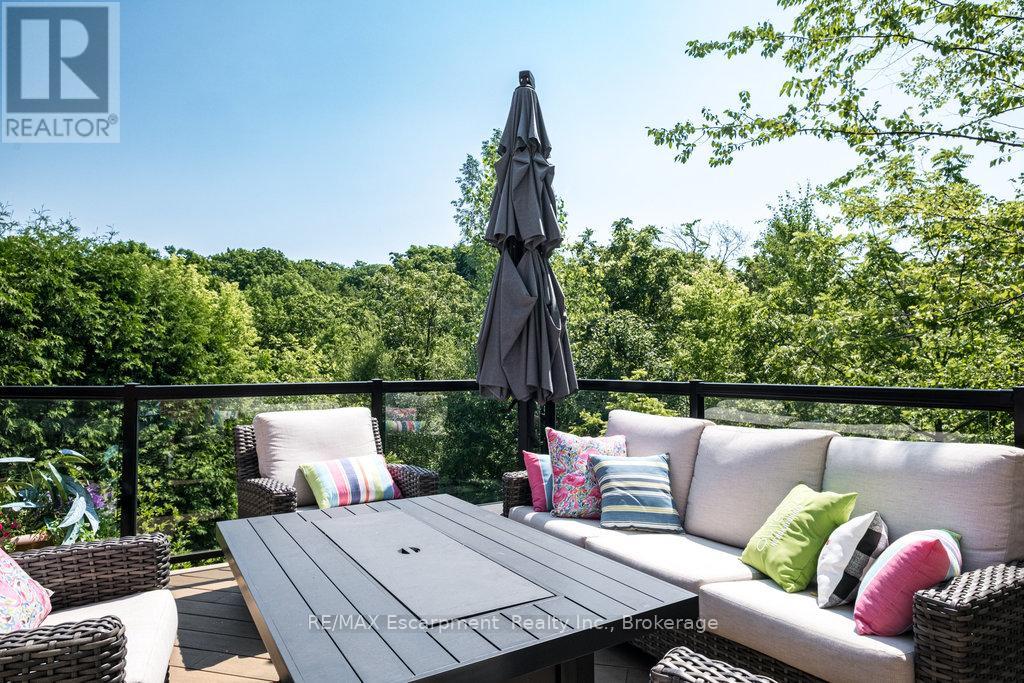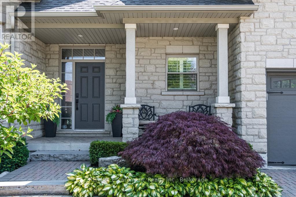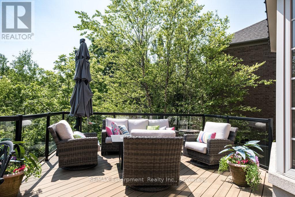 Executive living in prestigious Ancaster. Beautifully renovated 2-storey home on a quiet private road backing onto protected Conservation lands with no rear neighbours, offering exceptional privacy, tranquil treed views, and a true close-up-and-go lifestyle. Low monthly fees include snow removal (driveway & walkways), lawn cutting, fertilization, irrigation system open/close, and some seasonal garden planting. Designed with future living in mind with ELEVATOR ROUGH-IN, soaring ceilings, hardwood floors, and a bright open layout. The updated kitchen flows into the great room with gas fireplace and expansive windows overlooking the peaceful natural setting. Main floor also features a powder room, an office and formal dining room. Walk out to a 370 sq ft maintenance-free composite deck with glass railings - the perfect place to relax and enjoy the uninterrupted Conservation backdrop. Upper level offers a spacious primary retreat with custom walk-in closet and spa-inspired 5-piece ensuite, plus two additional bedrooms, updated bath, and convenient laundry. The finished walk-out basement provides exceptional additional living space with gas fireplace, 3-piece bath, built-in workstation, exercise area, second laundry, and abundant storage. Covered deck and large patio extend the outdoor living while maintaining total backyard privacy. Steps to Conservation trails and minutes to Hamilton Golf & Country Club, dining, shopping, the new Ancaster Arts Centre, and highway access. Meticulously maintained and move-in ready. (id:43681)