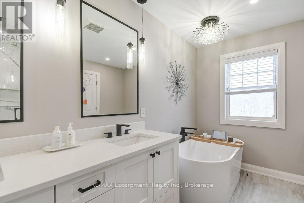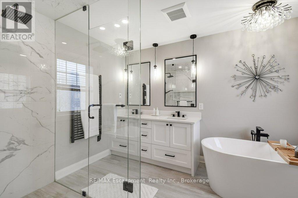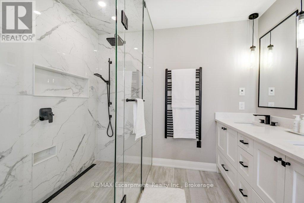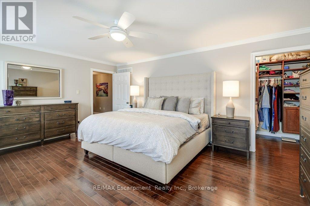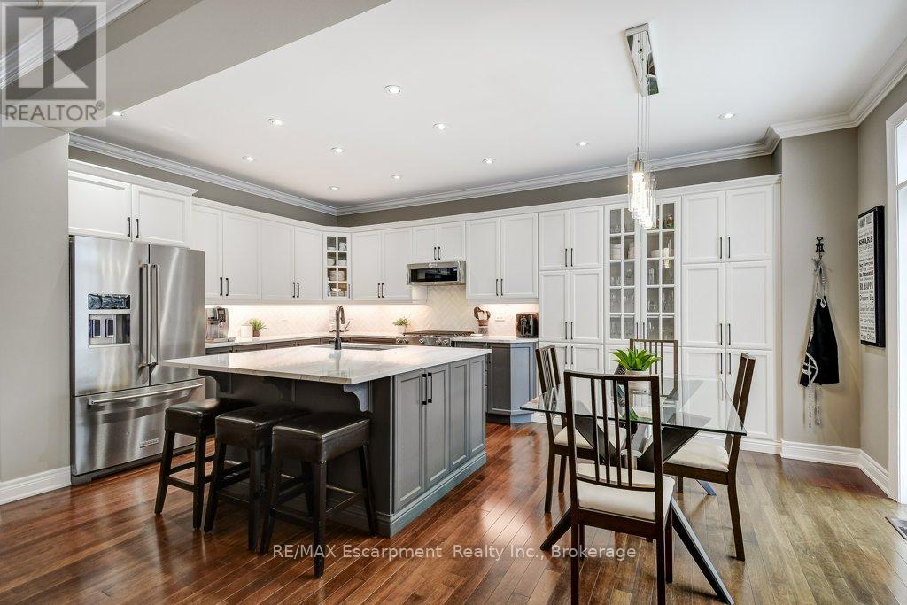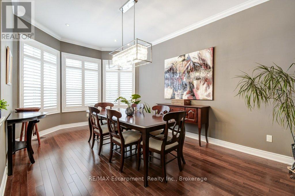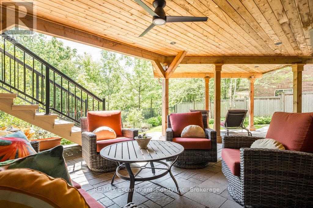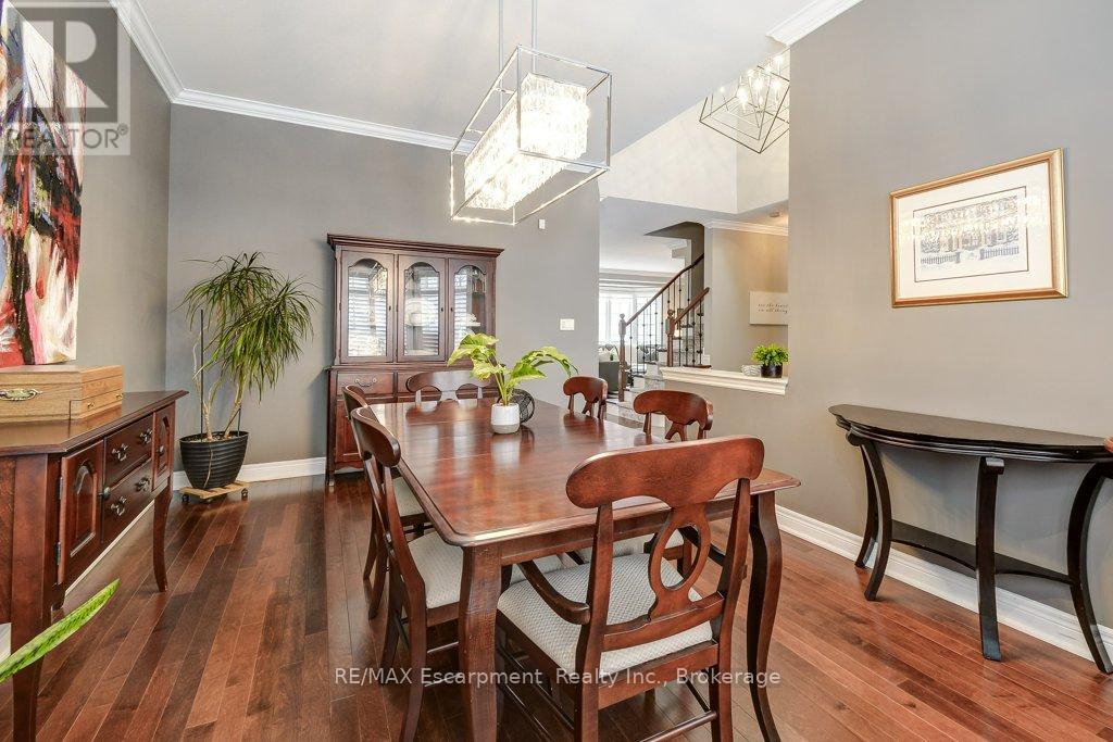 Executive living in prestigious Ancaster. Beautifully renovated 2-storey home on a quiet private road backing onto protected Conservation lands with no rear neighbours, offering exceptional privacy, tranquil treed views, and a true close-up-and-go lifestyle. Low monthly fees include snow removal (driveway & walkways), lawn cutting, fertilization, irrigation system open/close, and some seasonal garden planting. Designed with future living in mind with ELEVATOR ROUGH-IN, soaring ceilings, hardwood floors, and a bright open layout. The updated kitchen flows into the great room with gas fireplace and expansive windows overlooking the peaceful natural setting. Main floor also features a powder room, an office and formal dining room. Walk out to a 370 sq ft maintenance-free composite deck with glass railings - the perfect place to relax and enjoy the uninterrupted Conservation backdrop. Upper level offers a spacious primary retreat with custom walk-in closet and spa-inspired 5-piece ensuite, plus two additional bedrooms, updated bath, and convenient laundry. The finished walk-out basement provides exceptional additional living space with gas fireplace, 3-piece bath, built-in workstation, exercise area, second laundry, and abundant storage. Covered deck and large patio extend the outdoor living while maintaining total backyard privacy. Steps to Conservation trails and minutes to Hamilton Golf & Country Club, dining, shopping, the new Ancaster Arts Centre, and highway access. Meticulously maintained and move-in ready. (id:43681)
