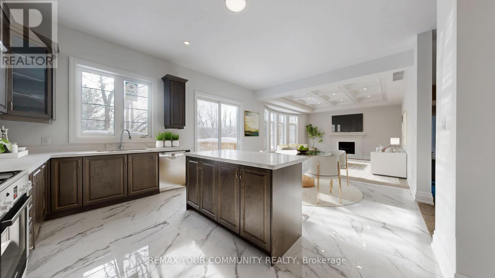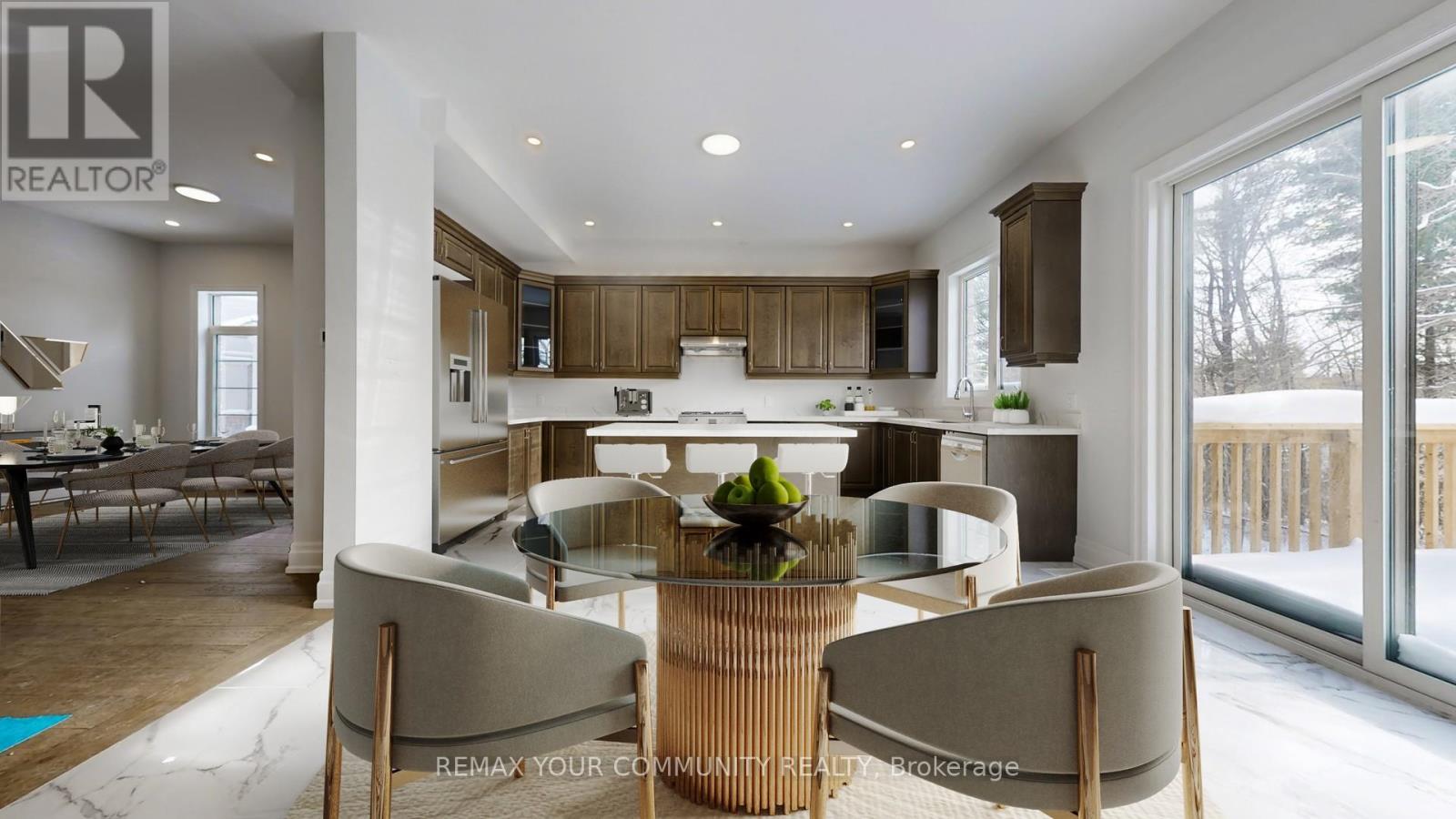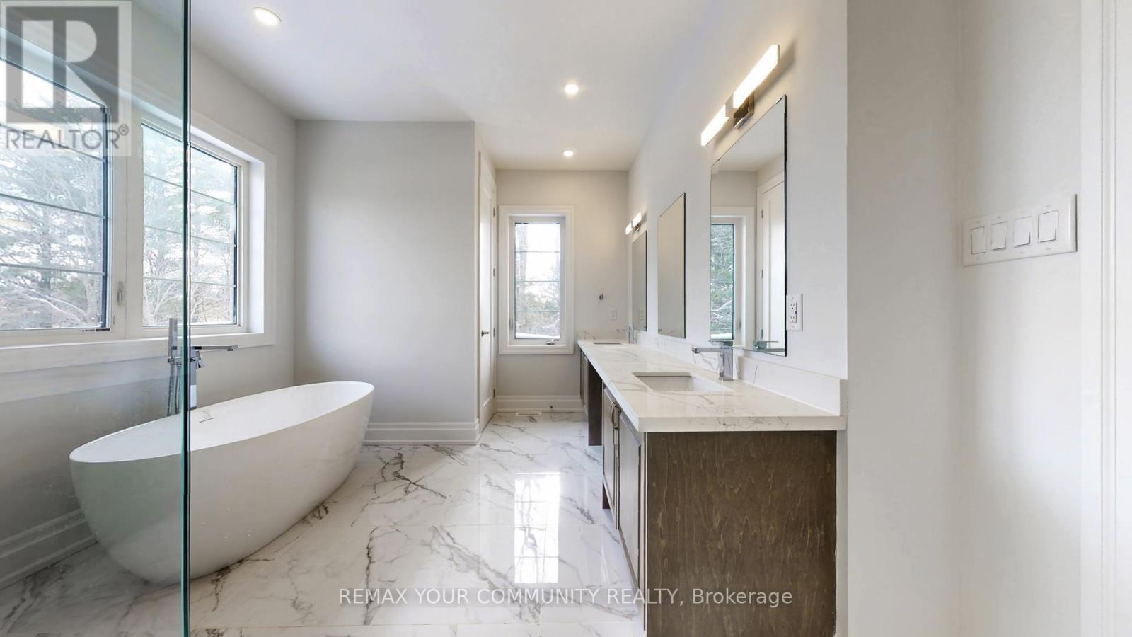 Stunning Never lived-In Executive Home on a 66 ft Wide Pie-Shaped RAVINE LOT with above grade WALK-OUT BASEMENT with THREE CAR GARAGE!. Nestled in prestigious Community of Woodstock, overlooking the panoramic Conservation Area. Loaded in upgrades ~ Impressive stone and stucco exterior, 10 ft high ceilings on main and 9 ft on upper floor. Main floor offers private library, open concept Great room with waffled ceilings, gas fireplace, overlooking the panoramic peaceful views, kitchen with taller cabinets & centre island with power outlet, 7 " wide engineered plank hardwood floors, 7.5" tall baseboard trims, solid tall doors, 2 ft x 2 ft porcelain tiles, quartz counter tops, smooth ceilings and pot lights throughout both levels!! The upper level offers 5 spacious bedrooms and 4 full baths. Primary bedroom with huge walk-in closet and spa-like ensuite with soaker tub and glass shower. This substantially upgraded home is enrolled in the Tarion New Home Warranty Program ~ Must See! (id:43681)