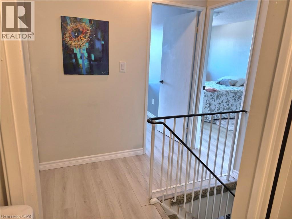 Welcome to a well-maintained renovated two level condo with 3-bedrooms, 1.5 bath in the north end of Brantford. This condo offers approximately 1199 sq.ft. of living space. Renovated in 2024/2025 including new electrian panel/wiring, high quality 12mm laminate flooring throughout, numerous pot lights, high baseboards, quality appliances, reno'd baths. The main level features a sun filled living room with pot lights & walk-out to balcony, inviting dining room, an updated white kitchen with high quality stainless steel appliances, pot lights, upgraded sink & faucet & a main floor bedroom that can be used as den/office & reno'd 2pc bath & closet. The upper level comes complete with two spacious bedrooms, the reno'd 4pc bath, 2nd balcony & the in-suite laundry for added convenience. The large master bedroom offers wall to wall windows, walk in closet & walk-in storage room. Condo fees include heat, hydro, water, building insurance, exterior maintenance, landscaping, recycling & 2 parking spaces - 1 underground & 1 above ground. Building amenities include an exercise room, party room, library/extra laundry area. Just minutes to Highway 403 & numerous shopping centres, restaurants, schools, public transit & walk to Gretzky Community Sports Centre. Lock box (gold ribbon) with keys to front door & unit are on the back of left bench seat at the front entrance of the building. (id:43681)