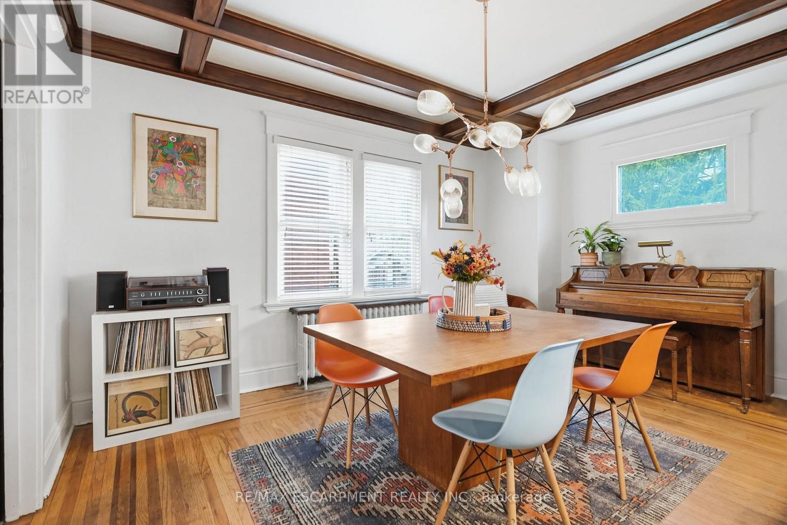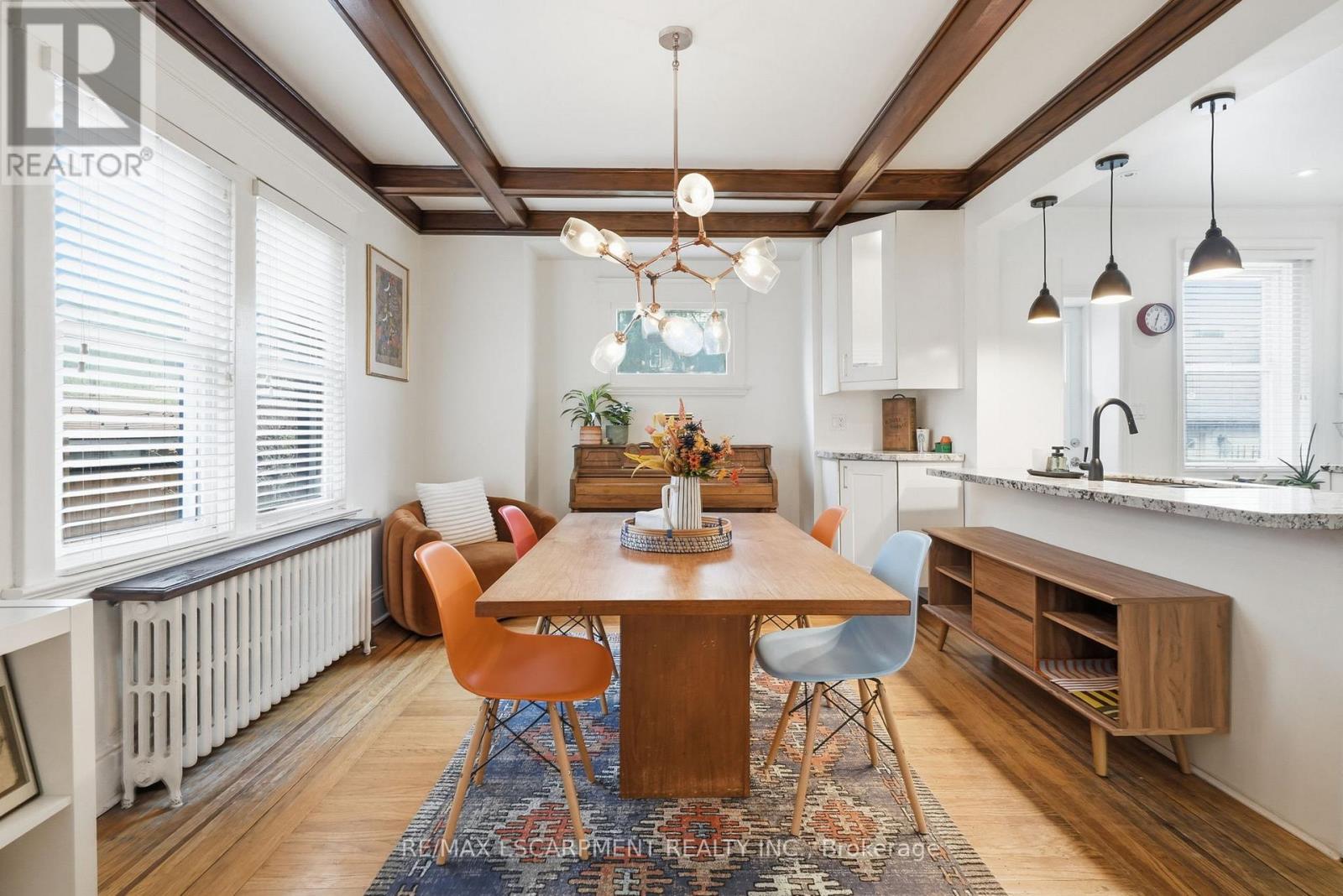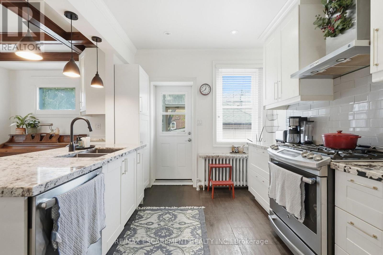 Welcome to 37 Connaught Avenue South, where timeless character meets one of Hamilton's most connected, neighbourly communities. Set on a quiet, tree-lined street in Gibson/Stipley South, this is more than a home, it's a place where neighbours know each other, kids play outside, and there's a true sense of community. This beautifully updated 2.5-storey home offers 4 spacious bedrooms and 2.5 bathrooms, blending historic charm with thoughtful modern upgrades. Freshly painted and move-in ready, every space feels warm and refined. At the heart of the home is a stunning renovated kitchen with soaring ceilings, custom cabinetry, stainless steel appliances, granite countertops, and a functional peninsula perfect for everyday living and entertaining. It flows into a welcoming dining area with hardwood floors and an original beam ceiling. The cozy family room features pocket French doors, hardwood flooring, a gas fireplace with natural stone surround, and custom built-ins, the perfect place to unwind. Original character shines throughout with coffered ceilings, walnut trim, solid wood doors, antique hardware, inlay floors, and beautiful stained glass details. Location is everything. Just minutes to Ottawa Street's vibrant shops, cafés, antique markets, and local dining, plus close to Gage Park where you can enjoy trails, the greenhouse, playgrounds, festivals, and year-round outdoor activities. 37 Connaught Avenue South isn't just a home, it's a lifestyle rooted in community, character, and convenience. (id:43681)