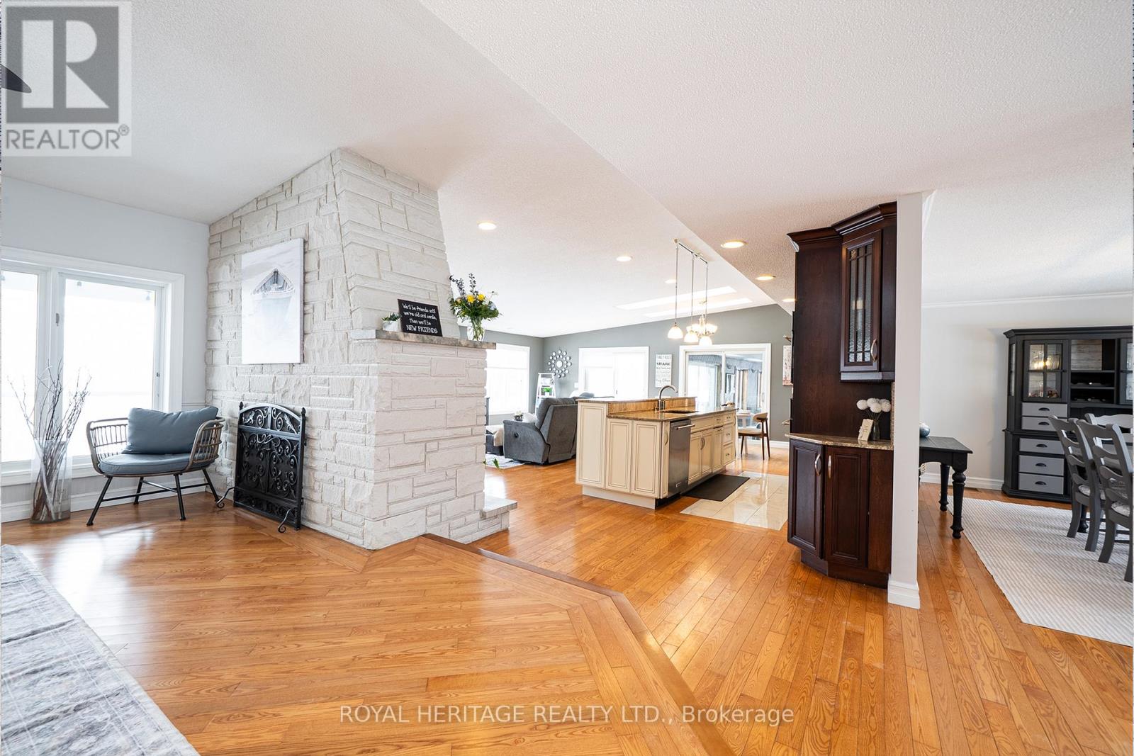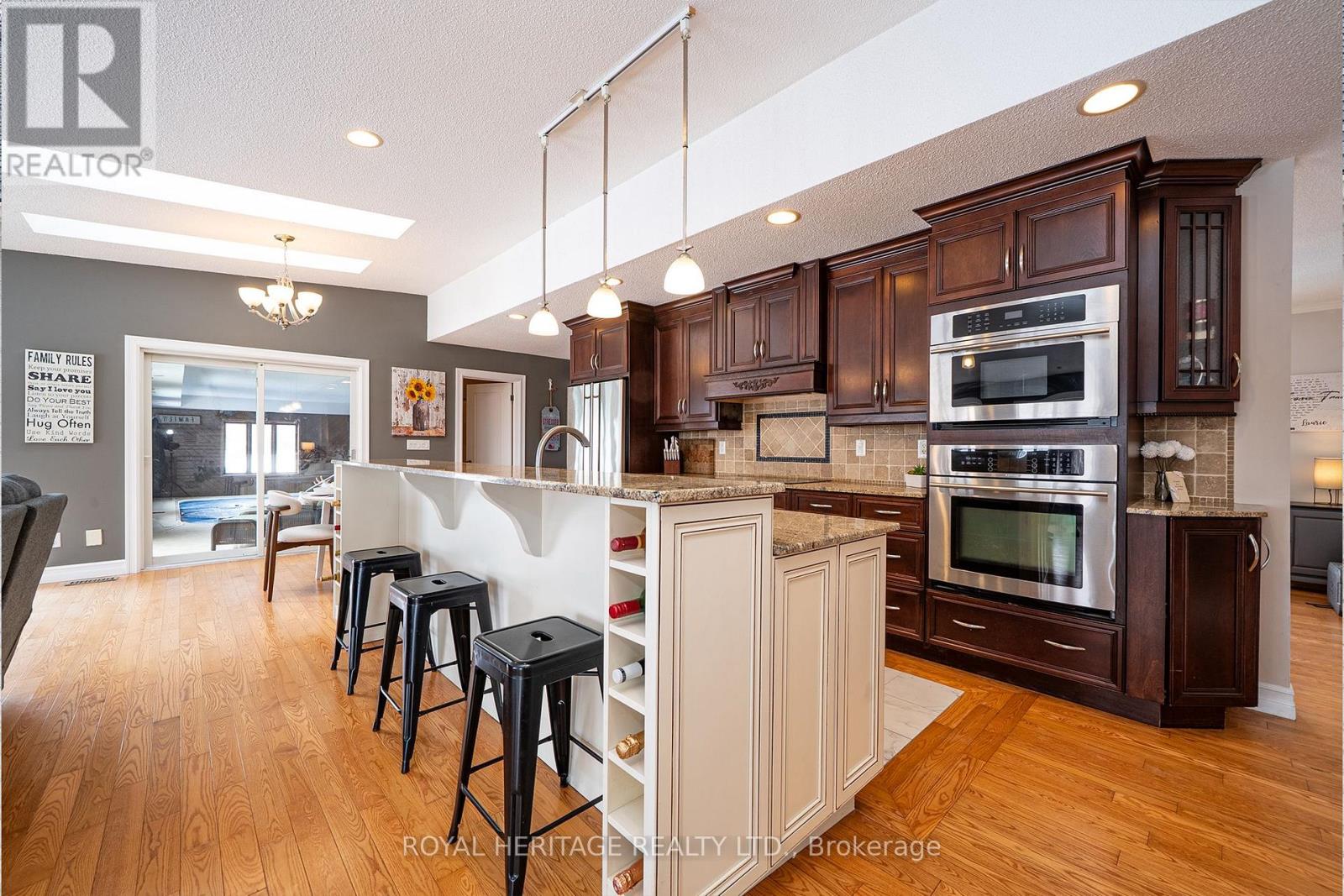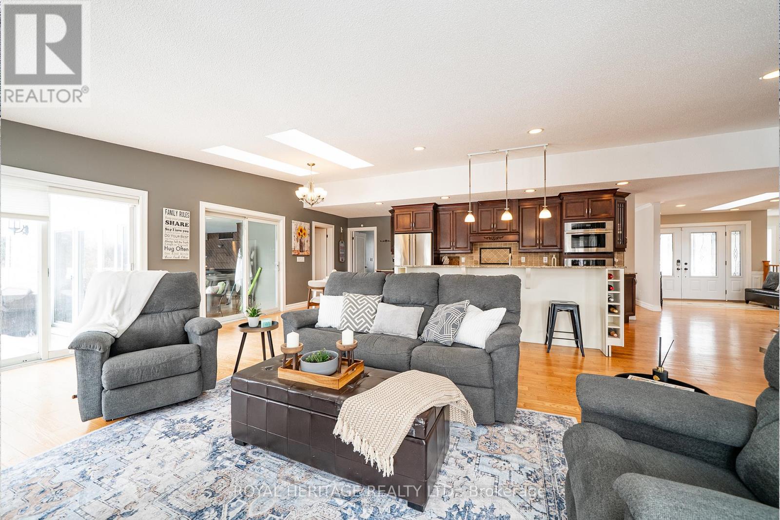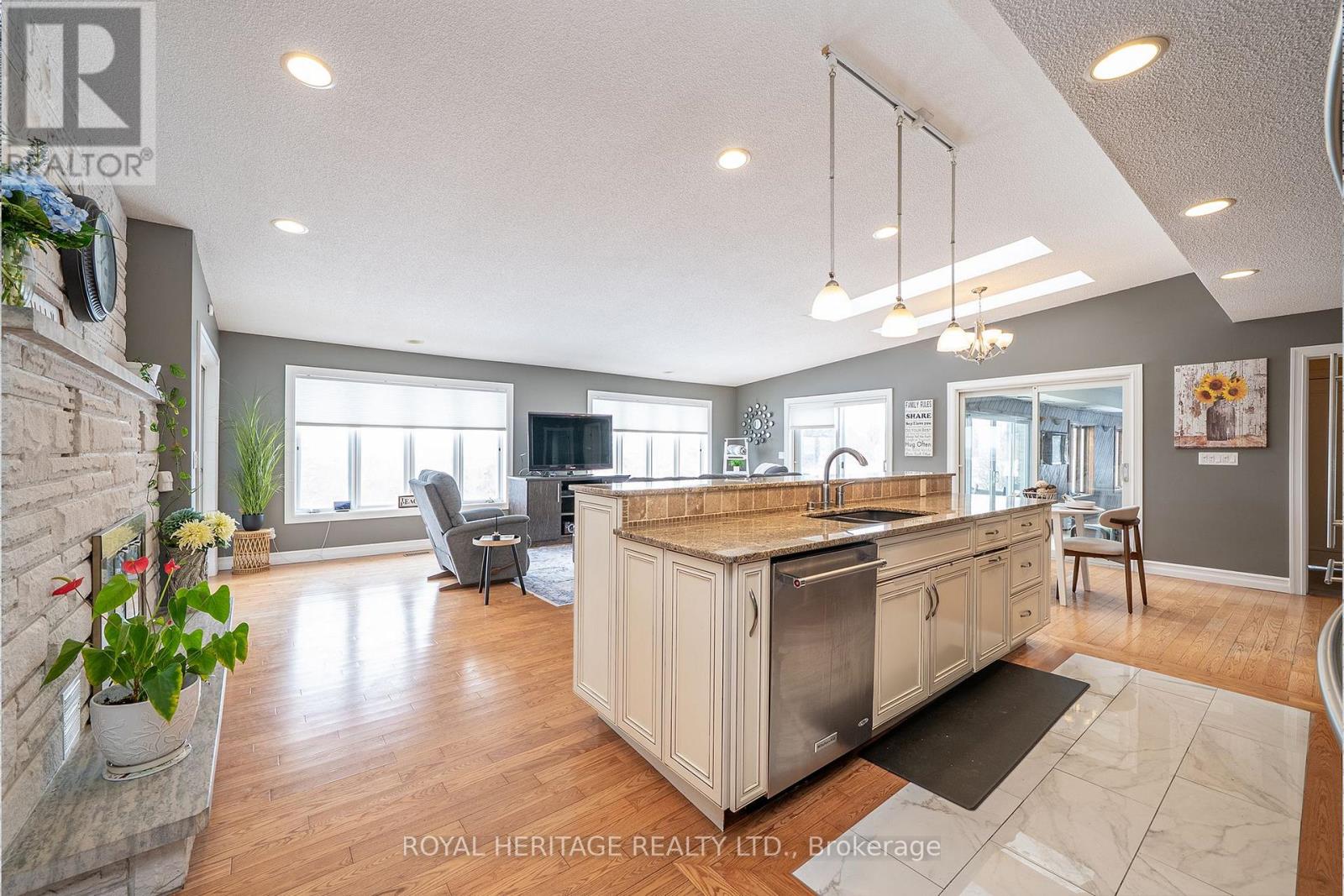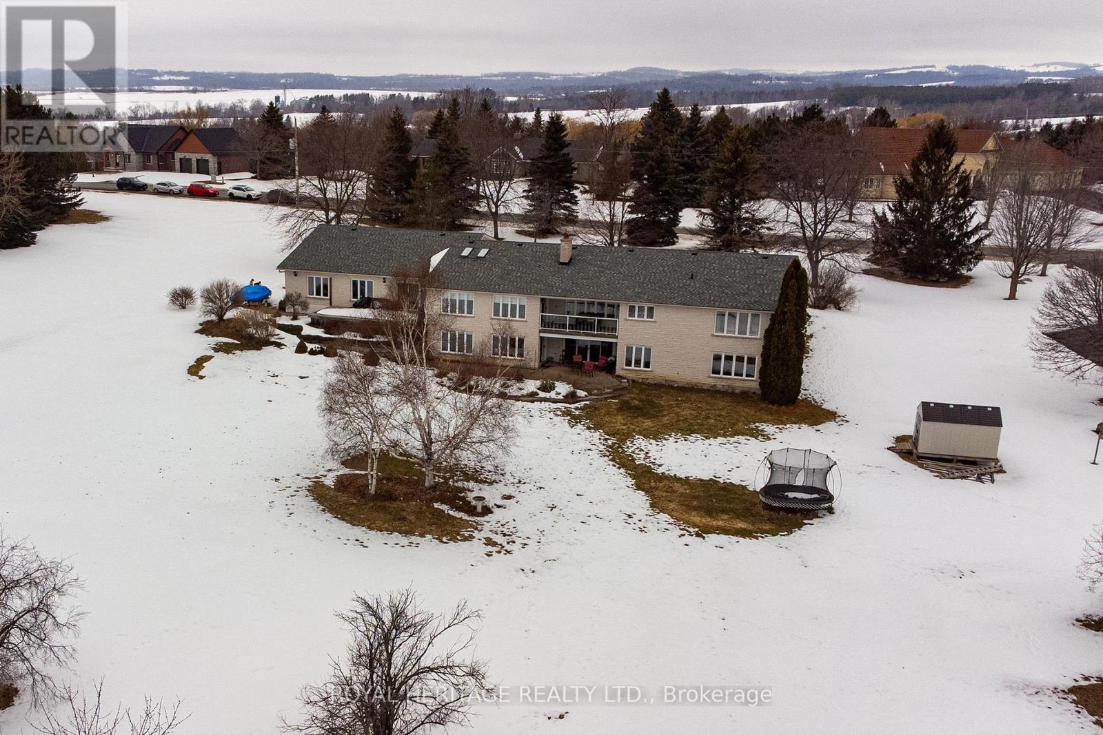 Bring the in-laws and elevate your lifestyle at this extraordinary executive bungalow, perfectly positioned on 2.26 acres atop a hill with sweeping views of the rolling Northumberland countryside and glimpses of Lake Ontario. Offering nearly 7,200 sq. ft. of finished living space, this estate delivers space, privacy, and true multigenerational versatility. A long private driveway leads to a 3-car garage and an impressive front entrance. Step into a sun-filled foyer enhanced by skylights, drawing your eye to the breathtaking views beyond. The main floor spans 3,610 sq. ft (as per MPAC) and is thoughtfully designed for everyday comfort and entertaining. Highlights include an oversized chef's kitchen, expansive raised living room, and bright and spacious family room, and a striking two-sided wood-burning fireplace. Family room also features a walk out to a balcony that overlooks gorgeous hilltop views and an additional walk out to a deck overlooking the backyard! The main level also features laundry, a primary suite with 5 pc ensuite bath & w/I closet. Two additional large bedrooms and a main floor den. A true showstopper is the resort-style indoor pool with walk out to the stunning back yard and is complete with hot tub and sauna, 3pc bath with a semi ensuite to the main floor-offering year-round relaxation without ever leaving home. The fully finished walk-out lower level is an exceptional bonus, featuring a self-contained 2-bedroom in-law suite with a private entrance from the garage or the additional two other walk outs to the patio overlooking the backyard. This level includes a living room with fireplace, exercise room, 5-piece ensuite bath, 2-piece bath, and ample space for extended family, guests, or potential rental opportunities. Multiple outdoor living areas invite you to enjoy peaceful mornings, vibrant sunsets, and serene views surrounded by mature trees and beautifully landscaped gardens-your own private retreat, just minutes from town amenities. (id:43681)