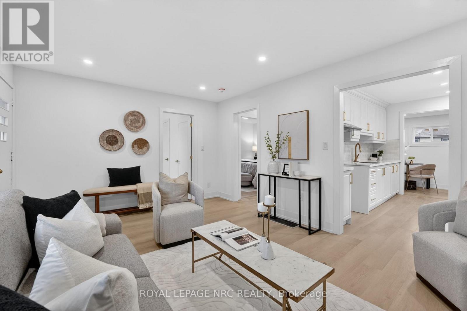 Welcome to 374 Navy Street, located in the heart of Welland. This beautifully renovated bungalow has been updated from front to back, offering a perfect blend of modern finishes and comfortable living. Featuring 2 bedrooms and a bright, inviting living room with large new windows, the home is filled with natural light throughout. The brand-new kitchen is a true highlight, complete with quartz countertops, stunning brass hardware, and ample storage space. Just off the kitchen, the dining area provides a comfortable space for everyday meals and entertaining. The spa like bathroom showcases a stylish quartz vanity, elegant brass fixtures, and a beautifully tiled shower with a built-in niche. Luxury vinyl flooring runs seamlessly throughout, adding both durability and a contemporary touch. For added convenience, the laundry room is thoughtfully designed with additional cabinetry matching the kitchen, complete with brass hardware and a butcher block countertop, offering both function and style. Step outside to a generously sized backyard and parking for up to three vehicles. Ideally located close to schools, parks, grocery stores, and all essential amenities, this home is perfect for first-time buyers, downsizers, or investors. Call to book your showing today. (id:43681)