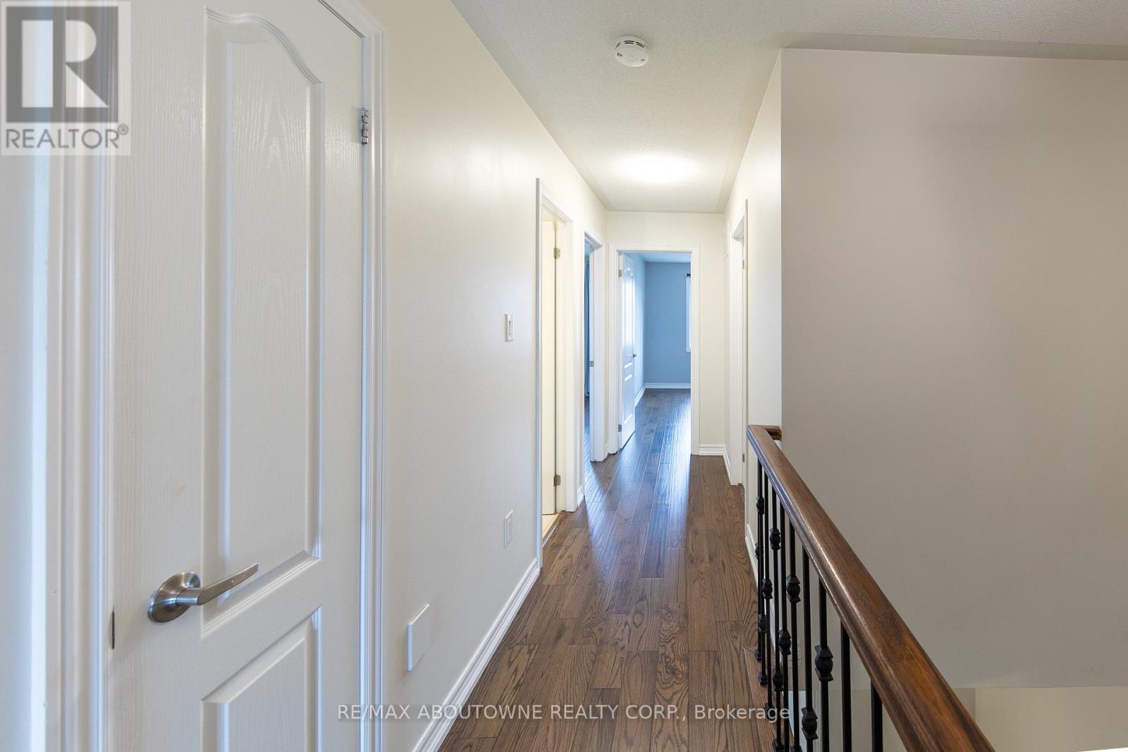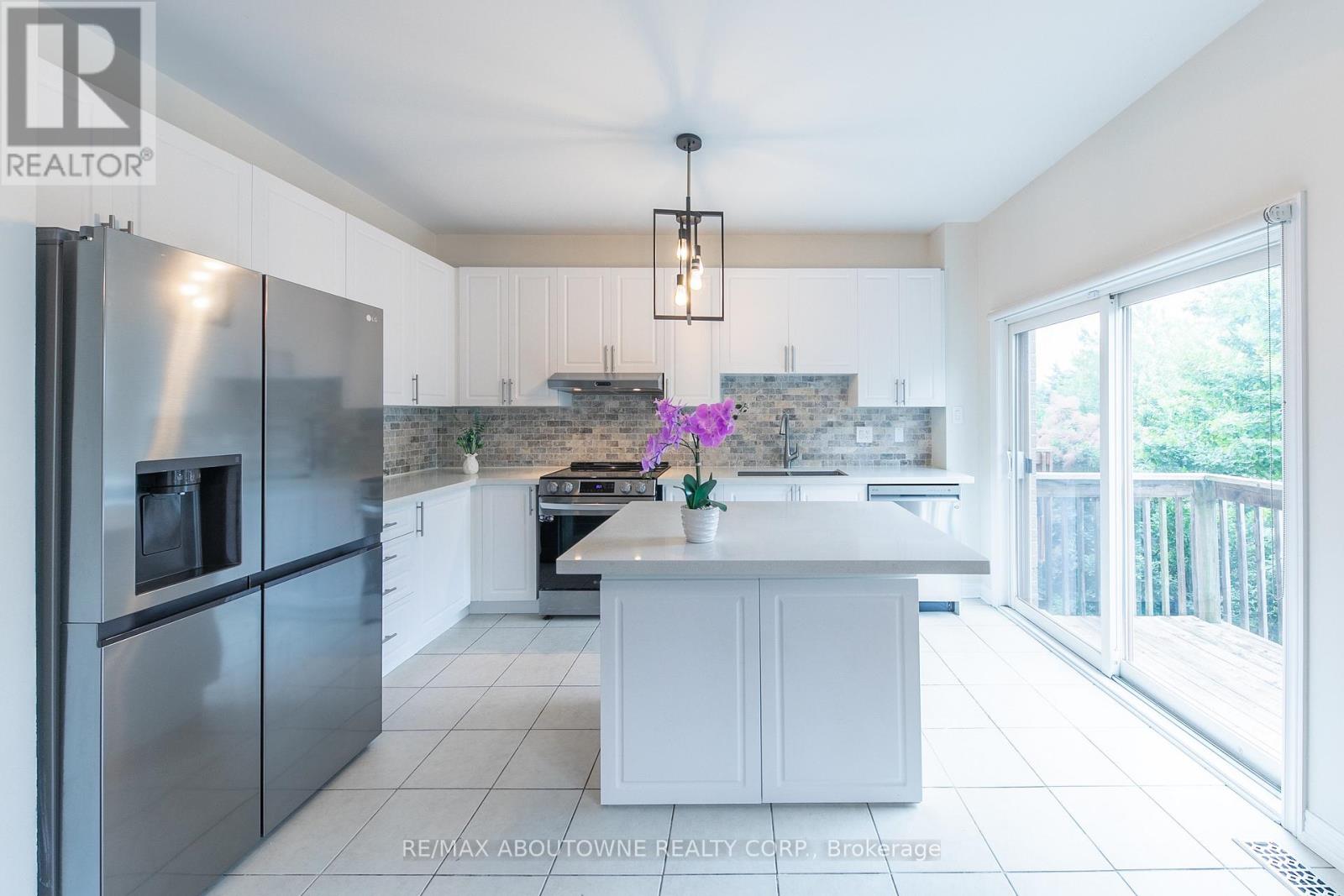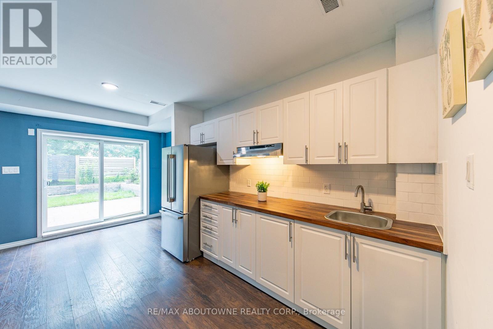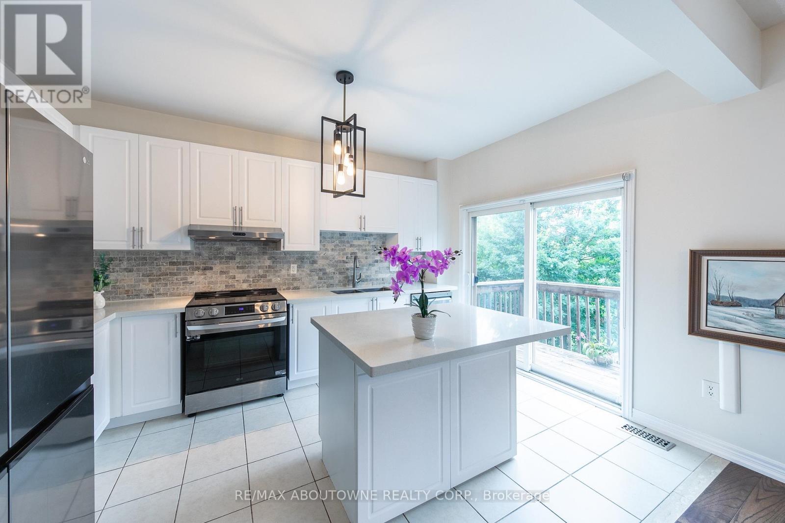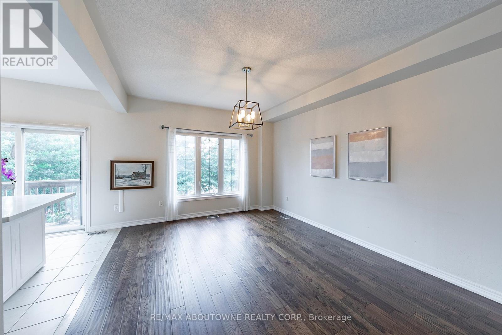 Welcome to this executive townhouse at 374 Spring Blossom Crescent, offering a comfortable and modern living environment in a highly convenient location. This approximately 1,900 sq.ft. home provides access to top-rated schools and excellent amenities, making it an ideal residence for quality living. Upon entering, you are welcomed by 9-foot ceilings and premium hardwood flooring throughout the main floor. The gourmet kitchen features high-quality appliances and finishes and opens seamlessly to the family room. A balcony overlooking the backyard and park provides a perfect place to relax and enjoy the view. The main floor also includes a dining area with a large window, open to the family room, as well as a convenient powder room for guests.Upstairs, the primary bedroom serves as a private retreat, featuring a 5-piece ensuite bathroom and a walk-in closet. Two additional spacious bedrooms share a well-designed bathroom. The laundry room with a sink is also conveniently located on the upper level.The walk-out basement studio suite has its own separate entrance, providing excellent privacy. It includes a kitchenette, a washroom, and a flexible space that can be used as a fitness area, home office, or potentially a den or additional bedroom. The low-maintenance "Urban Zen" backyard backs onto a trail leading to a splash pad and parks, offering a peaceful outdoor setting with no rear neighbours. Conveniently located near public transit, QEW/403, and Highway 407, this home offers easy commuting. The property is within the boundaries of excellent schools, including Iroquois Ridge High School, Munn's Public School, and White Oaks / St. Thomas Aquinas (IB programs). A connected double garage provides additional convenience, parking, and storage.This well-appointed executive townhouse offers a wonderful balance of comfort, space, and location - an excellent place to call home. (id:43681)