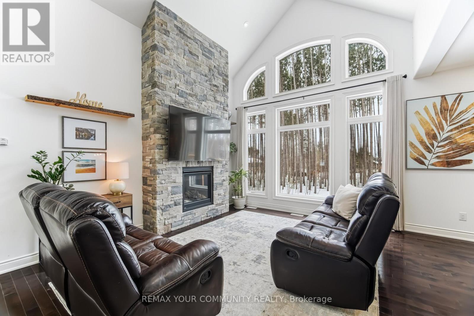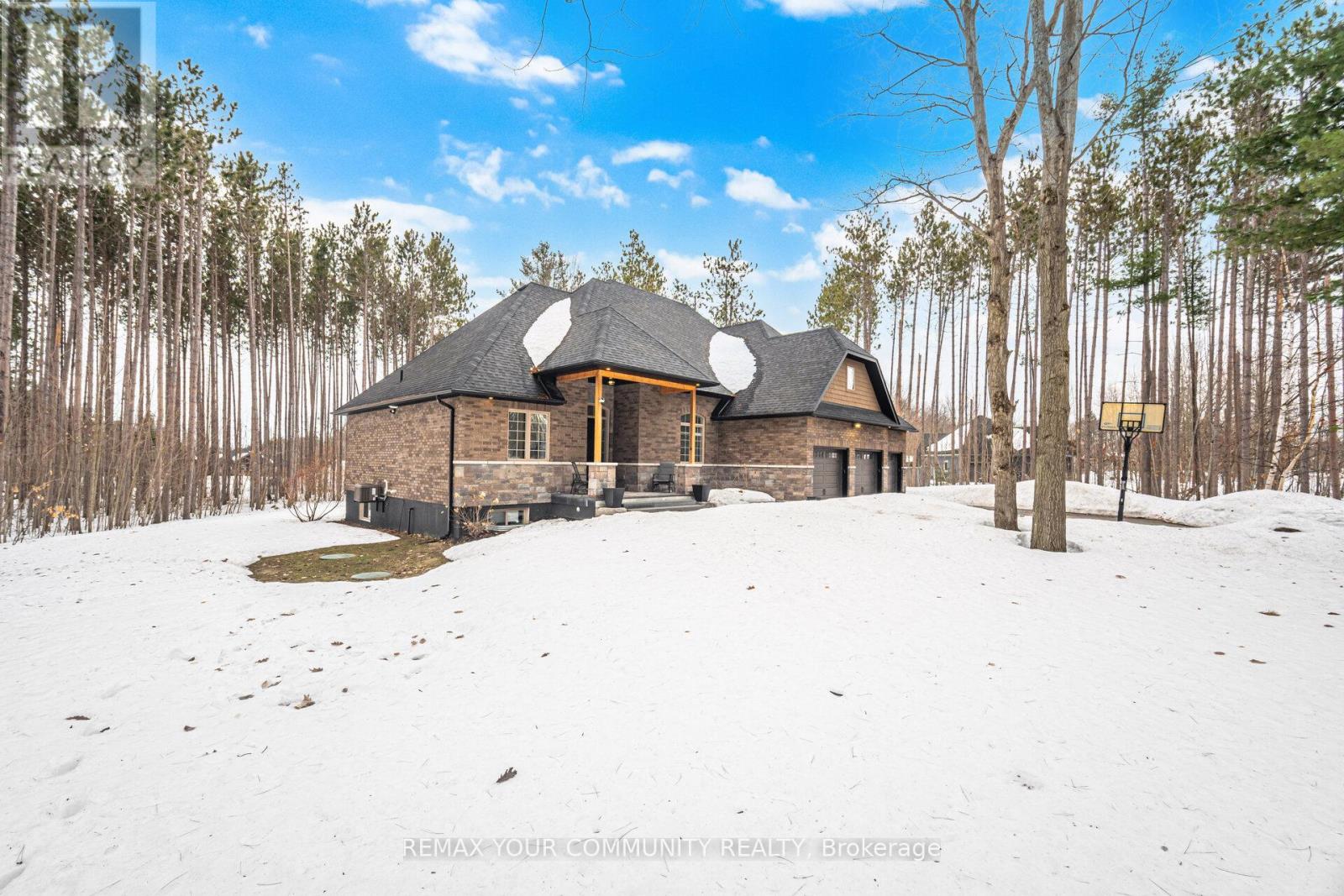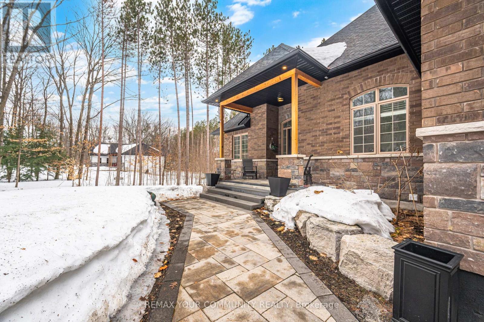 Experience Refined Living In This Exceptional Bungaloft Set On A Secluded 1-Acre Wooded Lot In The Prestigious Pineview Estates Community. A Residence Where Timeless Architecture, Privacy, And Upscale Finishes Create An Unforgettable First Impression. Surrounded By Mature Forest And Beautifully Landscaped Grounds, This Striking Home Showcases An Elegant Brick And Stone Façade, Dramatic Rooflines, A Welcoming Covered Porch, And A Heated 3-Car Attached Garage. Inside, More Than 2,300 Sq. Ft. Of Thoughtfully Designed Living Space Unfolds With 9-foot Ceilings, Neutral Designer Tones, And A Spectacular Great Room Featuring 12-foot Ceilings, A Floor-to-ceiling Stone Fireplace, And Expansive Windows That Frame Tranquil Views Of The Surrounding Trees. The Custom Chef's Kitchen Is Highlighted By Quartz Countertops, A Contrasting Centre Island With Breakfast Bar, Premium Stainless Steel Appliances, A Gas Range With Statement Hood, Built-in Bosch Coffee System, And A Side-by-side Refrigerator And Freezer. The Adjoining Dining Area Opens Directly Onto The Deck, Creating An Effortless Indoor-outdoor Flow Ideal For Entertaining. Step Outside To An Elevated Deck Overlooking The Serene Backyard, With Stairs Leading To A Beautifully Crafted Stone Patio, Accented By Armour Stone Landscaping And Manicured Garden Beds-an Idyllic Setting For Outdoor Gatherings. The Home Offers Three Spacious Bedrooms, Including A Luxurious Primary Retreat Complete With A Walk-in Closet And An Elegant 6-piece Ensuite. A Main-floor Laundry Room With Sink Provides Convenient Access To The Garage, While The Upper Loft Offers Versatile Space Perfect For A Media Room, Home Office, Or Family Lounge. An Unfinished Basement With High Ceilings, Lookout Windows, And A Separate Entrance Presents Outstanding Potential For Future Living Space Or A Multi-generational Suite. Thoughtful Upgrades Such As Central Vacuum, ERV/HRV System, Air Exchanger, And Automatic Garage Door Remotes Enhance Comfort And Efficiency (id:43681)