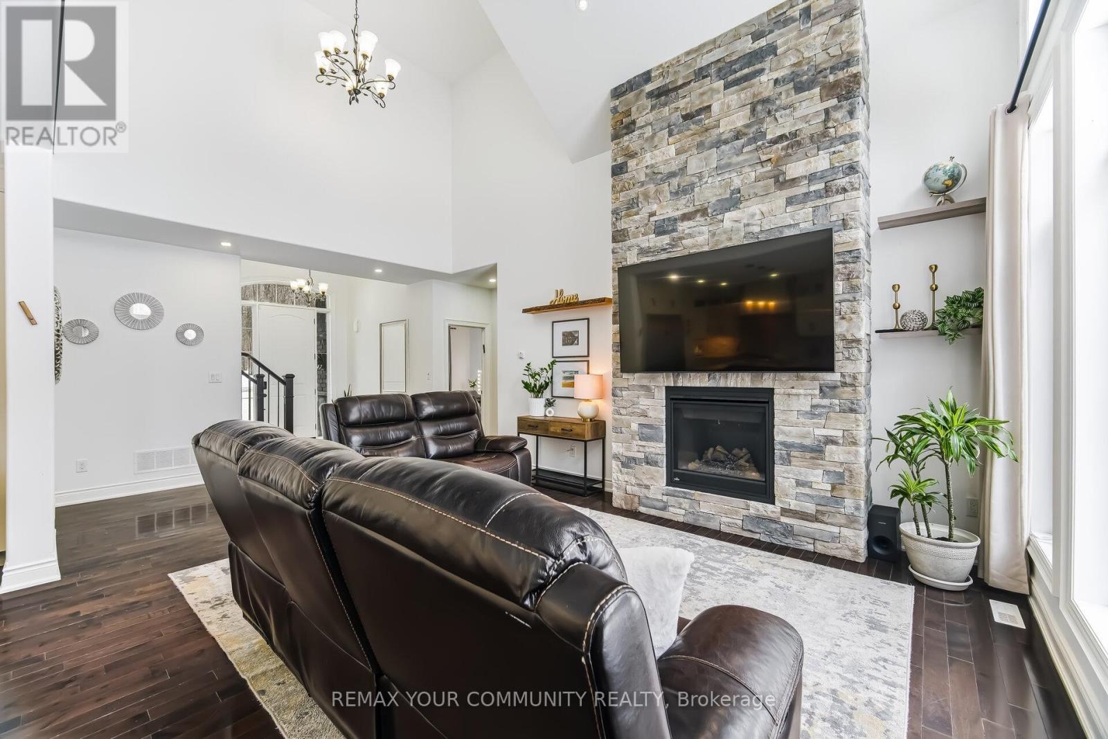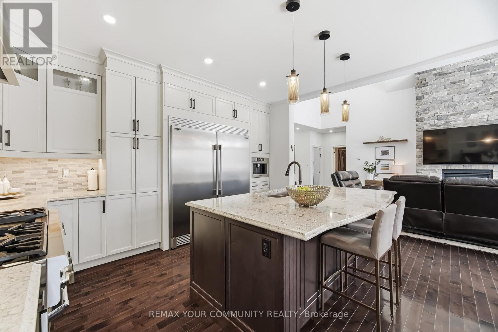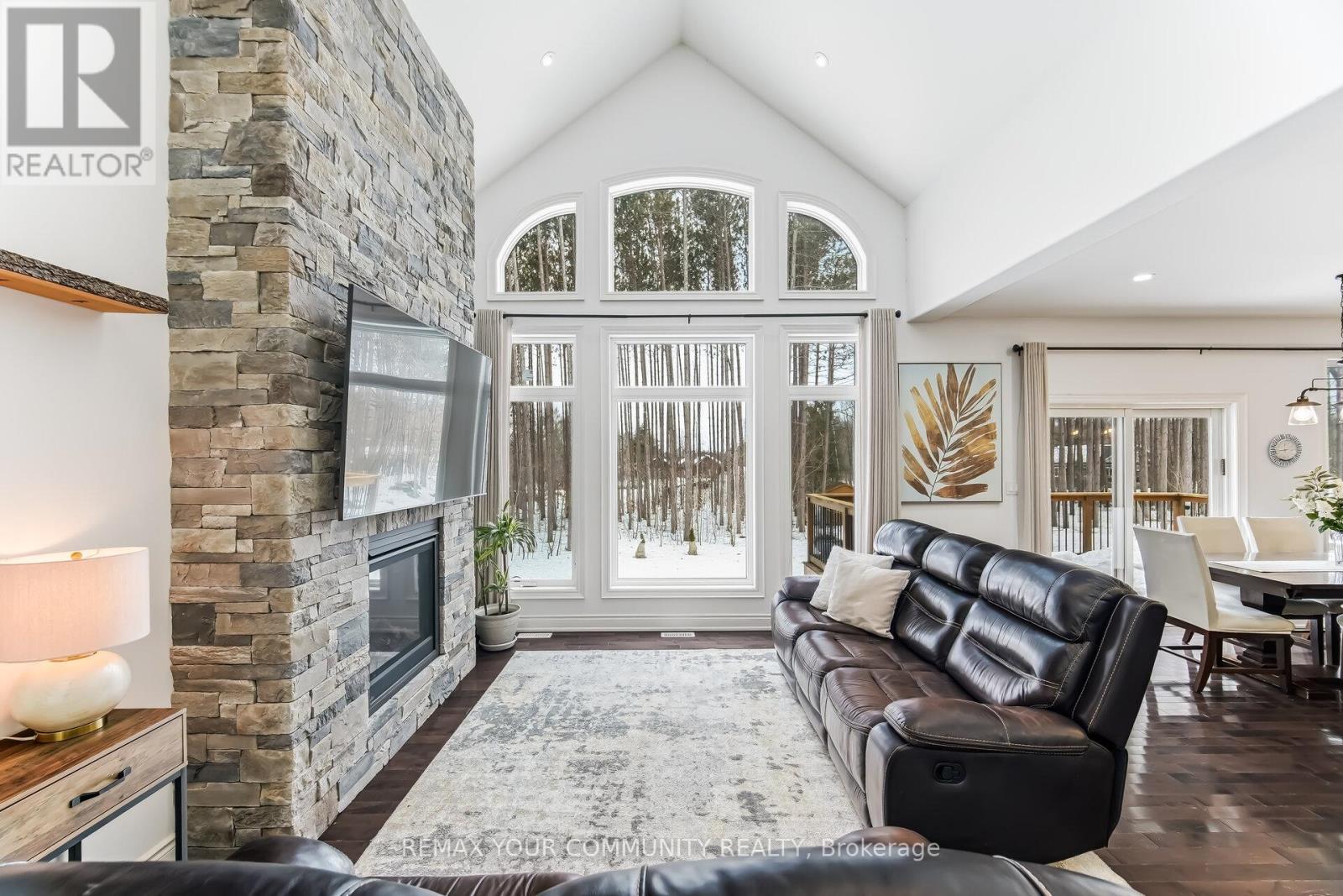 Experience Refined Living In This Exceptional Bungaloft Set On A Secluded 1-Acre Wooded Lot In The Prestigious Pineview Estates Community. A Residence Where Timeless Architecture, Privacy, And Upscale Finishes Create An Unforgettable First Impression. Surrounded By Mature Forest And Beautifully Landscaped Grounds, This Striking Home Showcases An Elegant Brick And Stone Façade, Dramatic Rooflines, A Welcoming Covered Porch, And A Heated 3-Car Attached Garage. Inside, More Than 2,300 Sq. Ft. Of Thoughtfully Designed Living Space Unfolds With 9-foot Ceilings, Neutral Designer Tones, And A Spectacular Great Room Featuring 12-foot Ceilings, A Floor-to-ceiling Stone Fireplace, And Expansive Windows That Frame Tranquil Views Of The Surrounding Trees. The Custom Chef's Kitchen Is Highlighted By Quartz Countertops, A Contrasting Centre Island With Breakfast Bar, Premium Stainless Steel Appliances, A Gas Range With Statement Hood, Built-in Bosch Coffee System, And A Side-by-side Refrigerator And Freezer. The Adjoining Dining Area Opens Directly Onto The Deck, Creating An Effortless Indoor-outdoor Flow Ideal For Entertaining. Step Outside To An Elevated Deck Overlooking The Serene Backyard, With Stairs Leading To A Beautifully Crafted Stone Patio, Accented By Armour Stone Landscaping And Manicured Garden Beds-an Idyllic Setting For Outdoor Gatherings. The Home Offers Three Spacious Bedrooms, Including A Luxurious Primary Retreat Complete With A Walk-in Closet And An Elegant 6-piece Ensuite. A Main-floor Laundry Room With Sink Provides Convenient Access To The Garage, While The Upper Loft Offers Versatile Space Perfect For A Media Room, Home Office, Or Family Lounge. An Unfinished Basement With High Ceilings, Lookout Windows, And A Separate Entrance Presents Outstanding Potential For Future Living Space Or A Multi-generational Suite. Thoughtful Upgrades Such As Central Vacuum, ERV/HRV System, Air Exchanger, And Automatic Garage Door Remotes Enhance Comfort And Efficiency (id:43681)