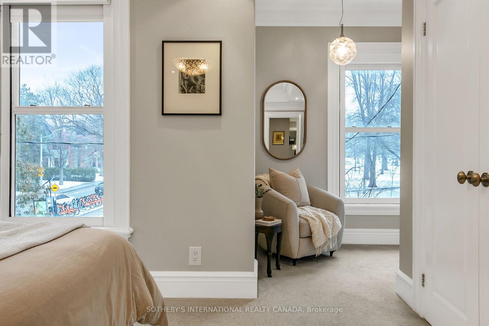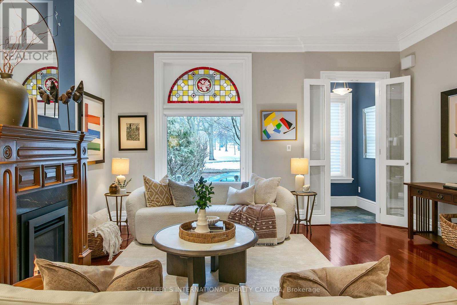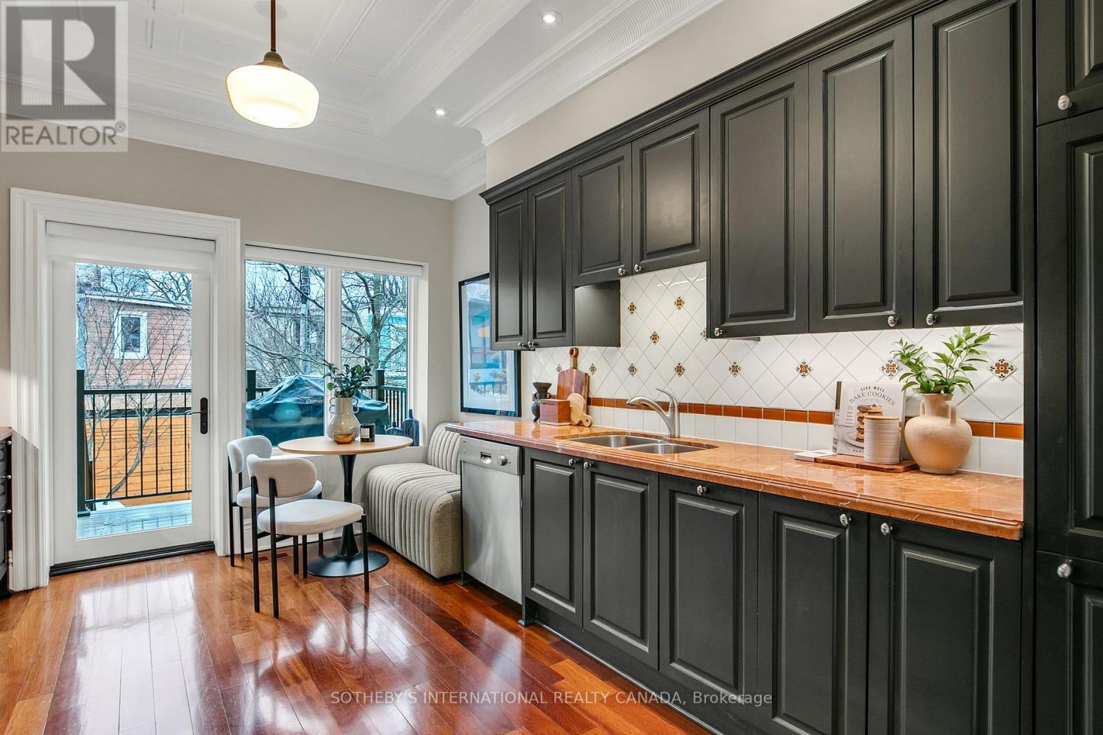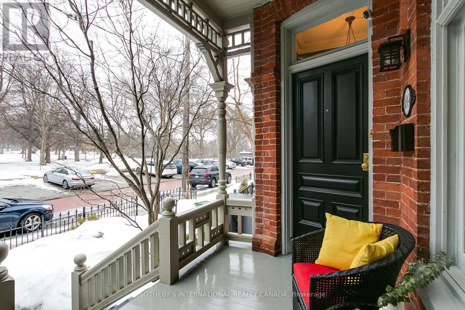Welcome to genteel living on the park! Located mid-block on a charming cobblestone stretch of Carlton St overlooking Riverdale Park, this handsome solid brick Victorian has been beautifully renovated preserving the timeless character expected of a classic Cabbagetown home. Imagine warm summer mornings on the gracious front porch coffee in hand as birdsong drifts across the park, or relaxing at day's end with a glass of wine & gentle breeze wafting through the trees. Living on this coveted block is the Quintessential Cabbagetown Dream! Gracious by design, a sep front foyer w/slate tile & French doors opens to elegant main floor where period charm meets modern comfort. The open concept living room has gas fireplace, hardwd flrs & large picture window framing leafy park views. Architectural details include crown mouldings, deep baseboards, stained glass, decorative brackets & panelled archway creating a warm & sophisticated ambiance. Main flr powder room & closet. Spacious skylit dining room is ideal for entertaining & hosting large gatherings. The eat-in kitchen has striking coffered ceiling, marble countertops, s/s appls & w/o to deck w/gas BBQ hookup perfect for summertime grilling! Upstairs, a beautifully renovated study w/custom millwork is the perfect work-from-home space & could easily be converted back to 3rd bed. The tranquil primary suite enjoys treetop & park views, cozy sitting room, 2 double closets w/organizers, coffered ceiling & luxe broadloom. The oversized bathroom has classic black-&-white tile, heated floors, rain head shower, heated towel rack & skylight. A bright 2nd bed o/l garden w/double closet. Full basement w/laundry, ample storage & access to backyrd. Fully fenced backyrd has been professionally re-landscaped w/stone hardscaping, new fencing w/laneway gate, exterior lighting & dedicated pet area. Beautifully renovated, meticulously maintained & 100% turnkey, this exceptional home offers elegant living just steps to the fabled Riverdale Farm (id:43681)