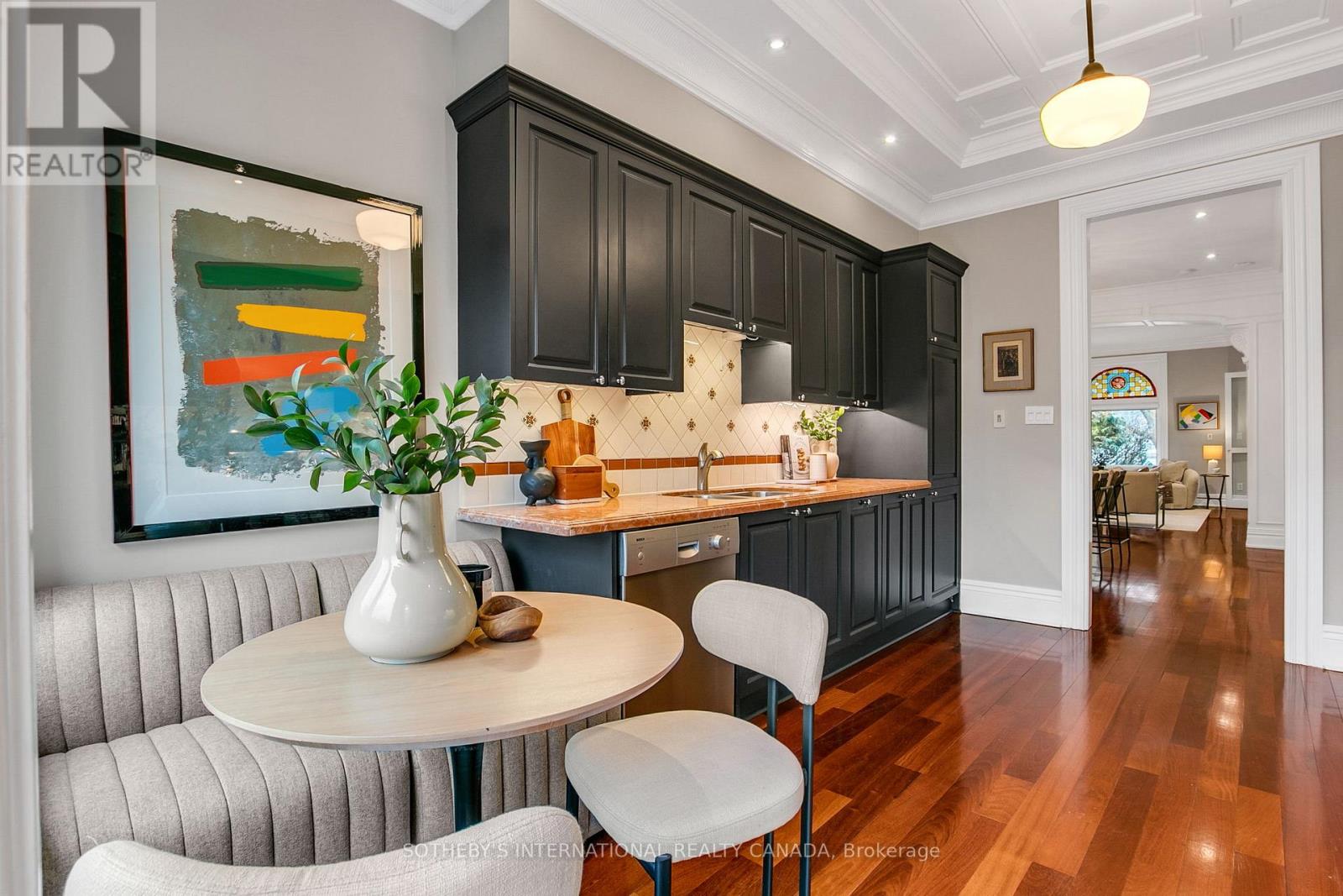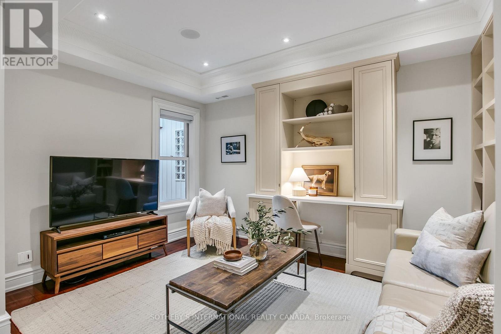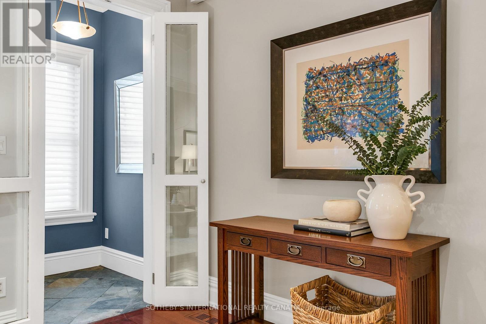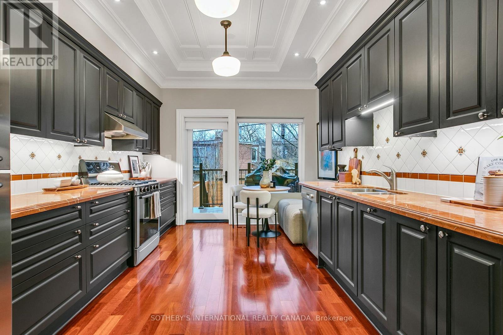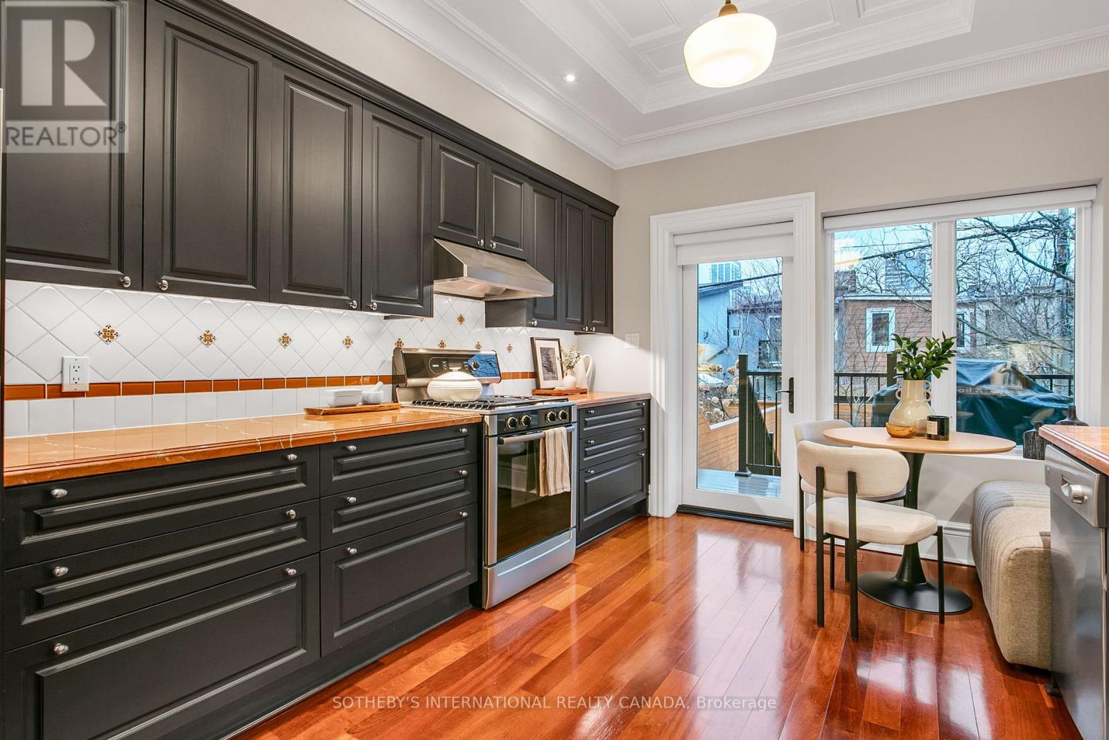 Welcome to genteel living on the park! Located mid-block on a charming cobblestone stretch of Carlton St overlooking Riverdale Park, this handsome solid brick Victorian has been beautifully renovated preserving the timeless character expected of a classic Cabbagetown home. Imagine warm summer mornings on the gracious front porch coffee in hand as birdsong drifts across the park, or relaxing at day's end with a glass of wine & gentle breeze wafting through the trees. Living on this coveted block is the Quintessential Cabbagetown Dream! Gracious by design, a sep front foyer w/slate tile & French doors opens to elegant main floor where period charm meets modern comfort. The open concept living room has gas fireplace, hardwd flrs & large picture window framing leafy park views. Architectural details include crown mouldings, deep baseboards, stained glass, decorative brackets & panelled archway creating a warm & sophisticated ambiance. Main flr powder room & closet. Spacious skylit dining room is ideal for entertaining & hosting large gatherings. The eat-in kitchen has striking coffered ceiling, marble countertops, s/s appls & w/o to deck w/gas BBQ hookup perfect for summertime grilling! Upstairs, a beautifully renovated study w/custom millwork is the perfect work-from-home space & could easily be converted back to 3rd bed. The tranquil primary suite enjoys treetop & park views, cozy sitting room, 2 double closets w/organizers, coffered ceiling & luxe broadloom. The oversized bathroom has classic black-&-white tile, heated floors, rain head shower, heated towel rack & skylight. A bright 2nd bed o/l garden w/double closet. Full basement w/laundry, ample storage & access to backyrd. Fully fenced backyrd has been professionally re-landscaped w/stone hardscaping, new fencing w/laneway gate, exterior lighting & dedicated pet area. Beautifully renovated, meticulously maintained & 100% turnkey, this exceptional home offers elegant living just steps to the fabled Riverdale Farm (id:43681)
