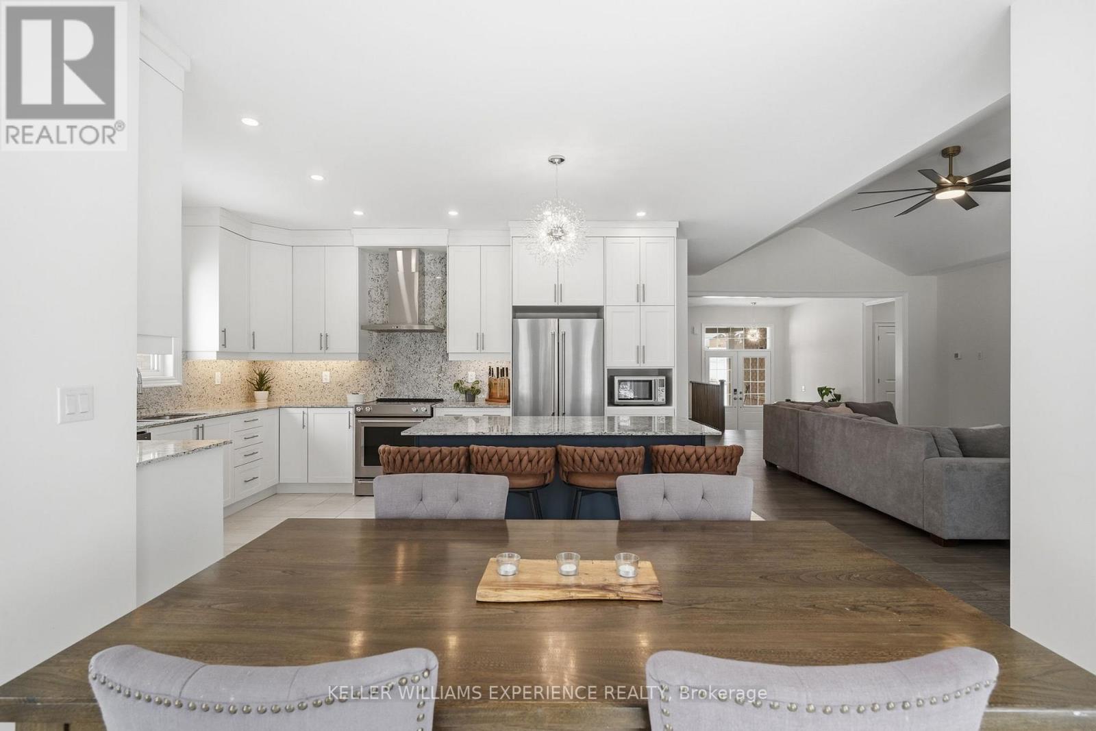 HELPING YOU ACHIEVE YOUR DREAMS in this beautiful bungalow in sought-after Sugarbush! Nestled among mature trees, this property offers the perfect blend of privacy, recreation, and nature -ideal for an active outdoor lifestyle.This well-designed 2,107 sq ft home features 3 bedrooms and 3 bathrooms. The inviting great room boasts soaring cathedral ceilings, creating a bright, open space perfect for relaxing or entertaining. The kitchen offers ample counter space, a large island with breakfast bar, and a breakfast area with French doors to the outdoors, while a second set in the primary bedroom provides direct backyard access.The primary suite includes a walk-in closet and 5-piece ensuite. Two additional bedrooms share a 4-piece bath, plus a convenient 2-piece powder room for guests.An oversized 3-car garage with a rare drive-through rear door provides easy backyard access-perfect for recreational storage or outdoor living.Enjoy year-round activities just minutes away at Horseshoe Valley Resort, or explore the trails of Copeland Forest. Nearby Lake Simcoe offers boating, beaches, and waterfront dining, while Orillia and Barrie's shopping, dining, schools, and commuter routes are a short drive away.Experience the best of country living with modern convenience in this exceptional home. (id:43681)