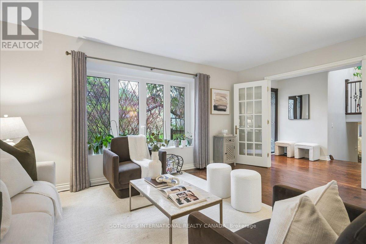 Cottage living in the heart of the city! Tucked away on a remarkable lot in the heart of The Kingsway, this classic Tudor offers a rare combination of space, privacy, and natural beauty. Set on nearly half an acre, backing directly onto Lambton-Kingsway Park, the property provides a serene, tree-lined setting while remaining close to the area's many conveniences. A beautifully landscaped front garden and stone pathway create a welcoming introduction. Inside, expansive windows frame views of the surrounding greenery, bringing a sense of calm and connection to nature throughout the home. The main floor offers both comfortable everyday living and inviting spaces for entertaining. The kitchen and dining areas open onto an expansive 700 sq. ft. deck-ideal for outdoor dining, hosting, or simply enjoying the quiet, private backdrop. At the heart of the home, the kitchen features an oversized island for casual meals, conversation, or day-to-day activities. The nearby large family room is well-suited to family movie nights, gathering with friends, cheering on your favourite Toronto sports team or just relaxing by the large wood-burning fireplace, complemented by the convenience of a full bathroom, laundry, and a kitchenette to store drinks and snacks. Upstairs, the primary suite offers a private refuge with a walk-in closet and a 3-piece ensuite, while 3 additional bedrooms and a 4-piece bathroom provide flexibility for family, guests, or a home office. The lower level further enhances the home's versatility, perfect for a guest or in-law suite, teenage retreat, fitness space, or hobby room. Direct access to Lambton-Kingsway Park creates a natural extension of the property, with a large, green space through the back gate. A 2-car garage, parking for 8 vehicles, proximity to top-rated schools, and easy access to transit, major routes, and the shops and restaurants of Bloor Street complete this exceptional offering, well-suited to a variety of lifestyles. (id:43681)
