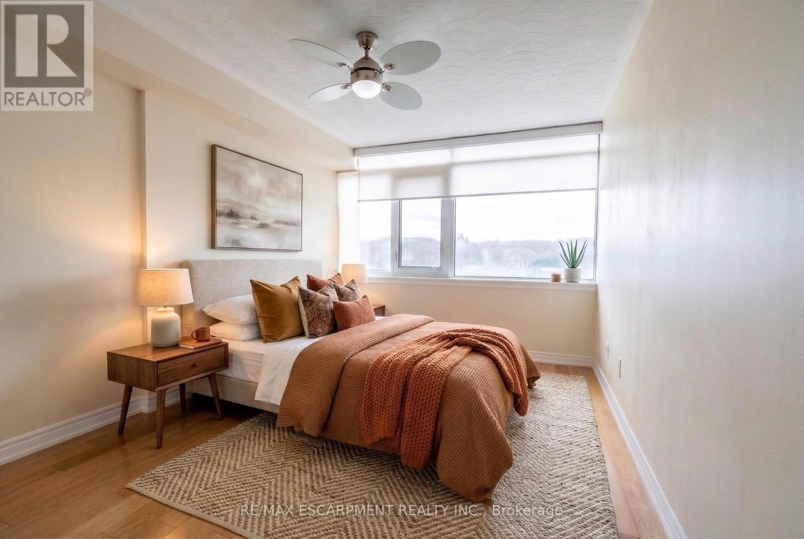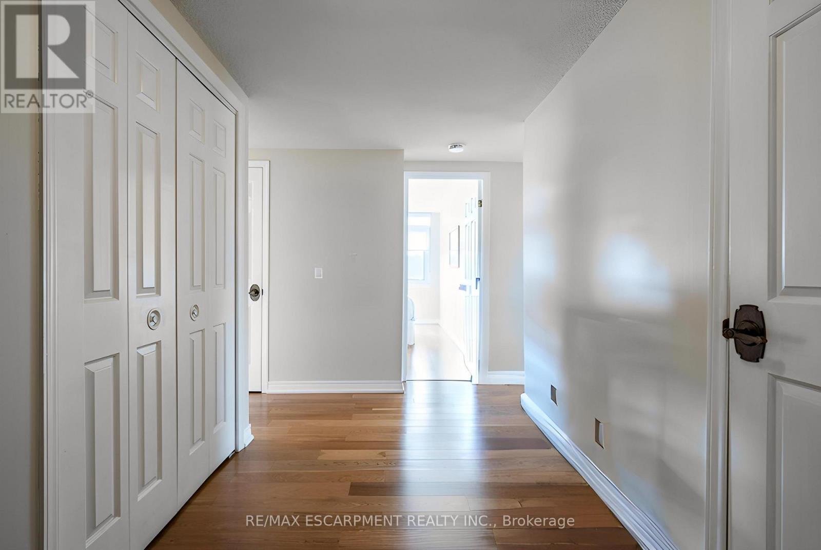 We've got the view! Welcome to Harris Towers! This rarely offered 3 bed, 2 full bath CORNER unit offers 1245sq ft of bright, airy living with stunning Escarpment views from every room and private South facing balcony. Large principal rooms, an open-concept living/dining area, stunningly renovated kitchen (2016), and hardwood flooring throughout. Carpet free! The oversized primary bedroom features a gorgeous 3 piece ensuite, complete with beautiful glass and tile shower plus a walk-in closet. Two generous sized bedrooms, a pretty 4 pc bath, in-Suite laundry and PLENTY of closet space complete this home. Located in a quiet, well-maintained building brimming with top-tier amenities such as an indoor saltwater pool, sauna, fitness rm, library, party rm, billiards rm, workshop, car wash (with vacuum!) and pickleball courts. Nestled among mature trees and greenspace with easy access to the Red Hill Valley Parkway, trails, schools, shopping, and transit. Easily hop onto the Red Hill Valley Pkwy, QEW & Hwy 403. Includes one underground parking space & Large locker. (id:43681)