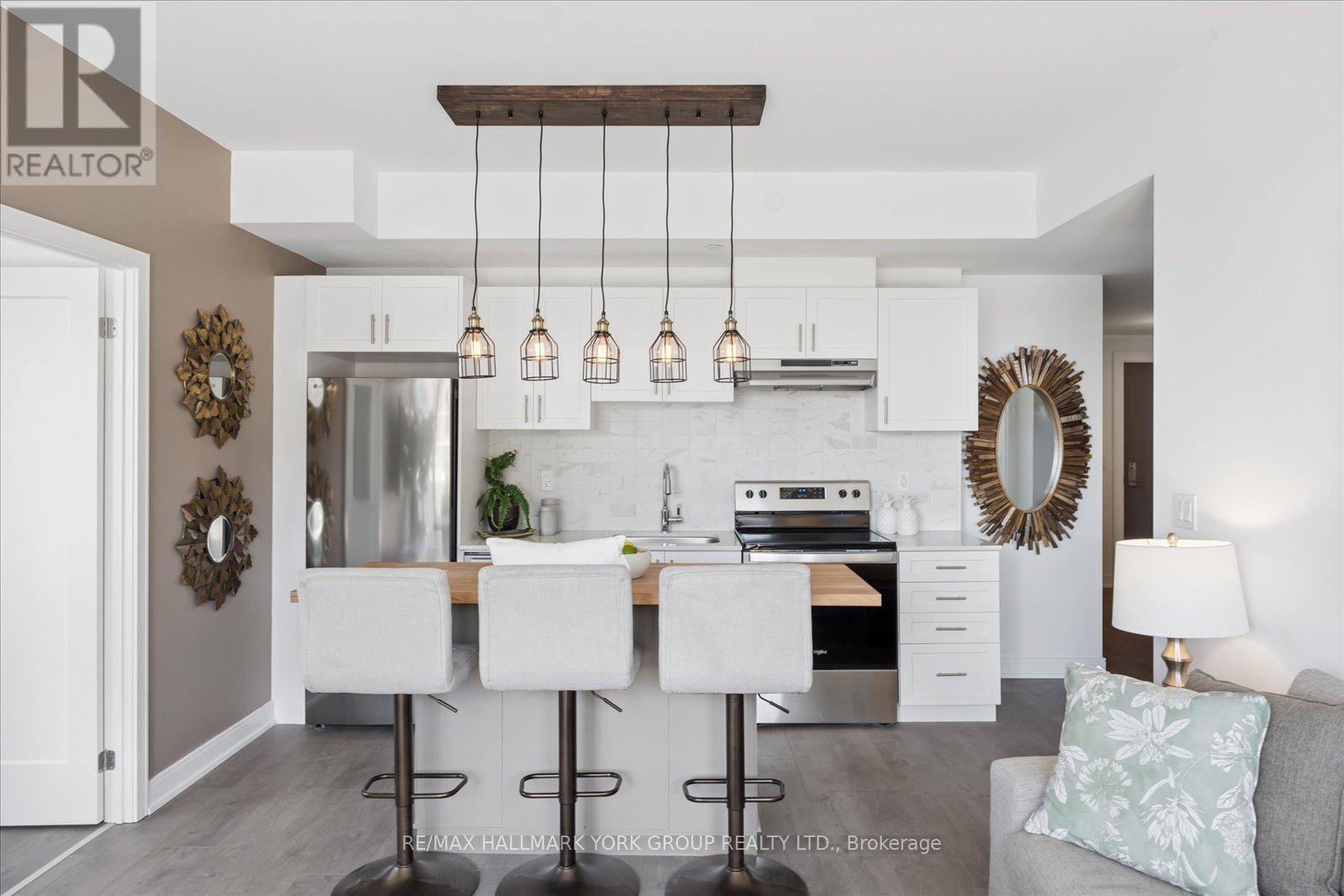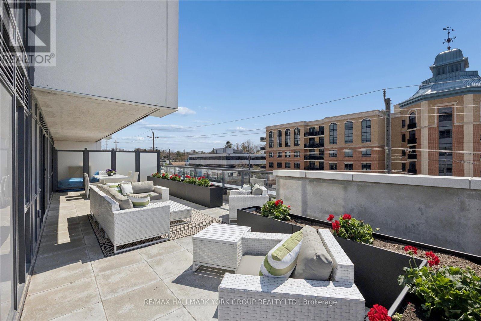 Fully Furnished Living At Kingsley Square-Designed For Comfort, Convenience, And Effortless Style. This Brand New Two-Bedroom, Two-Bathroom Suite Offers A Thoughtfully Designed Layout With A Private Primary Retreat Featuring A 3-Piece Ensuite, While The Second Bedroom Is Served By A Full 4-Piece Bath-Perfect For Guests, Roommates, Or A Home Office Setup. The Open-Concept Kitchen, Living, And Dining Area Flows Seamlessly, Showcasing Contemporary Finishes And A Bright, Welcoming Atmosphere Ideal For Both Everyday Living And Entertaining. Step Outside To Your Spacious Private Terrace Over 500 Sq Ft -A Rare Extension Of Your Living Space, Perfect For Morning Coffee Or Evening Unwinding.Move In With Ease-This Suite Comes Fully Furnished, Offering A Turnkey Lifestyle With No Compromise On Style Or Function. Furnishings Available For An Additional Cost, Offering A Flexible And Turn-Key Option.Residents Enjoy Access To Premium Building Amenities Including A Fitness Centre, Party And Meeting Rooms, Guest Suites, Rooftop Terrace, And Concierge Service. Ideally Located In The Heart Of Newmarket Along Davis Drive, You're Just Steps To Transit, Shops, Restaurants, And Everyday Essentials. Walk To Southlake Regional Health Centre And Upper Canada Mall, With Quick Access To GO Transit And Major Highways For A Seamless Commute. Modern Design, Prime Location, And True Move-In Ready Living-Everything You Need, Exactly Where You Want It. (id:43681)