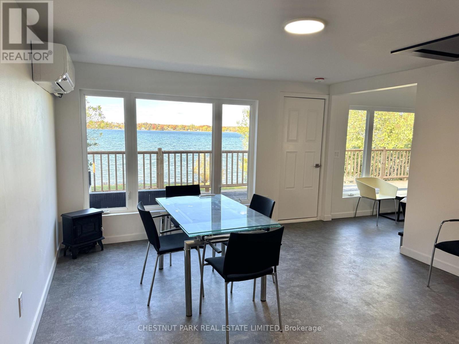 WATERFRONT LIVING WITH JUST UNDER 100 FT OF PRIVATE SHORELINE! Nestled along the serene shores of Smiths Bay, Lake Ontario in Prince Edward County, this inviting three-bedroom, two-bath waterfront home has been tastefully renovated top to bottom and offers an ideal blend of modern comfort and natural beauty. The property boasts sweeping panoramic views that can be enjoyed from both the expansive entertaining deck and the bright, open-concept interior. The main level features a contemporary kitchen with adjoining dining area, a spacious living room, two bedrooms, and a 4-pc bath. The lower level is dedicated to a private primary suite with walk-out, complemented by generous space that can easily serve as a family room, home office, or gym. Located on a quiet dead-end road, surrounded by lush, peaceful landscapes and only 15 minutes from Picton, this home offers the perfect retreat for those seeking tranquility without sacrificing convenience. (id:43681)