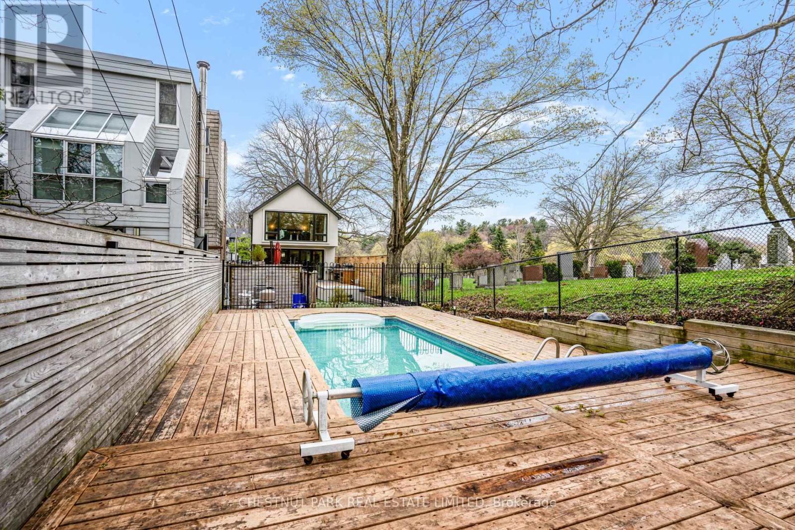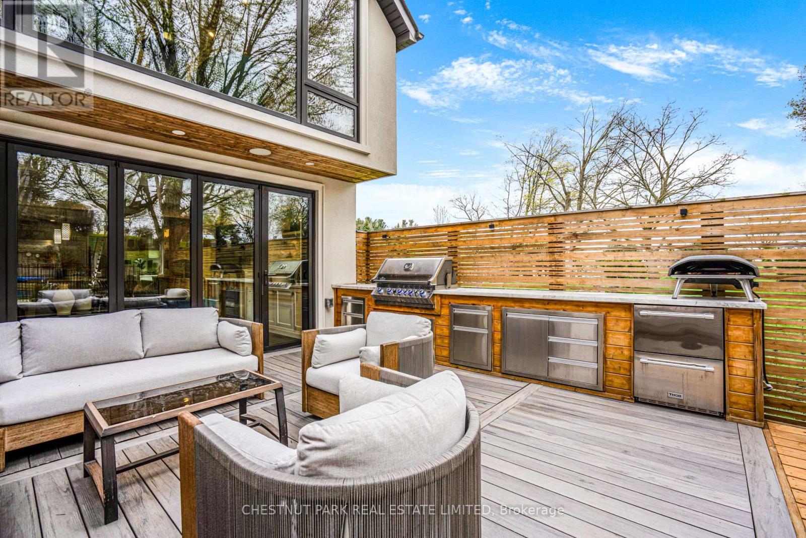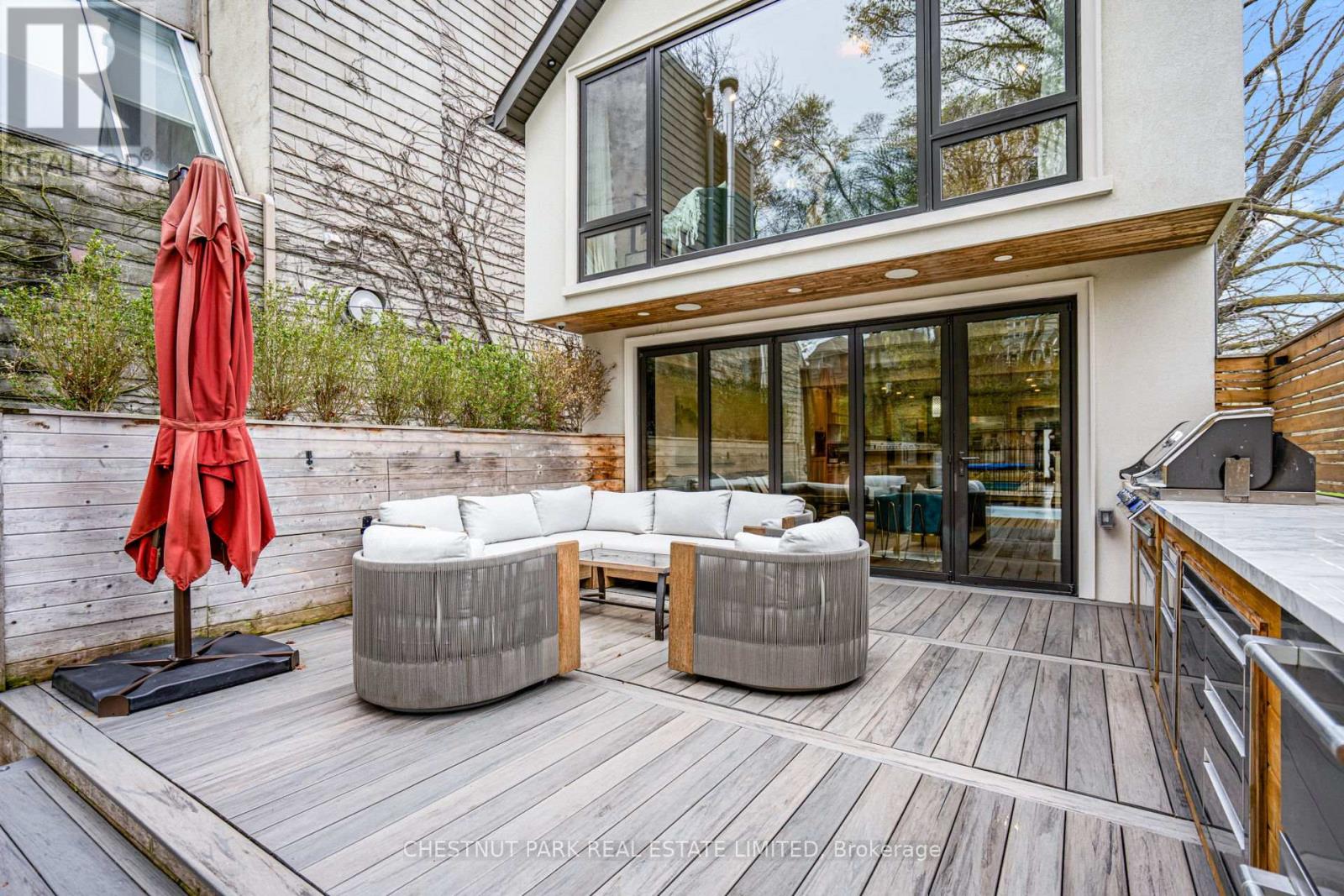 Discreetly positioned as the final residence on a quiet, dead-end street, this home offers a rare sense of community. The pavement transforms into a private playground-a natural congregation point where neighbourhood children socialize and play. This is the quintessential setting for an enriched family life. This four-bedroom plus one turn-key home is designed for the modern professional family. The heart of the home is a thoughtfully designed kitchen anchored by a massive 10-foot island with seating for five. It features a bespoke coffee station, a dedicated bar area, and an integrated family work zone. The space flows into a substantial family room, where a folding glass wall dissolves the boundary to the outdoors. An expansive deck leads to a fully equipped outdoor kitchen, inground pool, and a dedicated play area. On the second floor, the principal suite is a light-filled sanctuary, featuring floor-to-ceiling windows that offer a stunning, uninterrupted view of the ravine-like greenery. Three additional generously sized bedrooms support larger families keen to settle in the area. The dug-down basement provides exceptional ceiling height, housing a large, versatile recreation room and a quiet lower-level office, perfect for the remote professional. A mud room, office and laundry room offer additional utility and storage options for the owners. Situated on an extraordinary 180-foot deep lot, the backyard is a private parkland with mature trees. The property includes one legal front pad parking space, though the current owners have comfortably parked two vehicles for years.For the active family, the proximity to Sherwood Park, the Granite Club and Rosedale Golf Club, Wanless, Davisville and Lawrence Park Tennis Clubs is certainly appealing. The home is perfectly positioned within reach of Toronto's public/private schools, including John Fisher, Northern Collegiate, and top-tier private institutions like TFS, Havergal, and Crescent School. (id:43681)