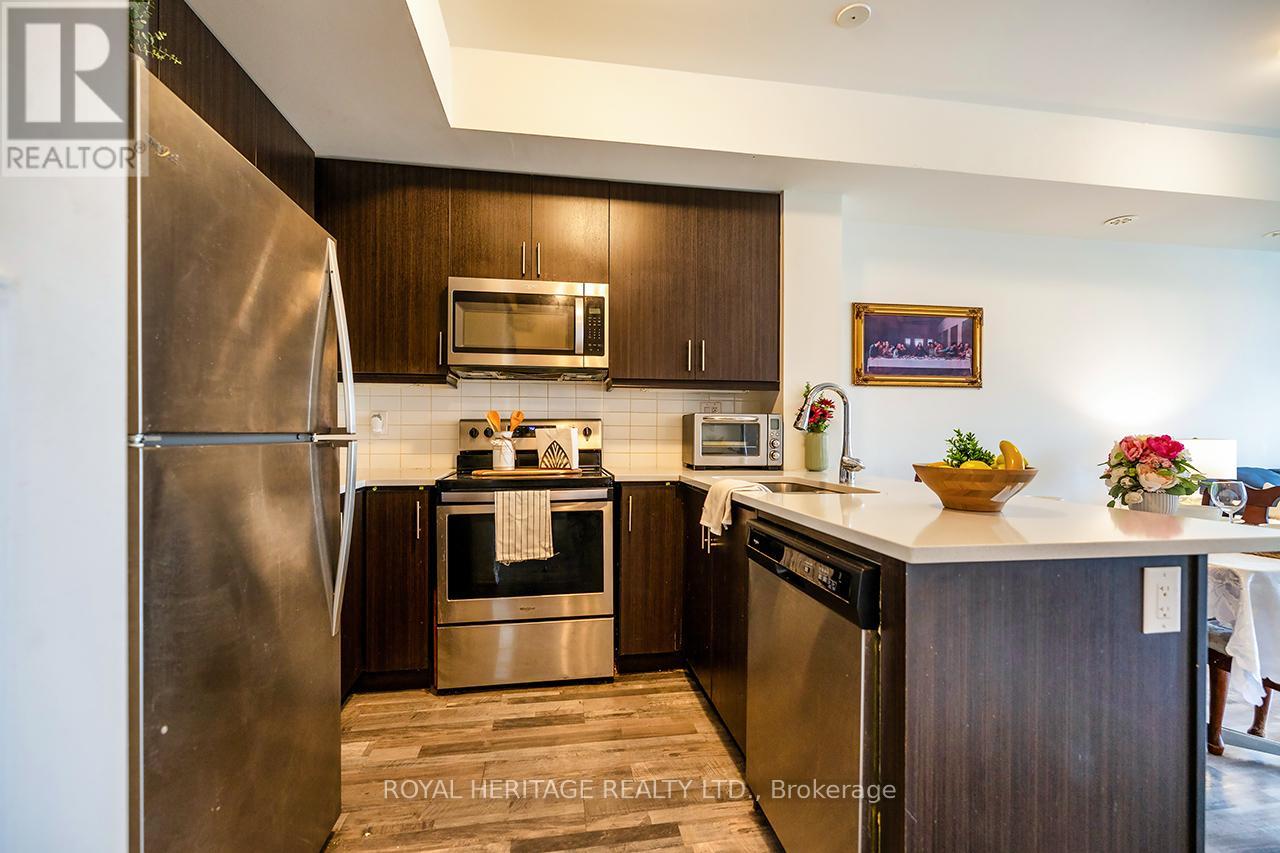 $393.79 每月Welcome to the highly sought-after Woodlands community in Pickering. This beautifully maintained stacked condo townhouse is an exceptional opportunity for first-time buyers, downsizers, and savvy investors alike. Flooded with natural light, the open-concept main floor seamlessly blends the kitchen and living space-perfect for both everyday living and entertaining. A convenient main-floor powder room adds to the thoughtful layout .Upstairs, you'll find two generously sized bedrooms, including a primary retreat with a private three-piece ensuite, along with an additional full four-piece bathroom designed for comfort and functionality. Enjoy the ease of upper-level laundry, ideally located just steps from the bedrooms. A bright, inviting home in a prime location. Parking spot room could accommodate 2 cars in a double spot. Large Locker. Both Exclusive. This is one you won't want to miss. Unit 413 (id:43681)