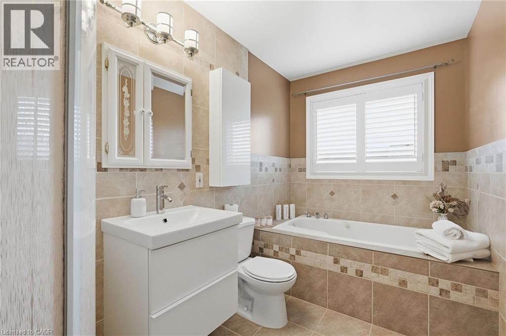 Welcome to this beautifully maintained custom-built Losani home, tucked away on a quiet court in desirable Mount Hope, right on the edge of Ancaster and Hamilton’s West Mountain. From the moment you arrive, the pride of ownership is obvious. The curb appeal is striking, and the setting is calm and family-friendly — a place where kids can ride their bikes safely and neighbors feel connected. Inside, this rare four-bedroom, three-bathroom home offers the space a growing family truly needs. Solid oak hardwood floors flow through the main and upper levels, bringing warmth and timeless style. The bright front foyer opens to a cozy family room with a gas fireplace and built-in TV with surround sound, making it the perfect spot for movie nights or quiet evenings at home. The sunny eat-in kitchen overlooks the backyard and features sliding doors that lead to a large deck, ideal for summer barbecues or peaceful morning coffee. The fully fenced yard offers privacy and plenty of room for children and pets to play. Upstairs, the spacious primary suite feels like a retreat, complete with double-door entry, a walk-in closet, and a private four-piece ensuite with a Jacuzzi tub and separate shower. Three additional generous bedrooms — one currently used as a TV lounge — provide flexible space for bedrooms, a playroom, or a home office. Major updates provide peace of mind, including a new roof installed in 2018 with a 50-year transferable warranty, as well as updated windows each dressed with california shutters. The extra-long interlock driveway accommodates four vehicles, and the double garage with inside entry adds everyday convenience. Set on a 46’ x 101’ lot in a quiet, family-oriented neighborhood just minutes from schools, parks, shopping, golf, and transit, this move-in ready home truly stands out. (id:43681)