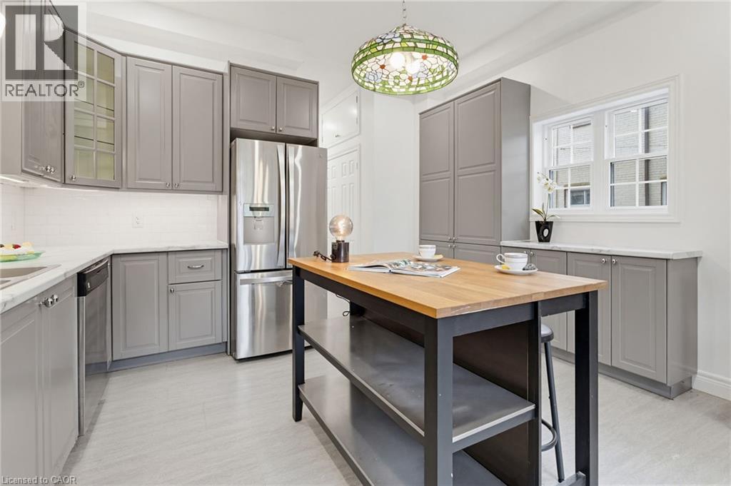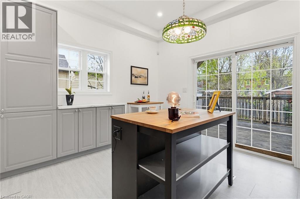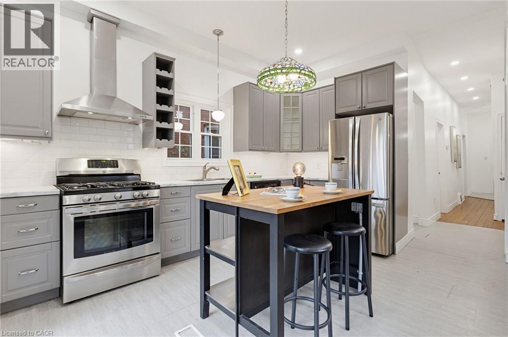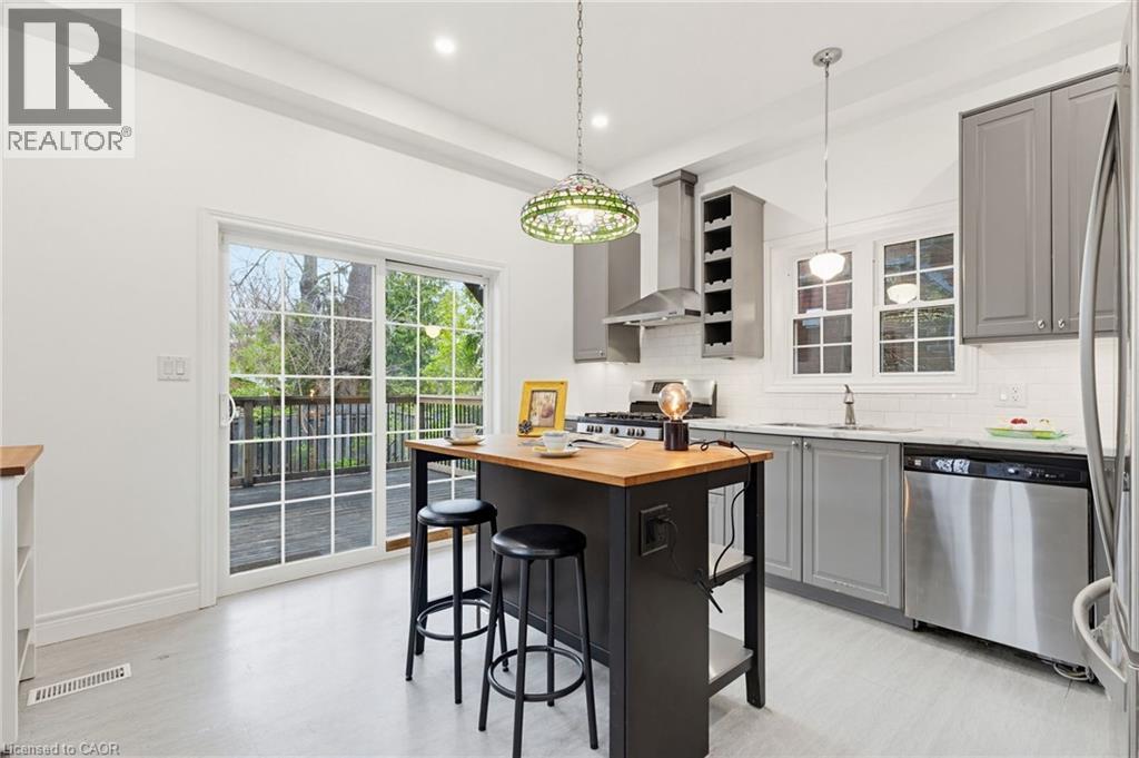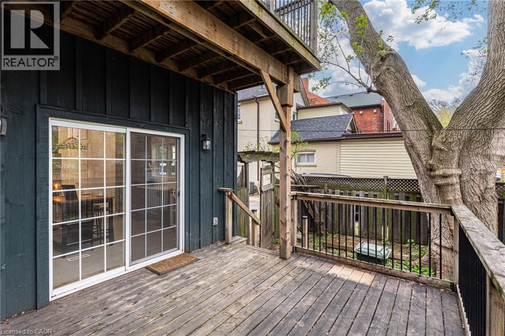 Circa 1880 charm on a beautiful tree-lined street-this detached brick home blends character with thoughtful updates throughout. Mostly renovated within the last 10 years, it offers high ceilings, spacious principal rooms, and a layout that just works. The main floor features a separate living and dining room, a convenient main floor bathroom, and a newer IKEA kitchen complete with island, pantry storage, and gas stove. Walk out to a large deck overlooking the backyard-perfect for relaxing or entertaining. Upstairs, the impressive primary suite feels like a retreat, with a walk-in closet, vaulted ceiling, and walkout to a private balcony. The spa-like ensuite includes a soaker tub, separate shower, double sinks, and in-suite laundry. A second oversized bedroom offers flexibility for additional living space or a home office. Updates include roof (2025), on-demand hot water heater (2025), copper water line with UV water treatment, and a newer furnace and A/C. No carpet throughout and plenty of pot lights add to the modern feel. A rare opportunity to own a character home with major updates already done-just move in and enjoy. (id:43681)