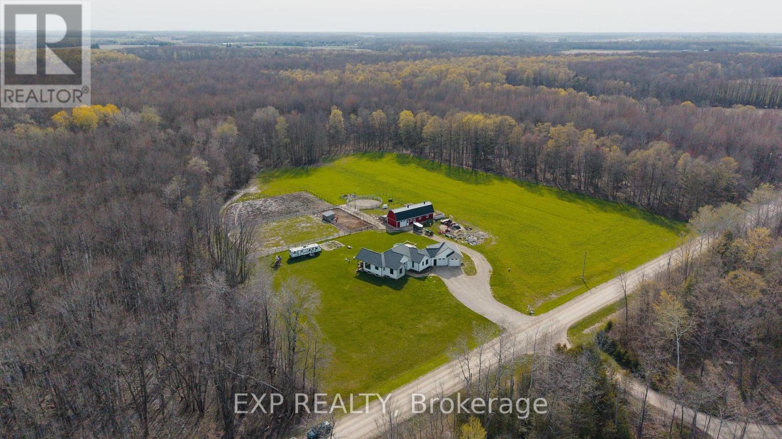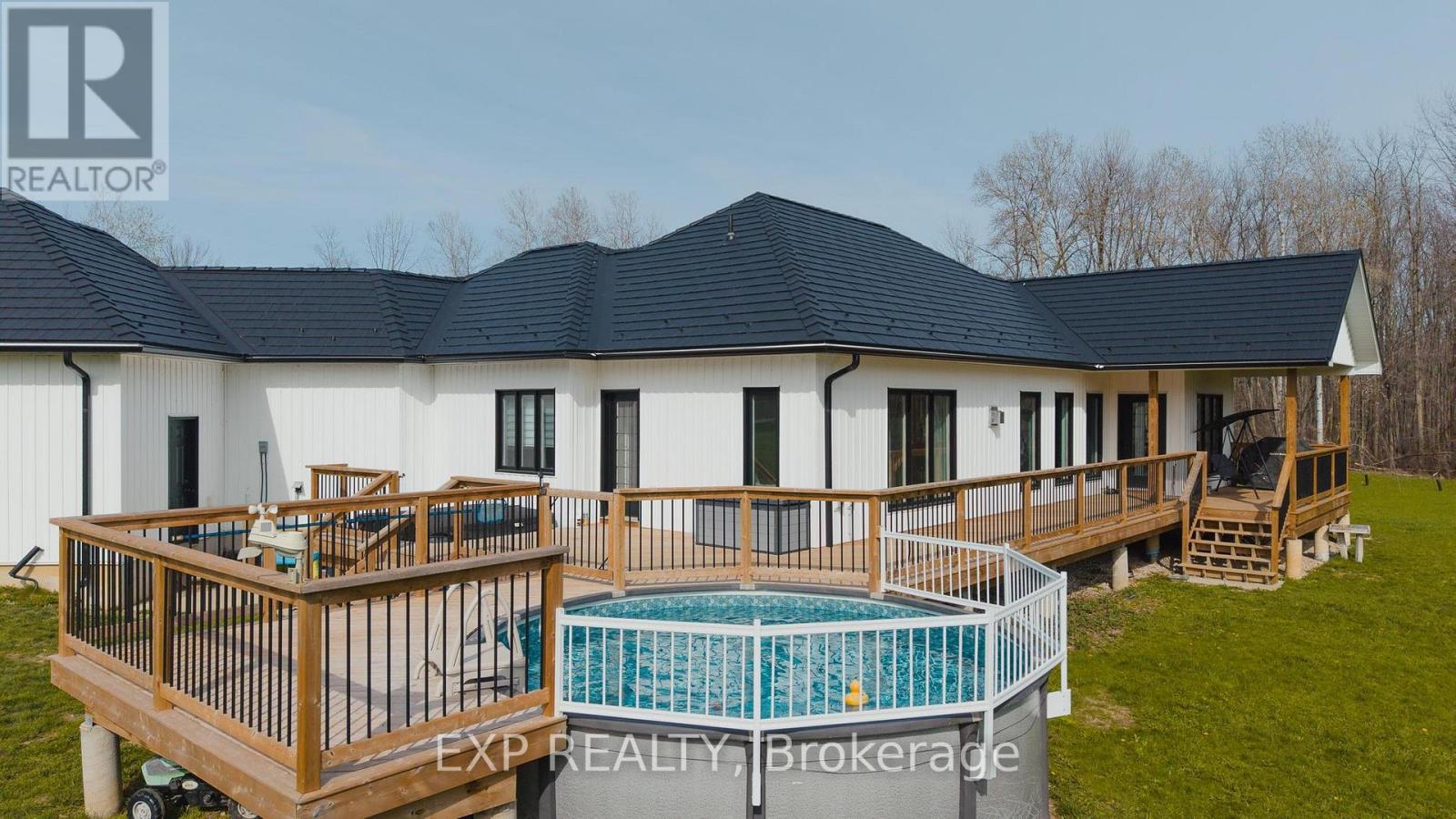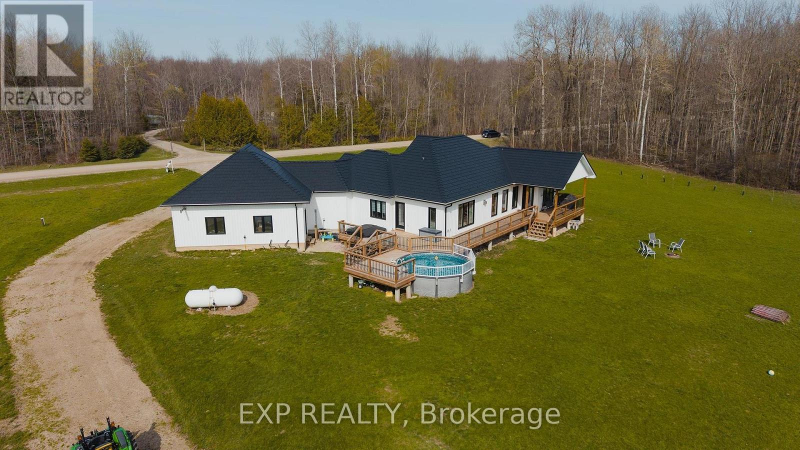 This is more than a property. It's a legacy, a lifestyle, and a once in a generation opportunity to live the country dream without compromising oncomfort. Tucked at the end of a country road in Morris-Turnberry, this 100 acre slice of paradise is where homesteaders, hunters, and naturelovers come to plant roots and never look back. With approximately 90 acres of mature bush, 8 acres of hay, scenic trails winding through forestand wetland, planted fruit trees ready to bear for years to come, and a meandering stream, every morning here begins with birdsong and endsunder a sky full of stars. At the heart of it all sits a stunning custom built bungalow (2022) designed for the way large families really live. Justabout 3,300 square feet of finished living space offers 6 bedrooms and 3 bathrooms across two beautifully appointed levels. The main floorshowcases a sun filled open concept kitchen, dining, and living area, a primary suite with 5 piece ensuite and walk in closet, a dedicated office,mudroom, and main floor laundry. Downstairs, a fully finished walk up basement with separate entrance delivers four more bedrooms, a massiverec room, and incredible flexibility for multi generational living. Step outside to the deck, dive into the above ground pool, or wander to the58x20 barn with hydro and water, ready for your horses, chickens, hobby farm dreams, or workshop ambitions. Trail ride right from your backdoor. Hunt your own land. Raise your own food. Watch your kids grow up with room to roam. (id:43681)