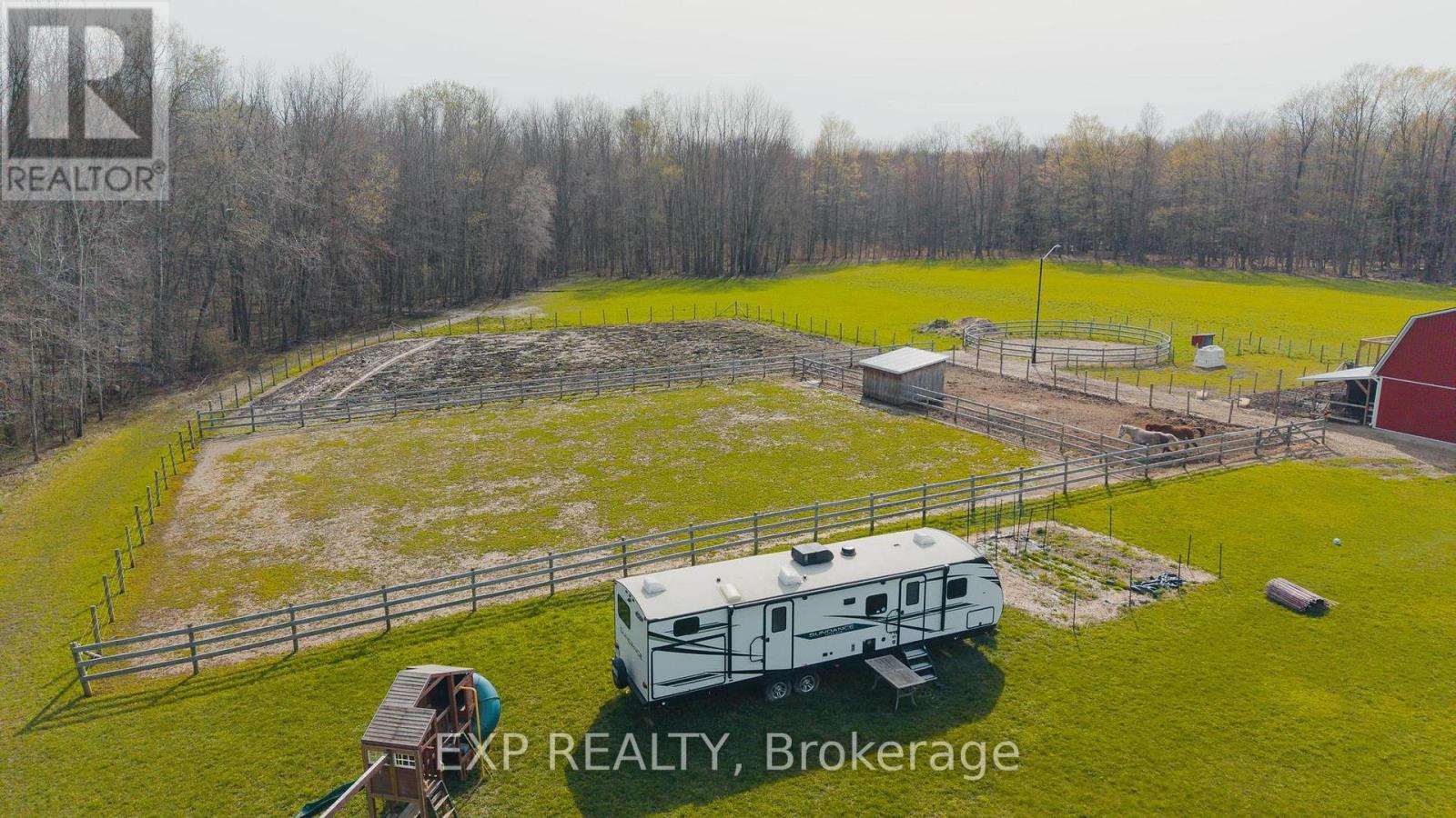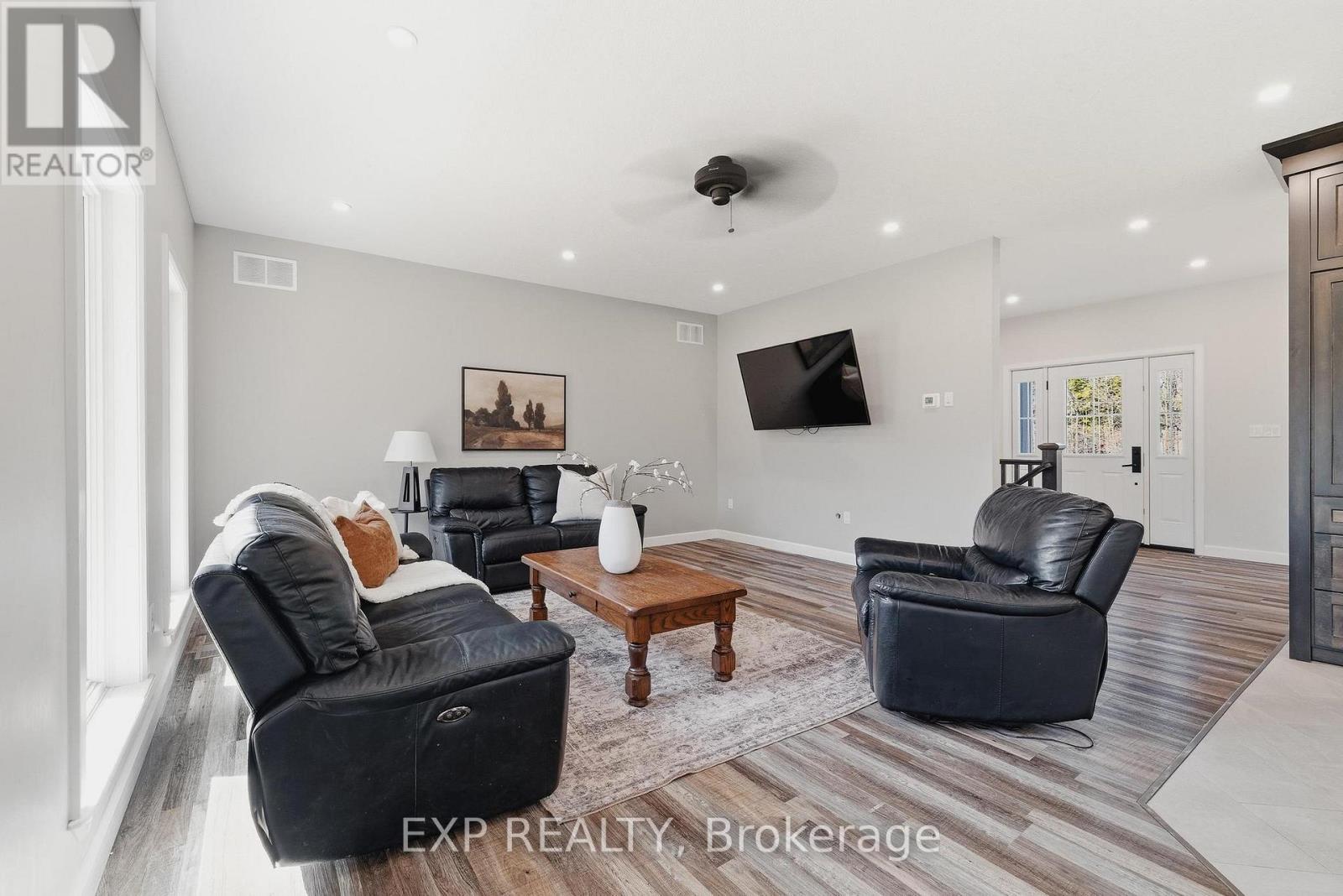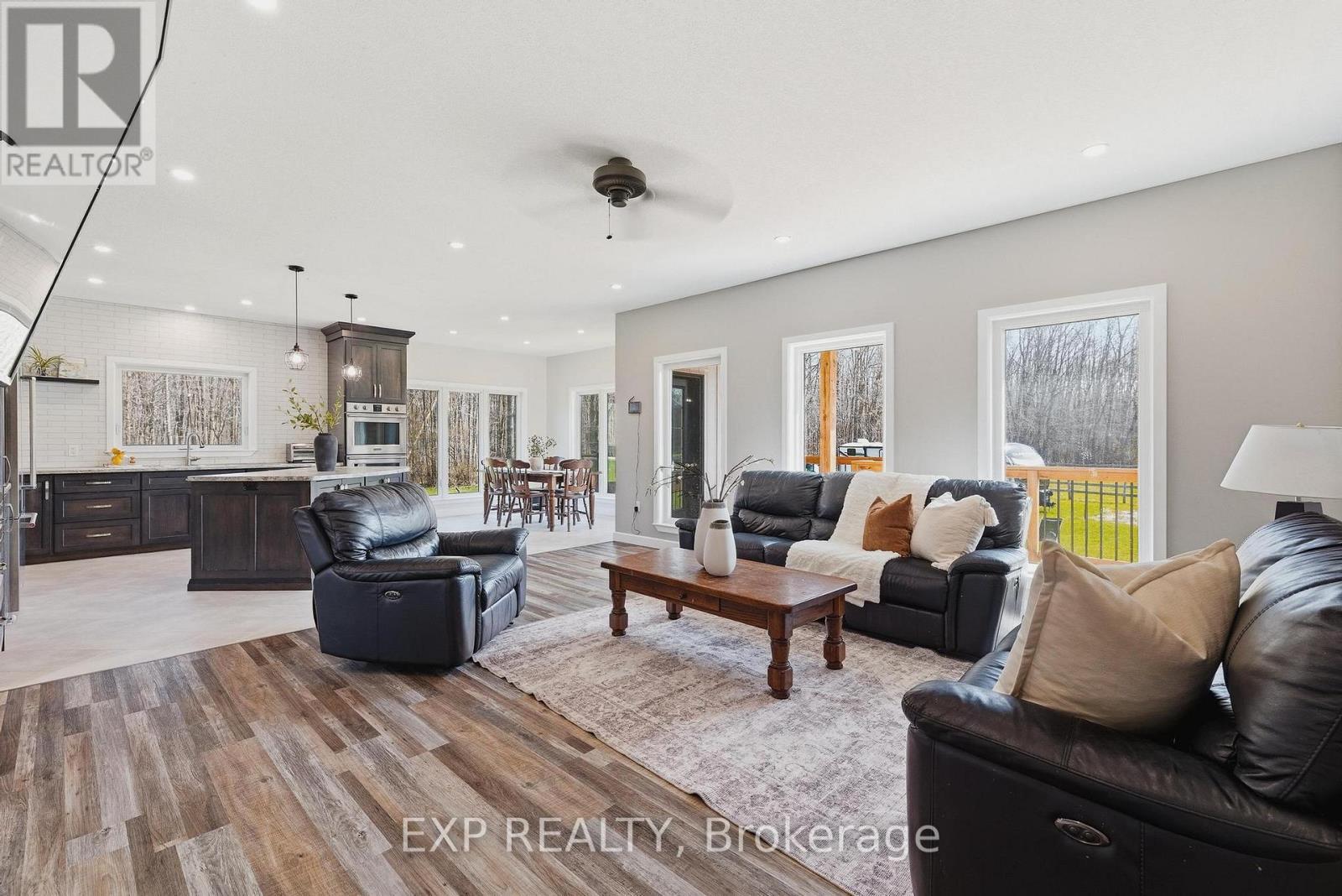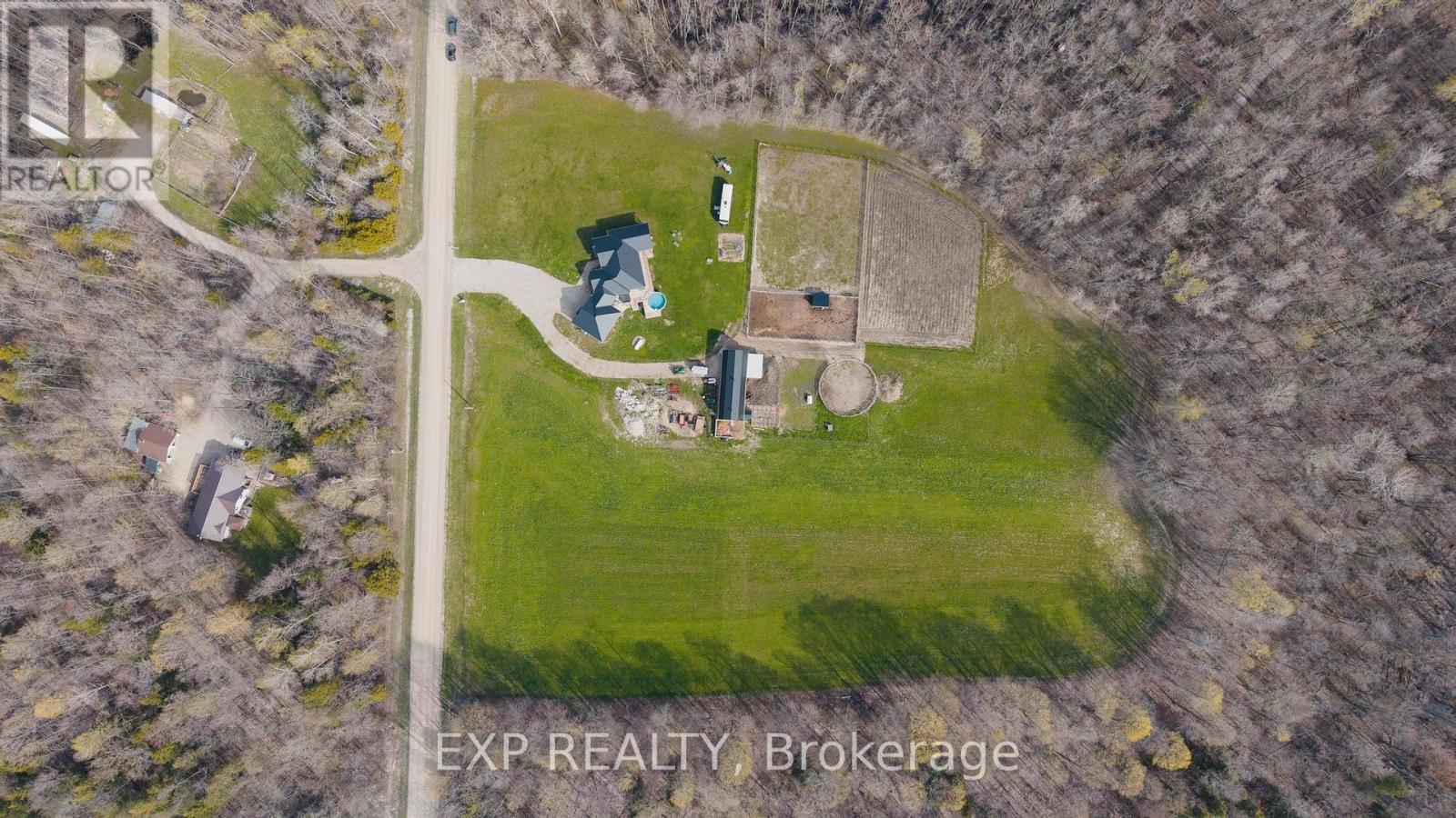 This is more than a property. It's a legacy, a lifestyle, and a once in a generation opportunity to live the country dream without compromising oncomfort. Tucked at the end of a country road in Morris-Turnberry, this 100 acre slice of paradise is where homesteaders, hunters, and naturelovers come to plant roots and never look back. With approximately 90 acres of mature bush, 8 acres of hay, scenic trails winding through forestand wetland, planted fruit trees ready to bear for years to come, and a meandering stream, every morning here begins with birdsong and endsunder a sky full of stars. At the heart of it all sits a stunning custom built bungalow (2022) designed for the way large families really live. Justabout 3,300 square feet of finished living space offers 6 bedrooms and 3 bathrooms across two beautifully appointed levels. The main floorshowcases a sun filled open concept kitchen, dining, and living area, a primary suite with 5 piece ensuite and walk in closet, a dedicated office,mudroom, and main floor laundry. Downstairs, a fully finished walk up basement with separate entrance delivers four more bedrooms, a massiverec room, and incredible flexibility for multi generational living. Step outside to the deck, dive into the above ground pool, or wander to the58x20 barn with hydro and water, ready for your horses, chickens, hobby farm dreams, or workshop ambitions. Trail ride right from your backdoor. Hunt your own land. Raise your own food. Watch your kids grow up with room to roam. (id:43681)