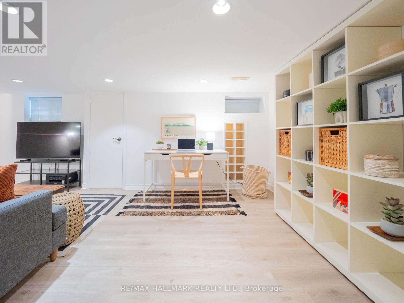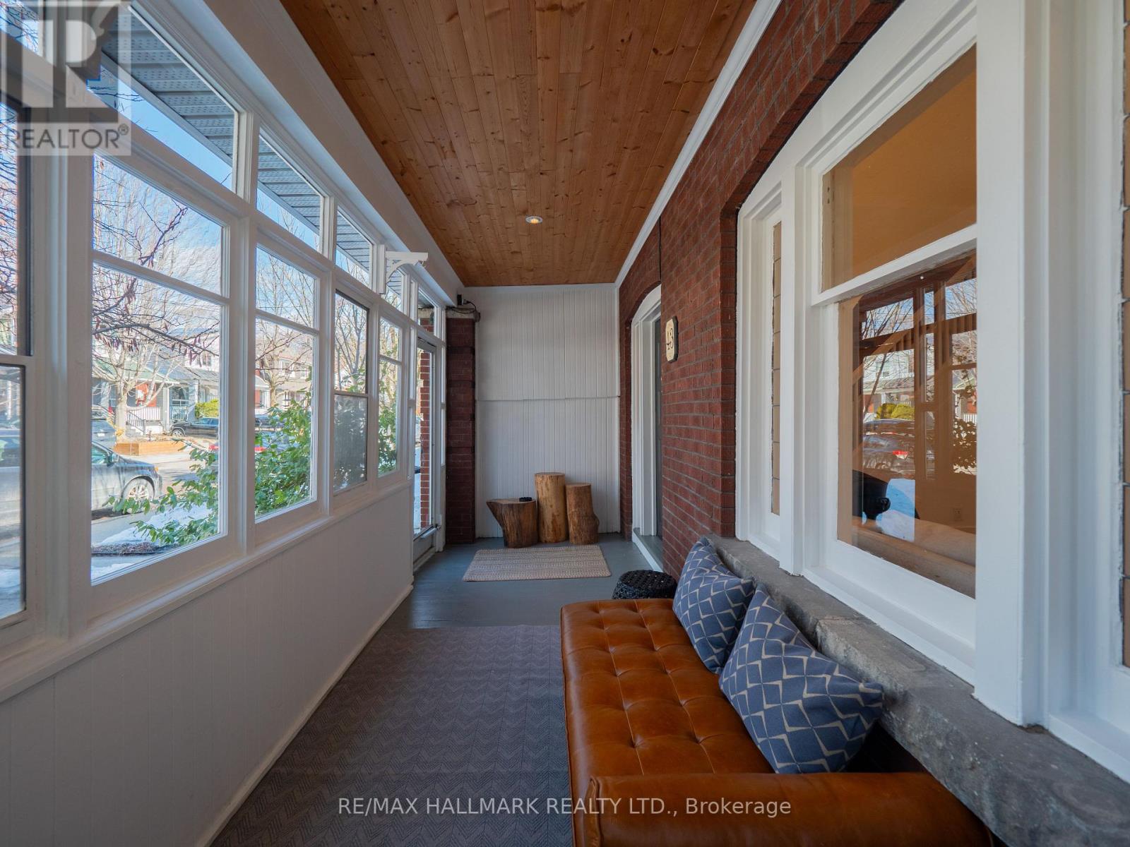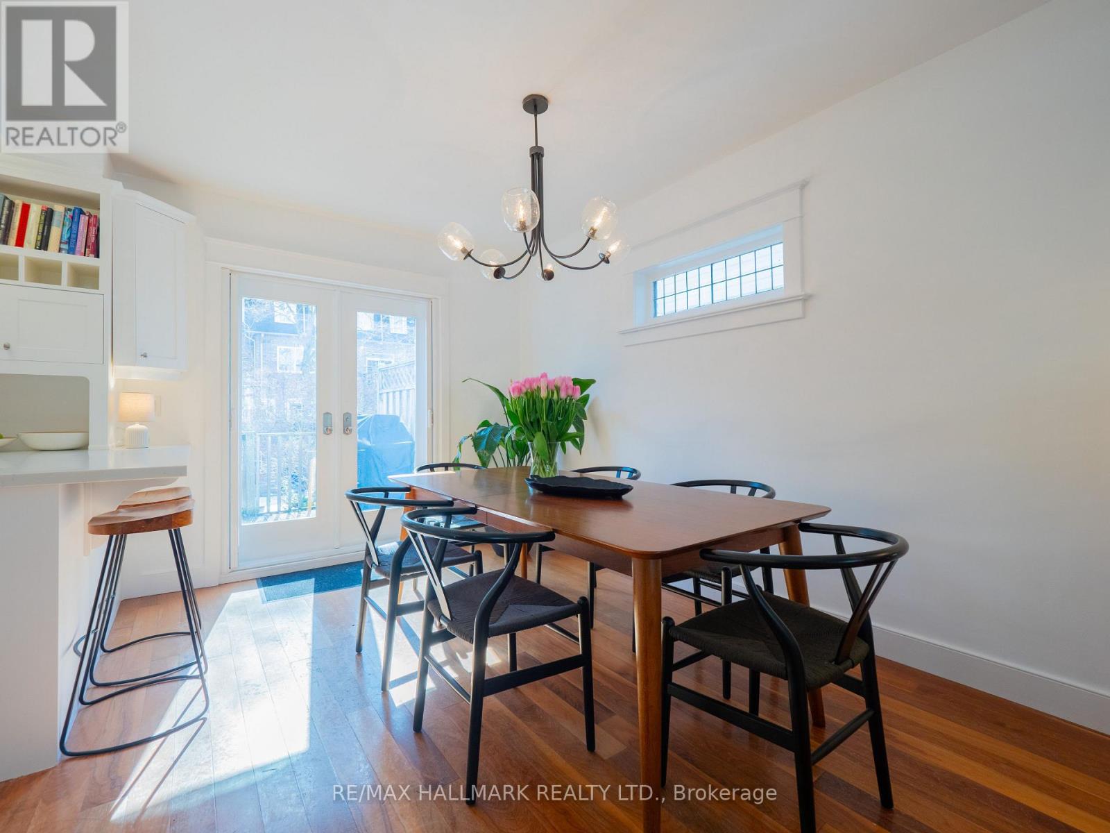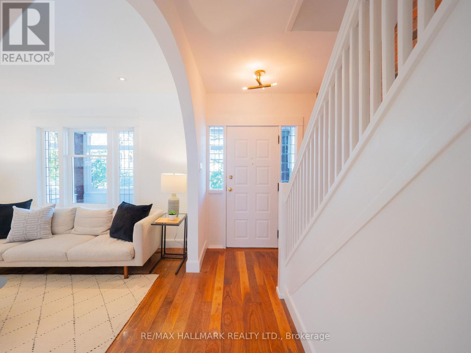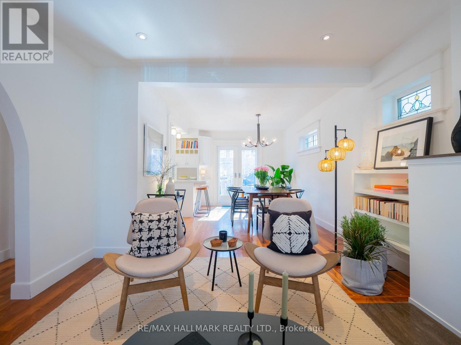 Welcome to 43 Robbins Avenue! A beautifully renovated home on an extra-wide 23.42 x 100 ft south-facing lot. Situated on a family-friendly street within the highly sought-after Bowmore School catchment, this home is perfectly nestled between The Beach and Leslieville. Before you even step inside, you're greeted by a sun-filled front sunroom with wall-to-wall windows - an ideal three-season sitting area or a practical mudroom. The sun-drenched interior features a large foyer with an exposed brick wall and a charming archway leading into a spacious main floor with high ceilings, and a cozy fireplace. A fully renovated kitchen with quartzite counters, ample cupboards and a breakfast bar. The second level offers three generous bedrooms and a renovated bathroom, providing comfortable space for the whole family. The lower level includes a large recreation room, a new 4-piece bathroom, and ample storage. Step outside from the dining room to the south-facing backyard which is fully fenced and features a large deck ideal for summer dining, lush gardens, and plenty of room for kids to play. Located just steps to Moncur Park, a hidden neighbourhood gem with a playground and sports fields-perfect for families and community connection. This home beautifully blends charm, character, and modern amenities. A must-see! (id:43681)