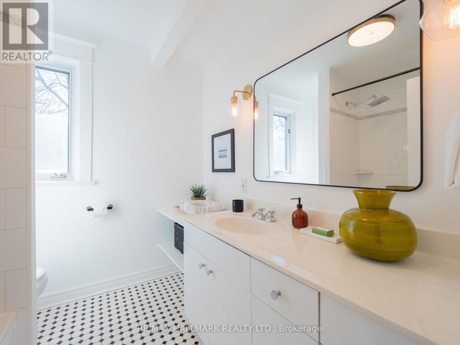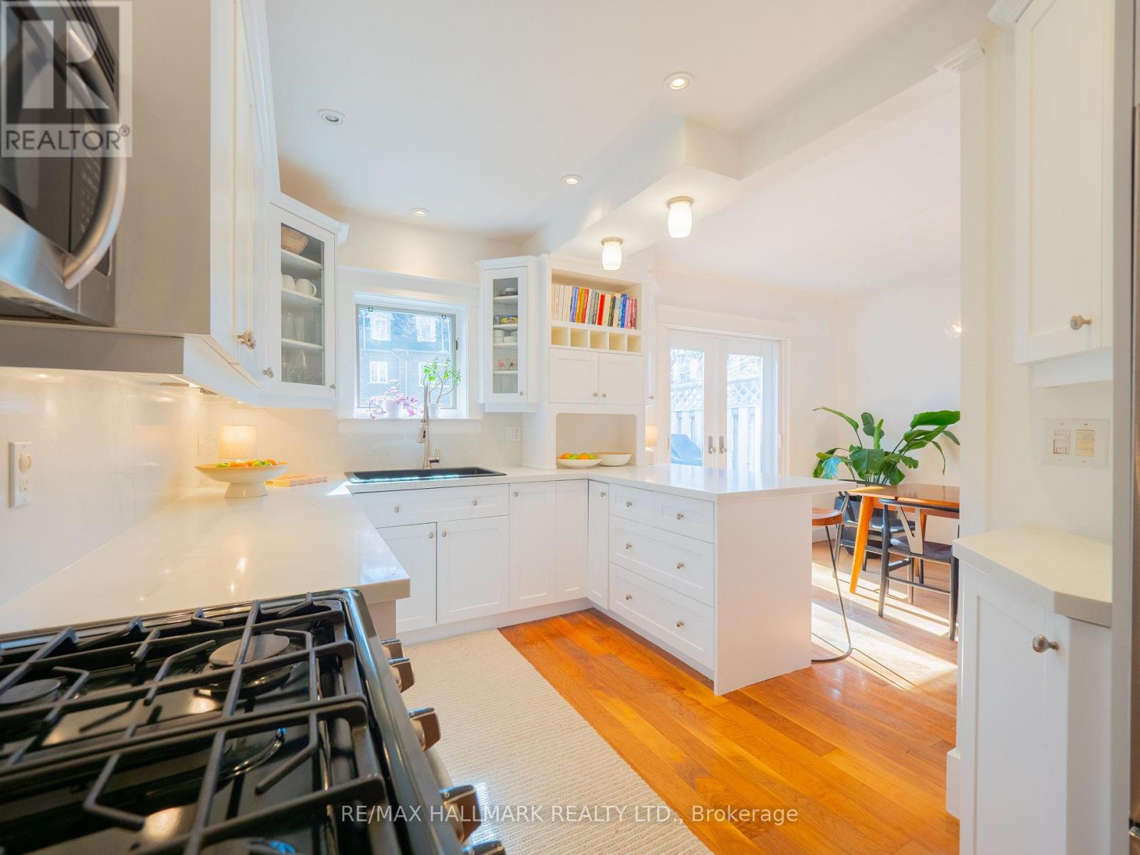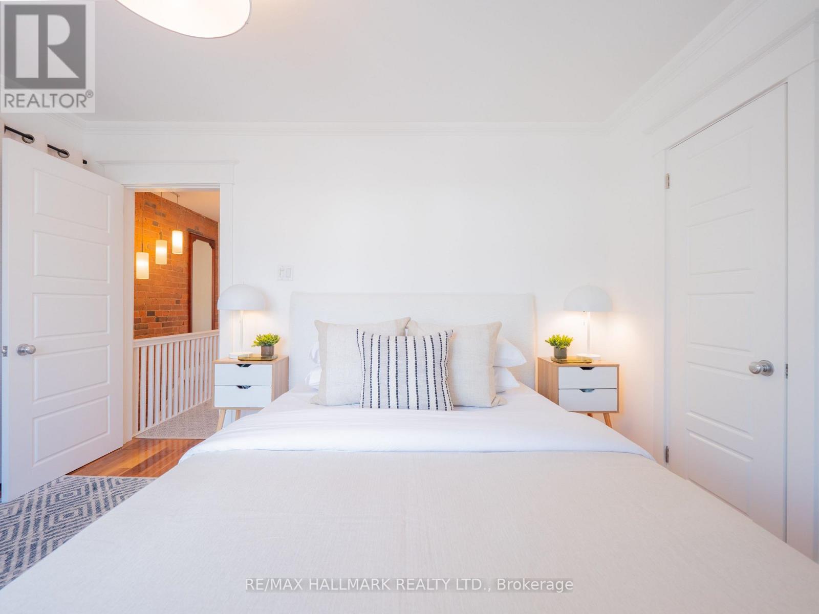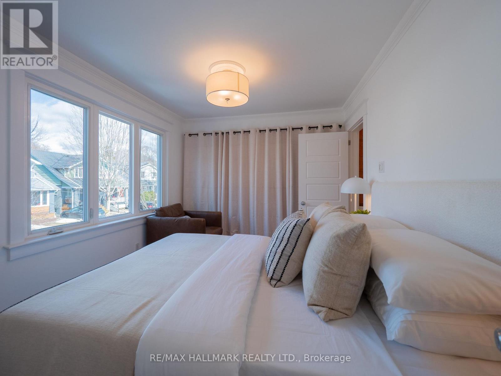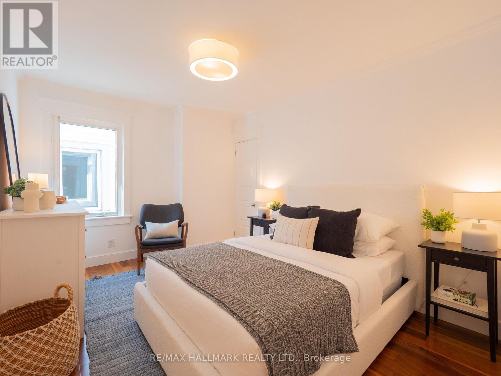 Welcome to 43 Robbins Avenue! A beautifully renovated home on an extra-wide 23.42 x 100 ft south-facing lot. Situated on a family-friendly street within the highly sought-after Bowmore School catchment, this home is perfectly nestled between The Beach and Leslieville. Before you even step inside, you're greeted by a sun-filled front sunroom with wall-to-wall windows - an ideal three-season sitting area or a practical mudroom. The sun-drenched interior features a large foyer with an exposed brick wall and a charming archway leading into a spacious main floor with high ceilings, and a cozy fireplace. A fully renovated kitchen with quartzite counters, ample cupboards and a breakfast bar. The second level offers three generous bedrooms and a renovated bathroom, providing comfortable space for the whole family. The lower level includes a large recreation room, a new 4-piece bathroom, and ample storage. Step outside from the dining room to the south-facing backyard which is fully fenced and features a large deck ideal for summer dining, lush gardens, and plenty of room for kids to play. Located just steps to Moncur Park, a hidden neighbourhood gem with a playground and sports fields-perfect for families and community connection. This home beautifully blends charm, character, and modern amenities. A must-see! (id:43681)