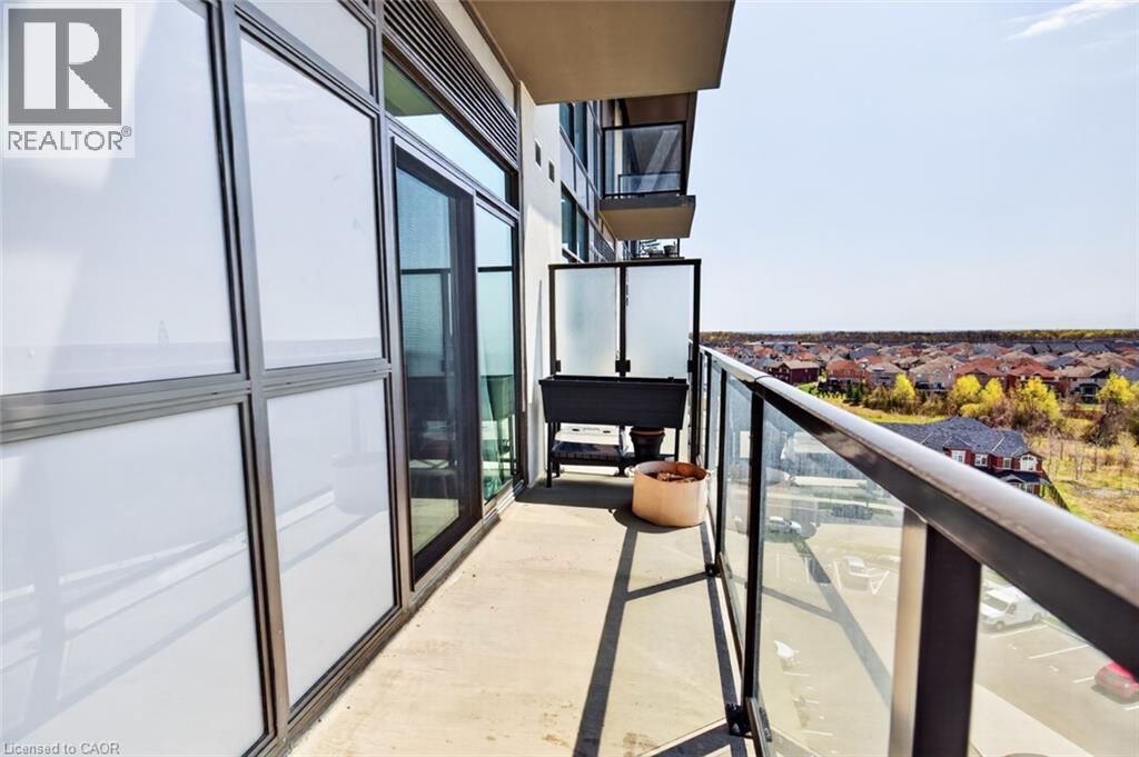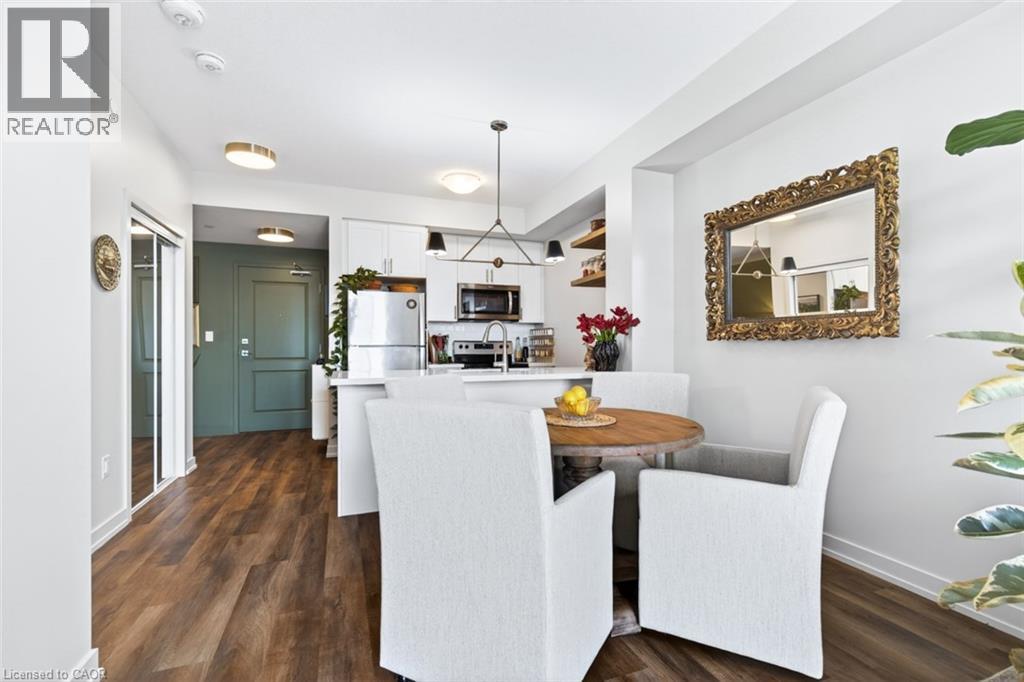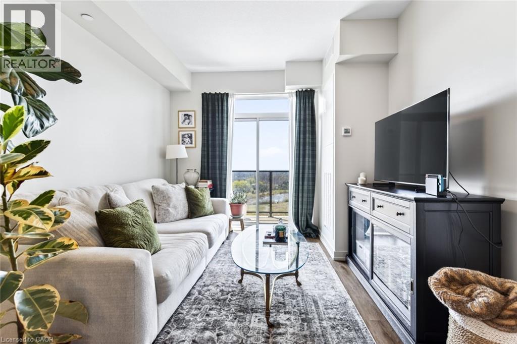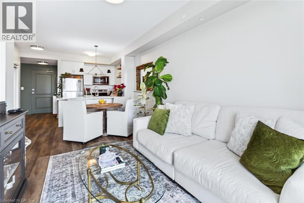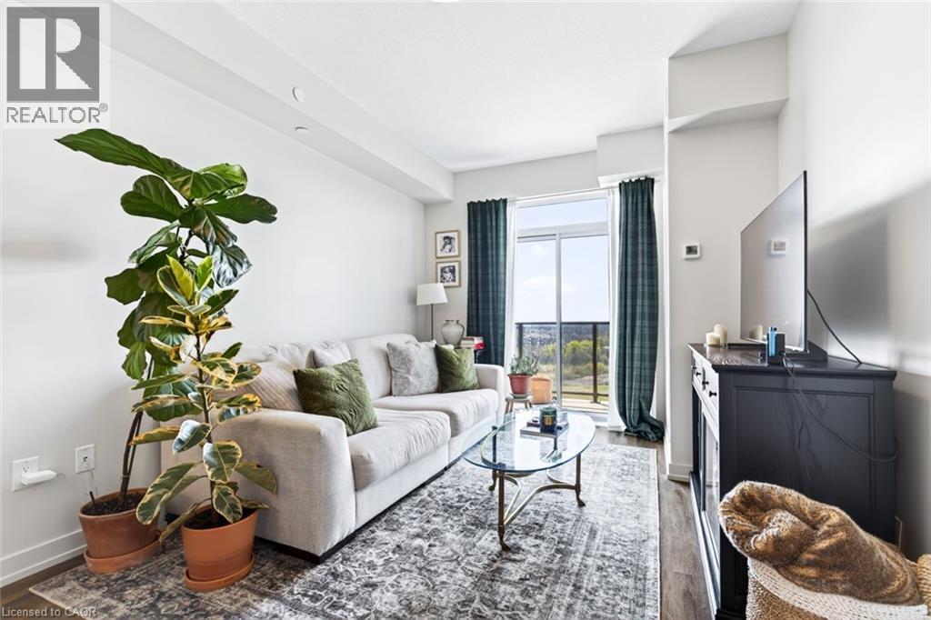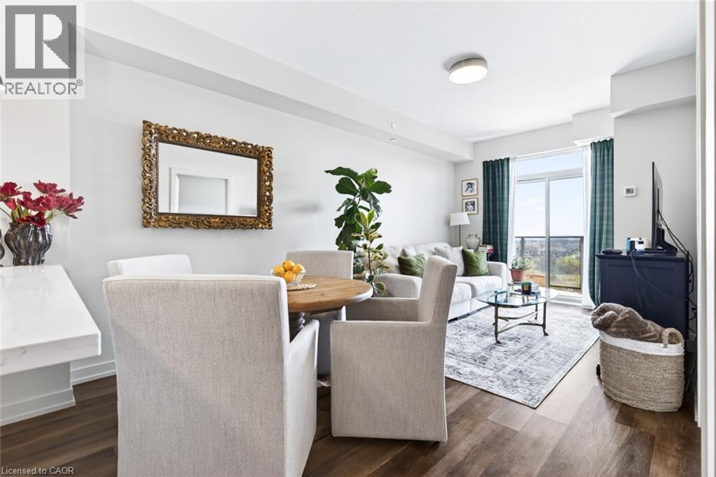 Stunning 1 bed + den, 1 bath condo built by award-winning New Horizon Development Group. This thoughtfully designed unit features a bright open-concept layout, modern kitchen with sleek finishes, in-suite laundry, and geo-thermal heating & cooling. The versatile den is perfect for a home office or reading nook, while large windows fill the space with natural light. Enjoy your private balcony with beautiful, unobstructed views. Includes storage locker and 1 underground parking space. Residents have access to excellent amenities including a party room, gym, rooftop patios, and bike storage. Located in the highly desirable Waterdown community, close to dining, shopping, schools, parks, and just a 5-minute drive to downtown Burlington or Aldershot GO Station. Book your private showing today! (id:43681)