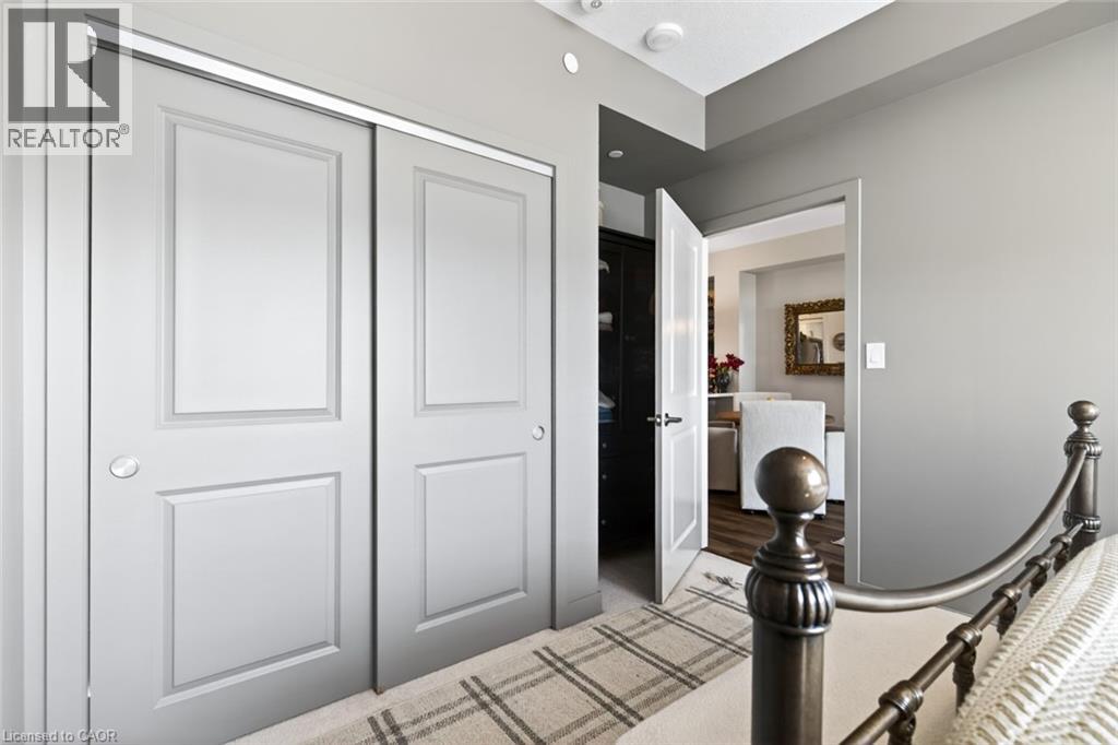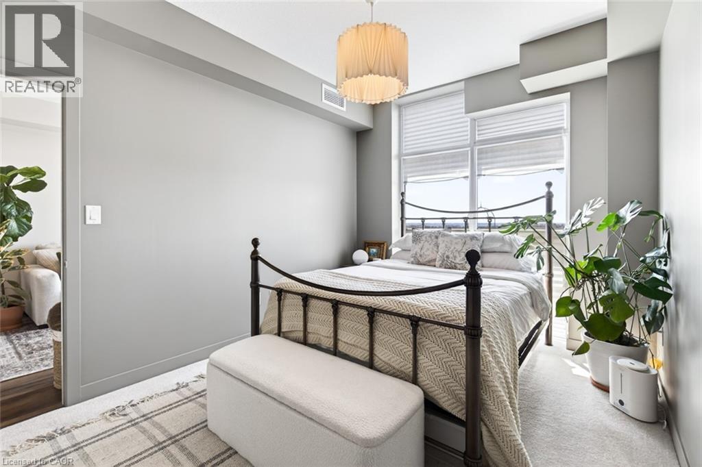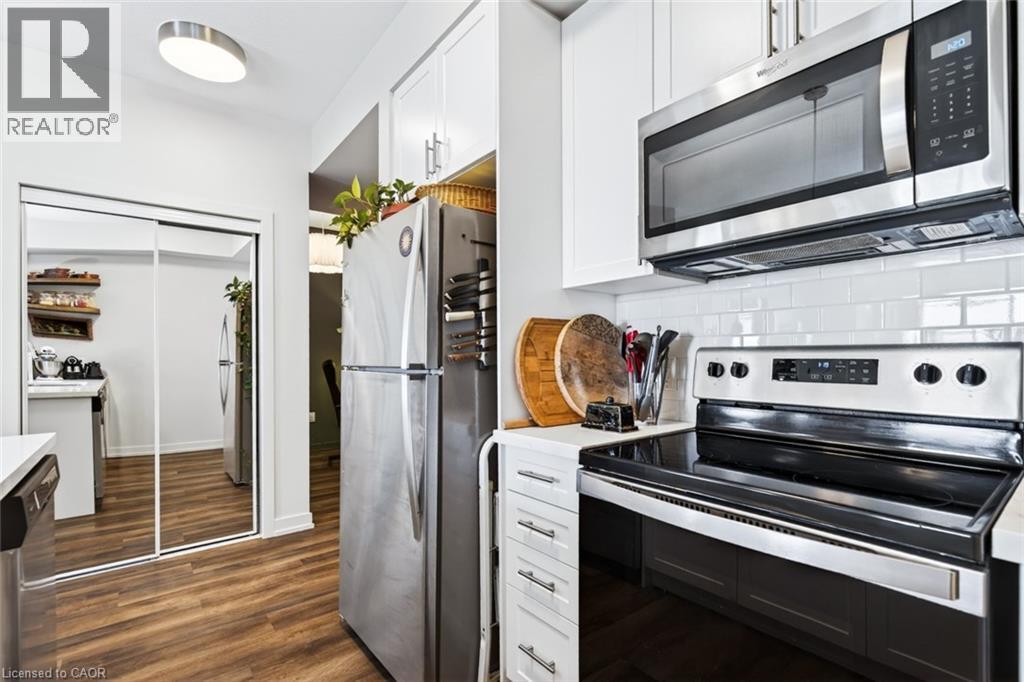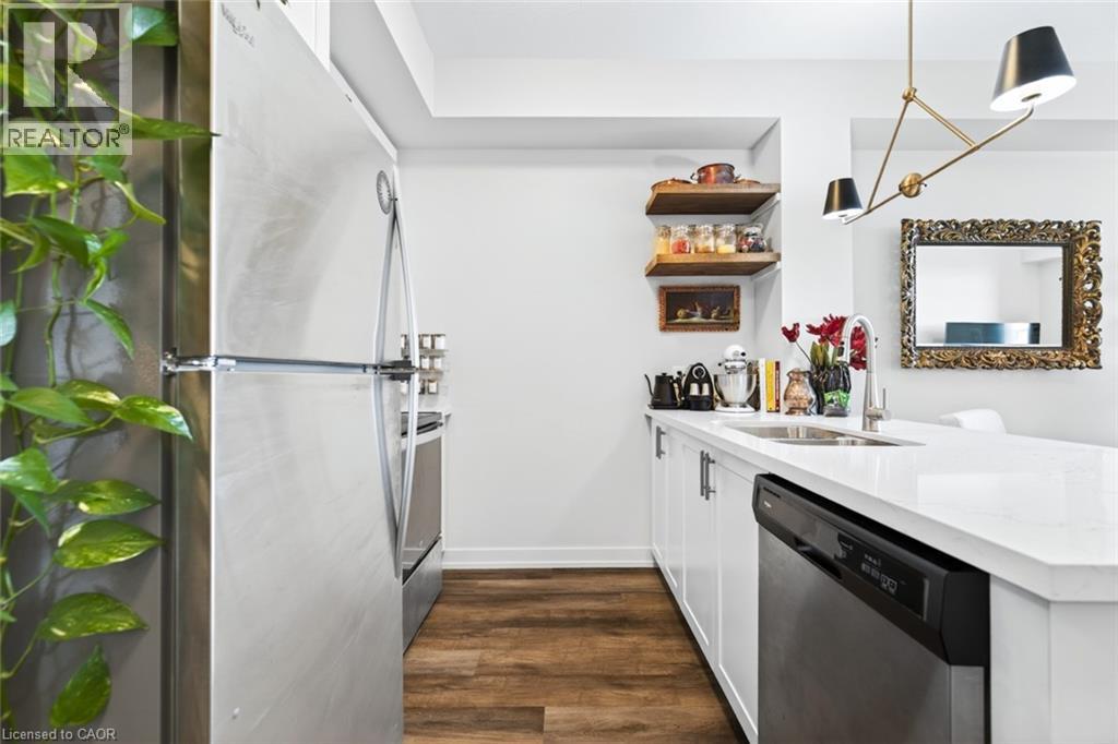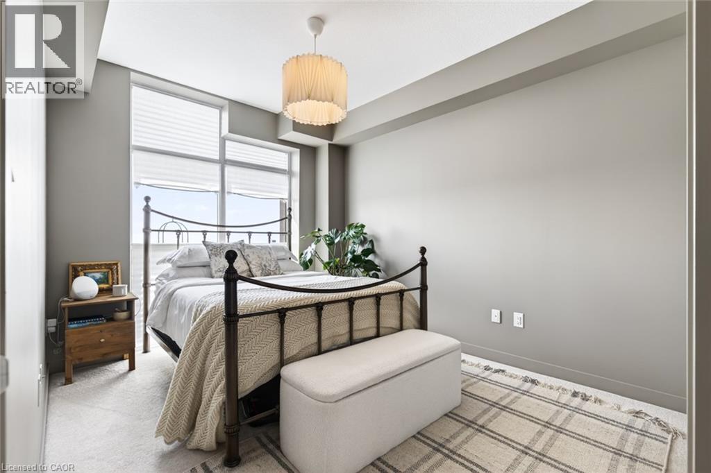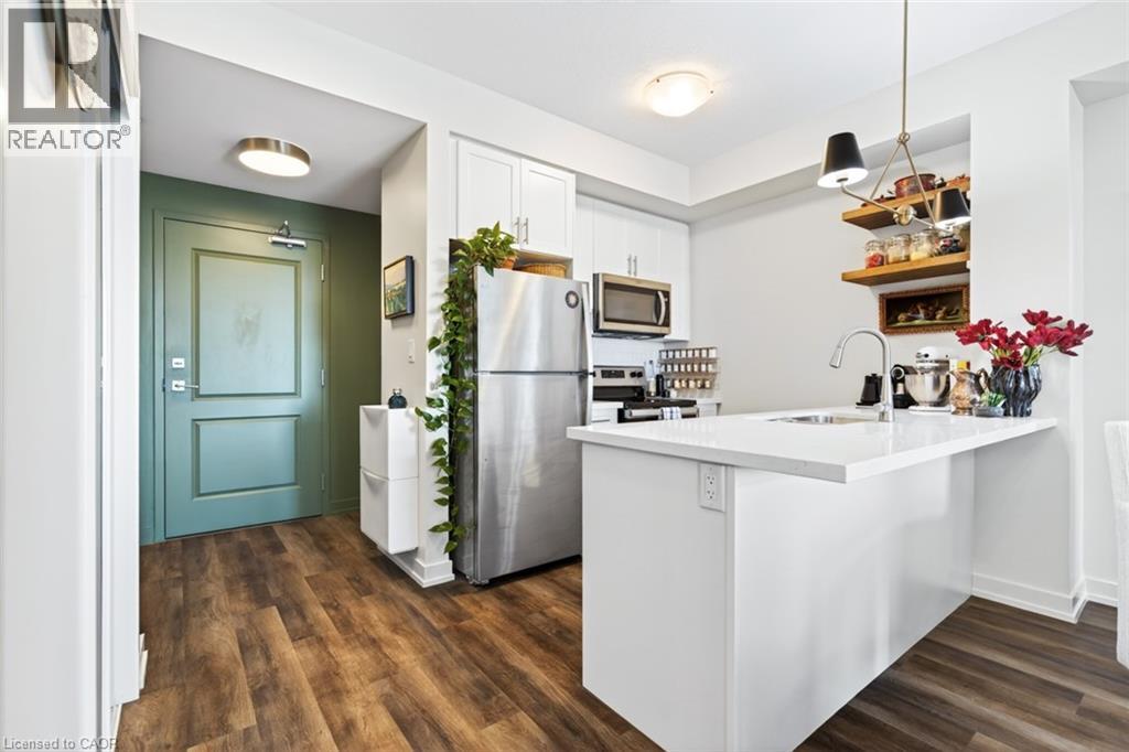 Stunning 1 bed + den, 1 bath condo built by award-winning New Horizon Development Group. This thoughtfully designed unit features a bright open-concept layout, modern kitchen with sleek finishes, in-suite laundry, and geo-thermal heating & cooling. The versatile den is perfect for a home office or reading nook, while large windows fill the space with natural light. Enjoy your private balcony with beautiful, unobstructed views. Includes storage locker and 1 underground parking space. Residents have access to excellent amenities including a party room, gym, rooftop patios, and bike storage. Located in the highly desirable Waterdown community, close to dining, shopping, schools, parks, and just a 5-minute drive to downtown Burlington or Aldershot GO Station. Book your private showing today! (id:43681)