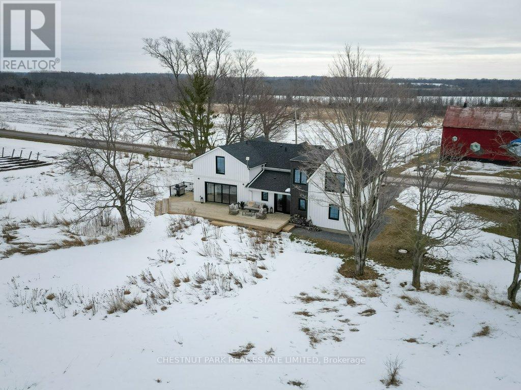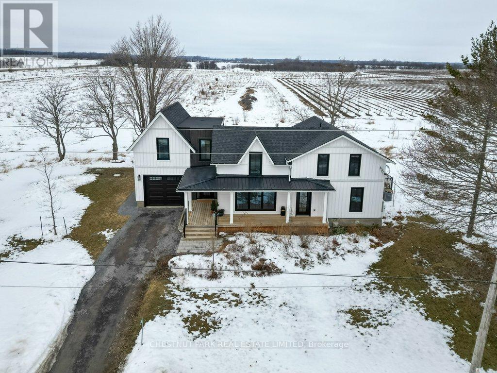 A modern farmhouse in the heart of Hillier, 456 Cold Creek Road offers refined County living with thoughtful design at every turn. Backing onto rolling pasture and neighbouring vineyards, this home blends open-concept comfort with elevated finishes and a seamless indoor-outdoor flow. Renovated from the ground up by beloved local builder Retreat Homes, every detail has been carefully considered. Original hand-hewn beams anchor the kitchen ceiling, adding warmth and character to the bright, light-filled interior. Incredibly designed quartz countertops, custom cabinetry, and oversized patio doors create a swoon worthy kitchen and dining space. Tastefully tiled baths, and curated lighting create a cohesive and elevated aesthetic throughout. The main floor is designed for gathering. A welcoming entrance opens to an expansive living space where a striking stone fireplace sets the tone for cozy evenings, while a dramatic glass wine enclosure offers a nod to the County's celebrated wine culture. The kitchen flows effortlessly into the dining area with direct access to the oversized back deck-perfect for entertaining or quiet mornings overlooking the fields beyond. A full bath on the main level adds functionality and flexibility. Upstairs, three spacious bedrooms and two beautifully finished bathrooms provide comfort for family and guests alike. The primary suite features soaring ceilings and a spa-like ensuite with a soaker tub overlooking neighbouring vineyards. Outdoors, the lifestyle continues. A covered front porch captures glowing sunrises, while the newly built back deck and fire pit frame spectacular sunsets. Native perennial gardens and an ornamental orchard designed by Wild by Design, with over 500 plants, create layered seasonal beauty throughout the year. Just minutes from Hillier's wineries, Wellington's shops and dining, and the County's beautiful beaches-this is modern County living at its finest: stylish, functional, and deeply connected to its surroundings. (id:43681)
